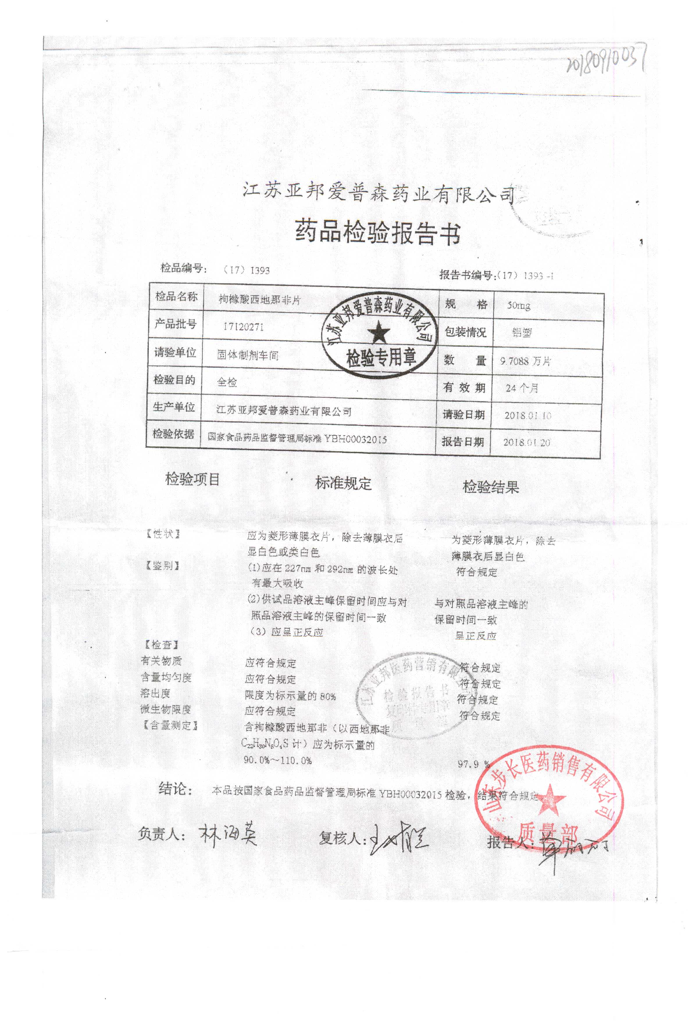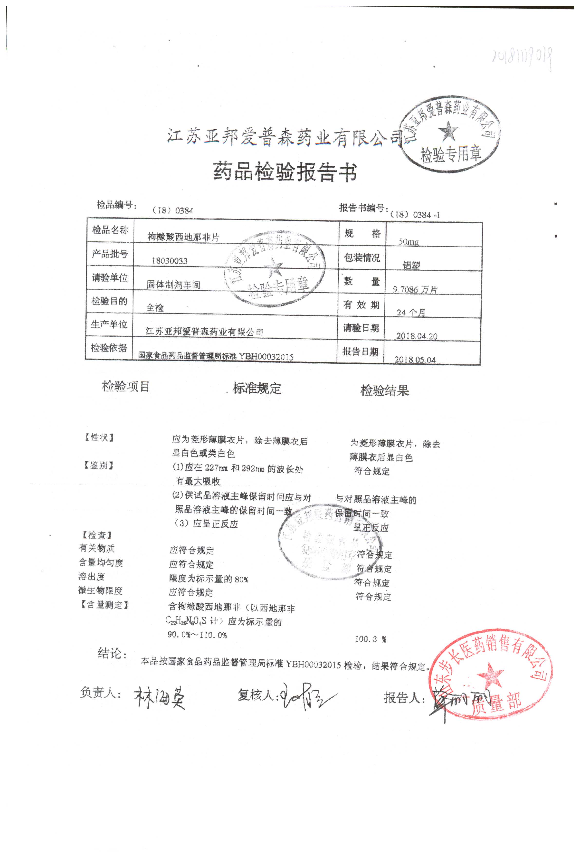 | 枸櫞酸西地那非片 | 50mg | E1809012 | 查看詳情 |