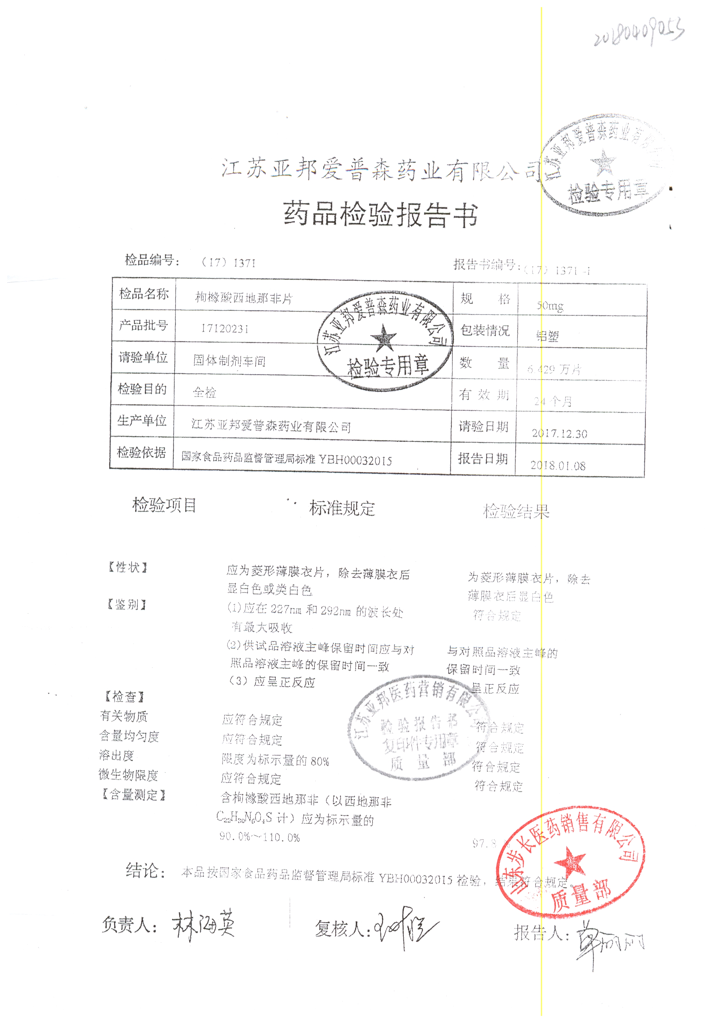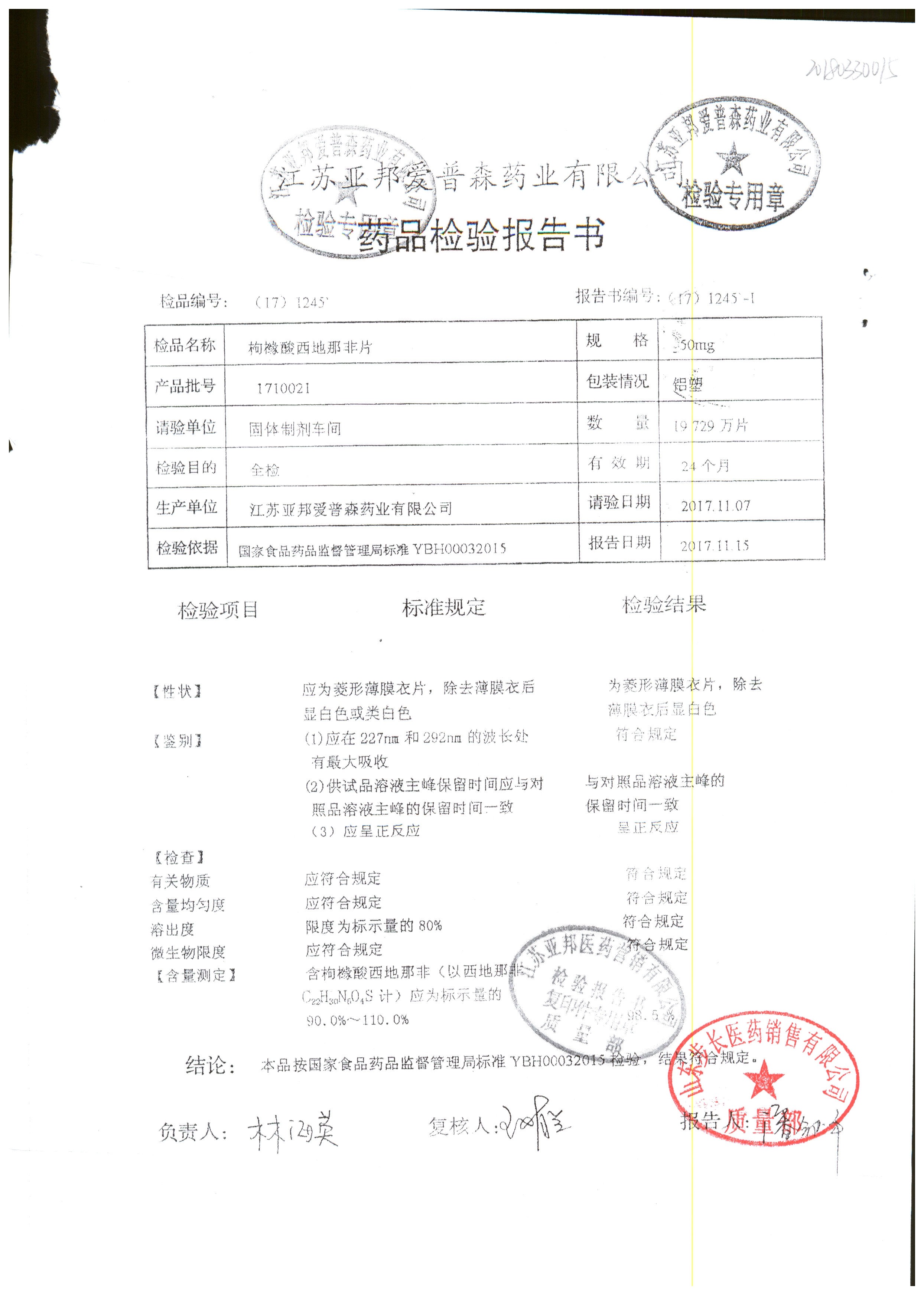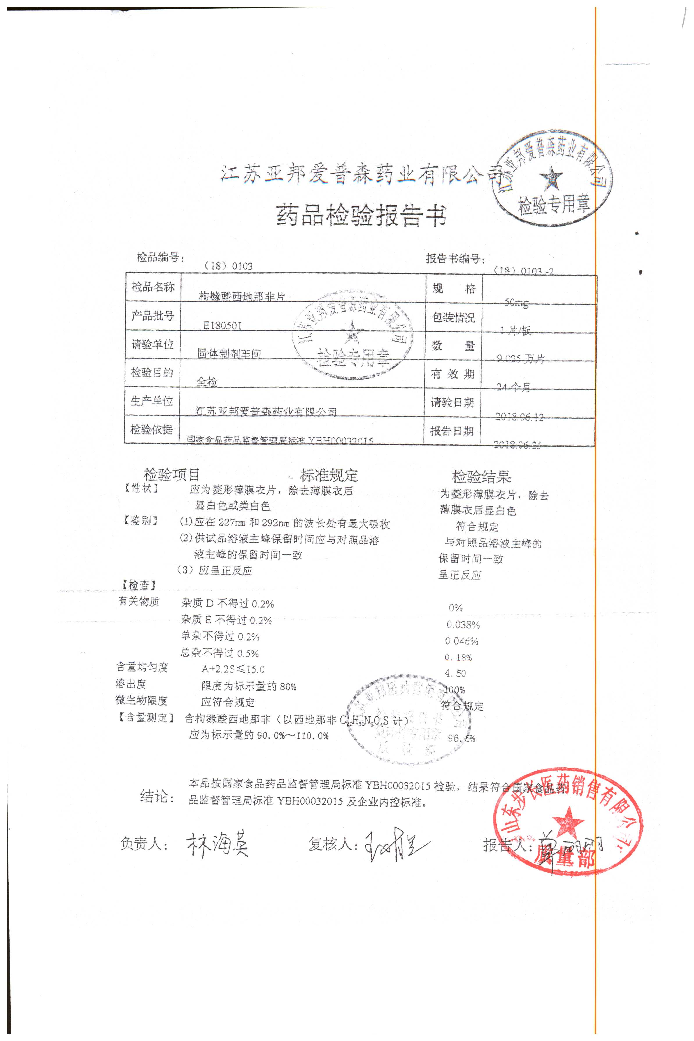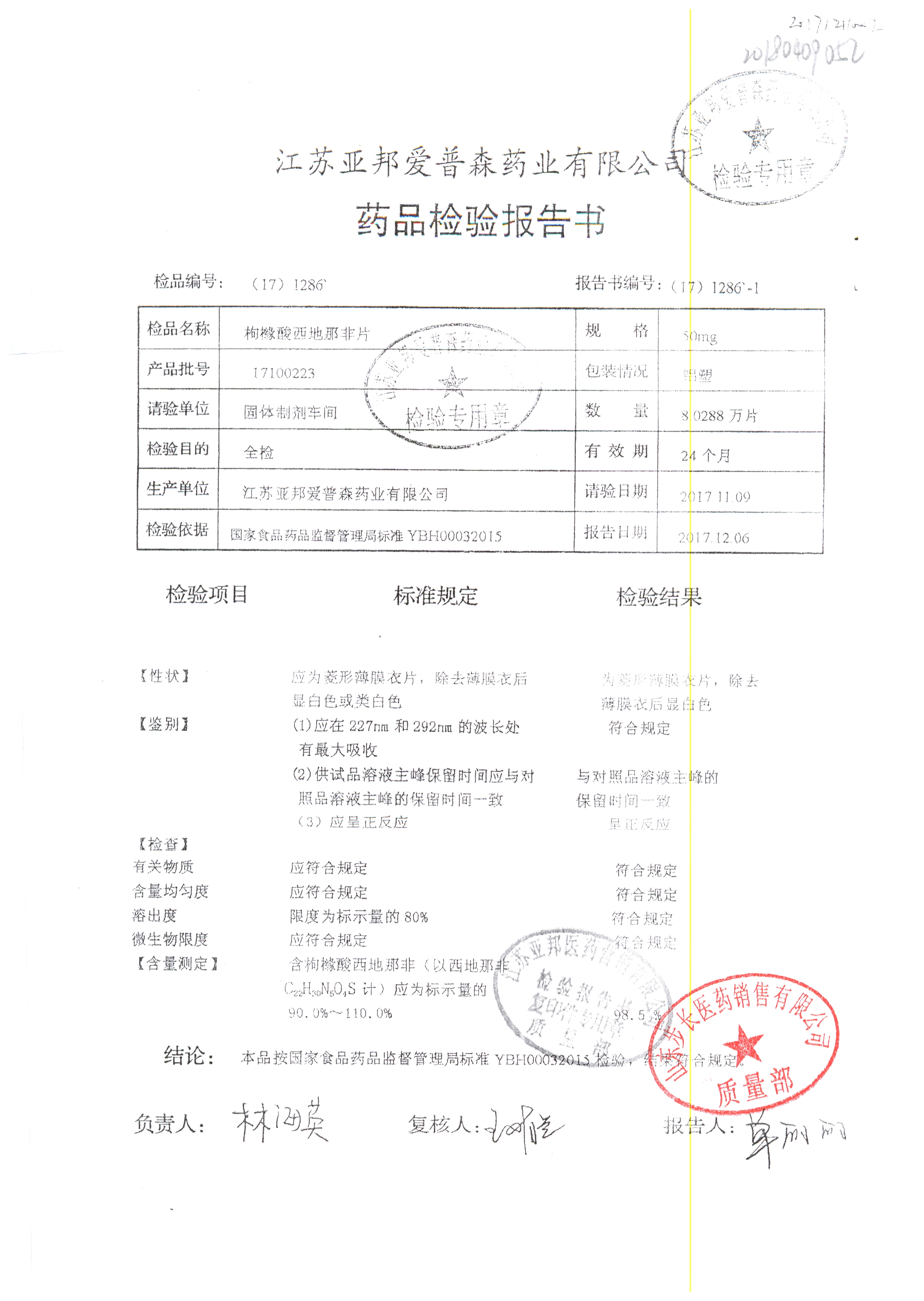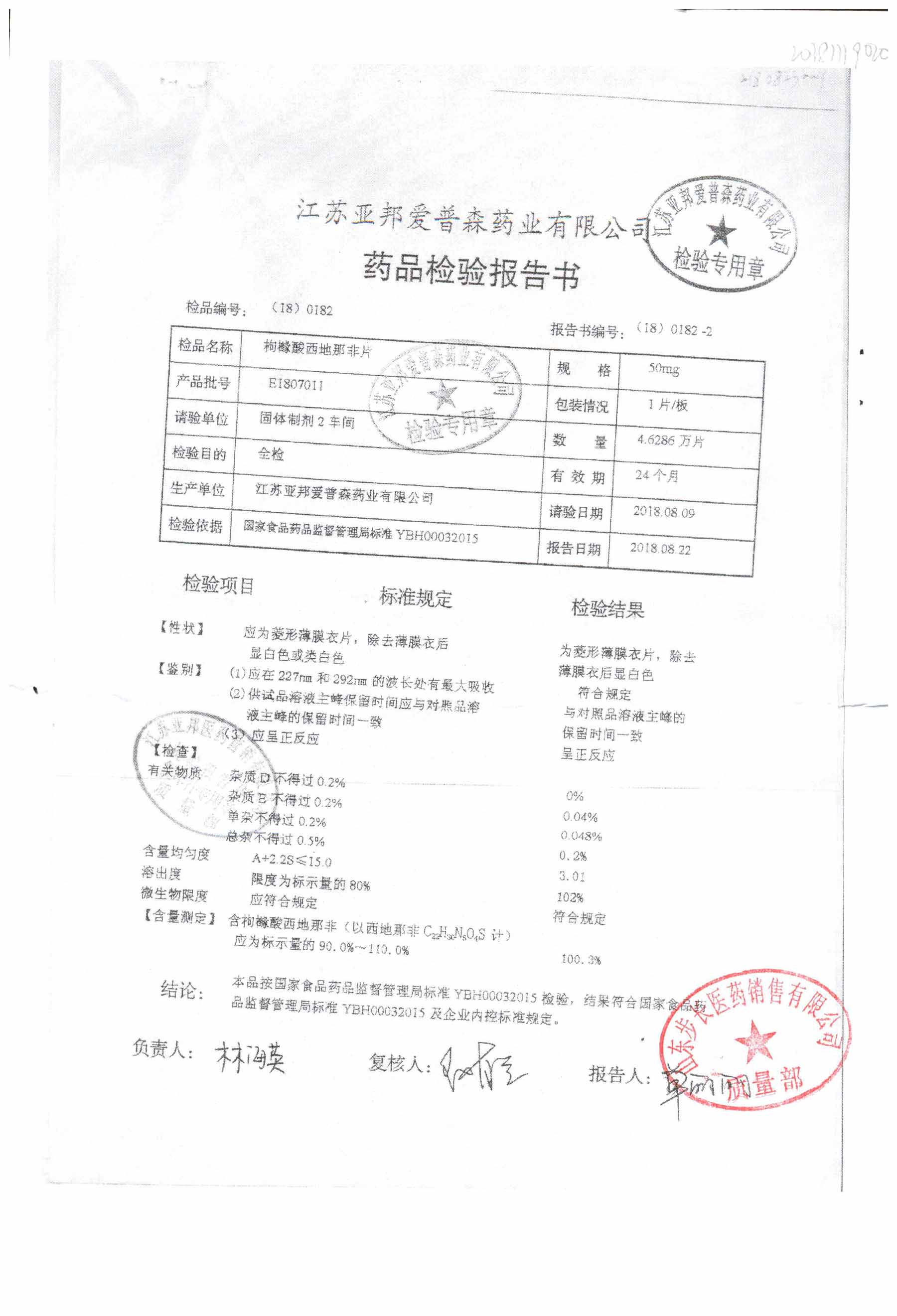 | 枸櫞酸西地那非片 | 50mg | E1807011 | 查看詳情 |