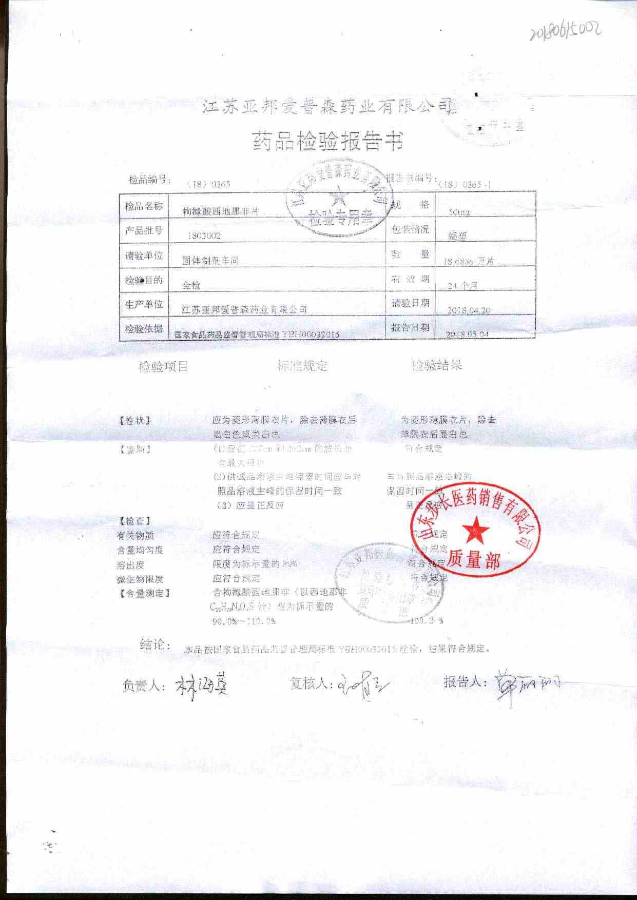 | 名稱 | 規(guī)格 | 批號 | 藥檢報告 |