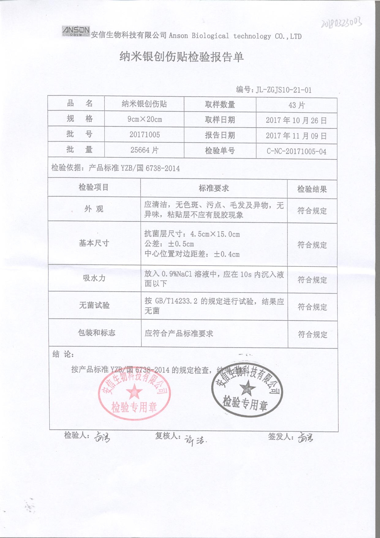 納米銀創(chuàng)傷貼 9cm*20cm 20171005 查看詳情