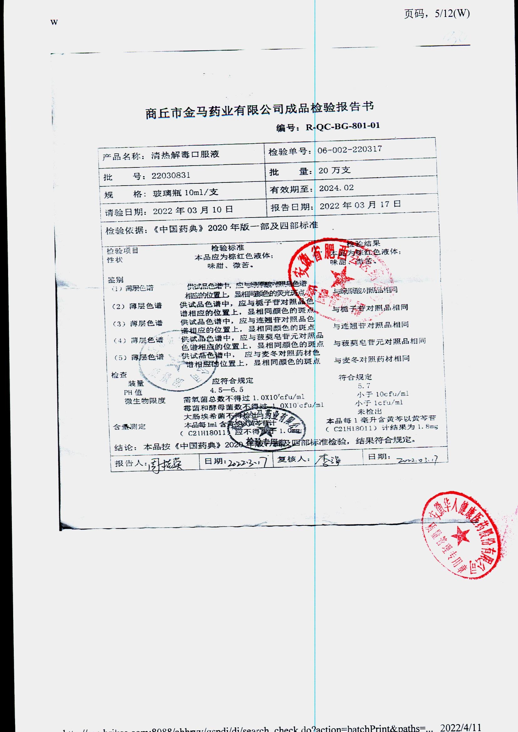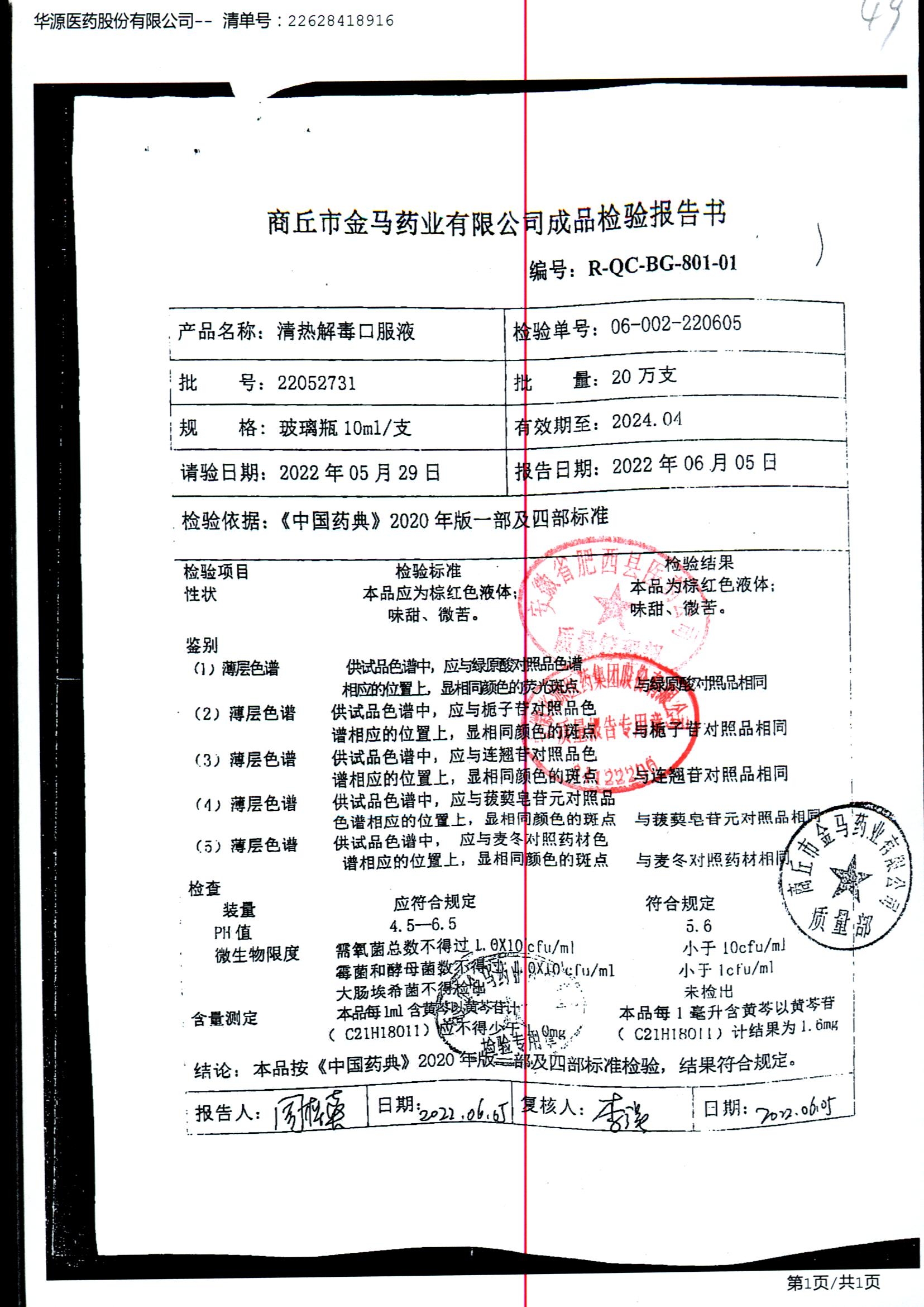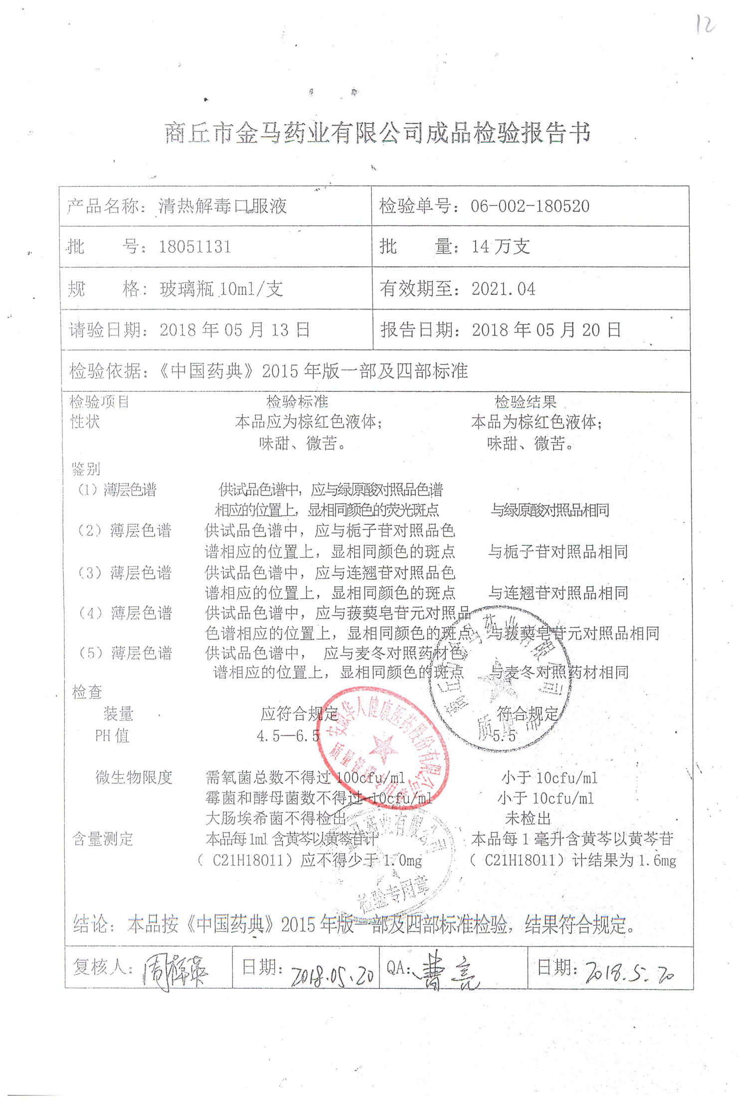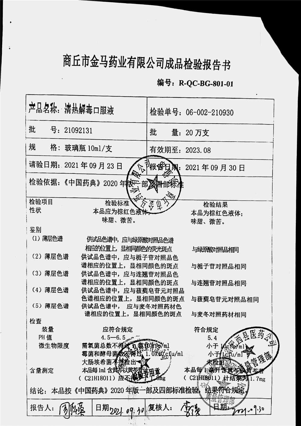 | 清熱解毒口服液 | 10ml | 21051231 | 查看詳情 |