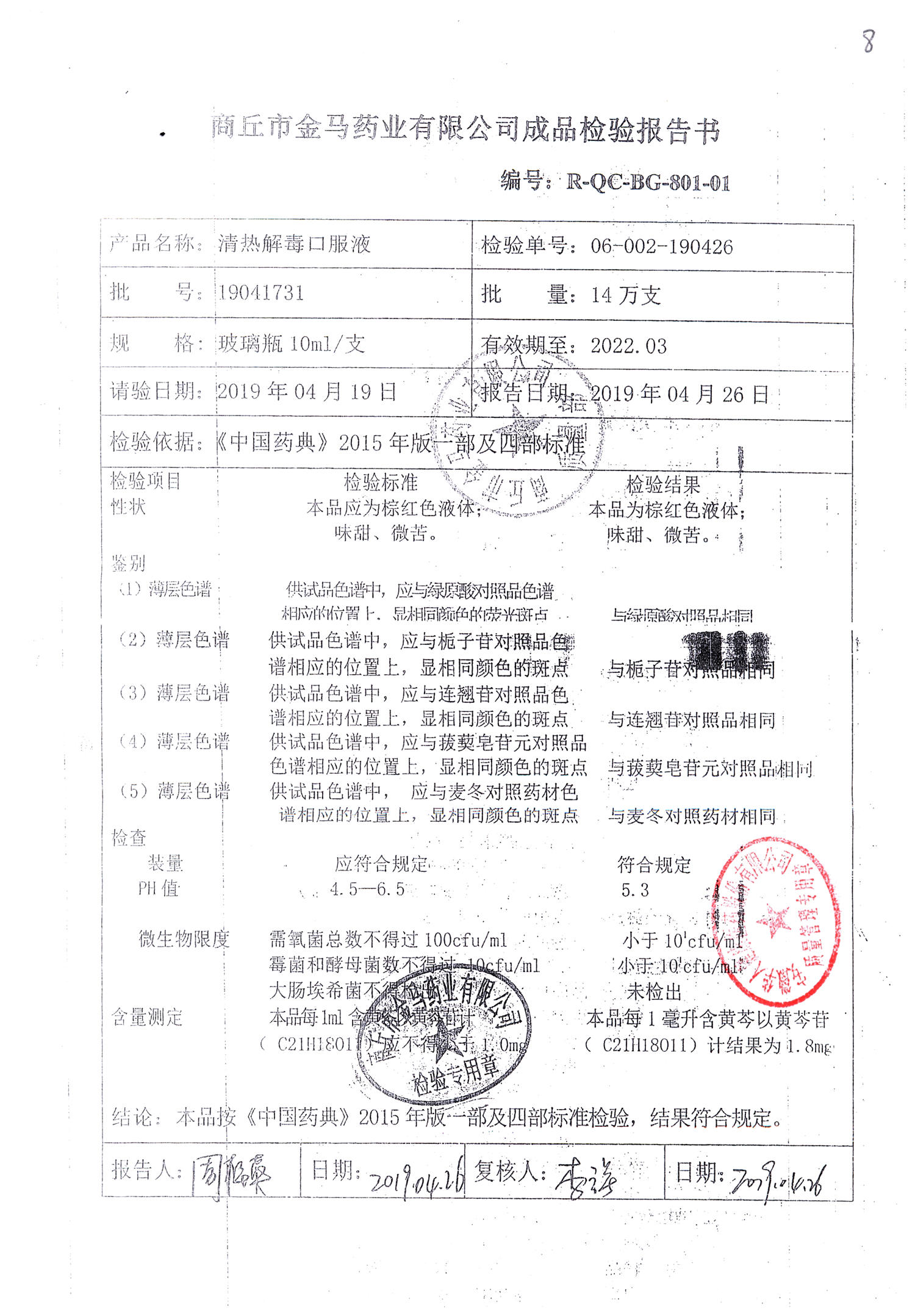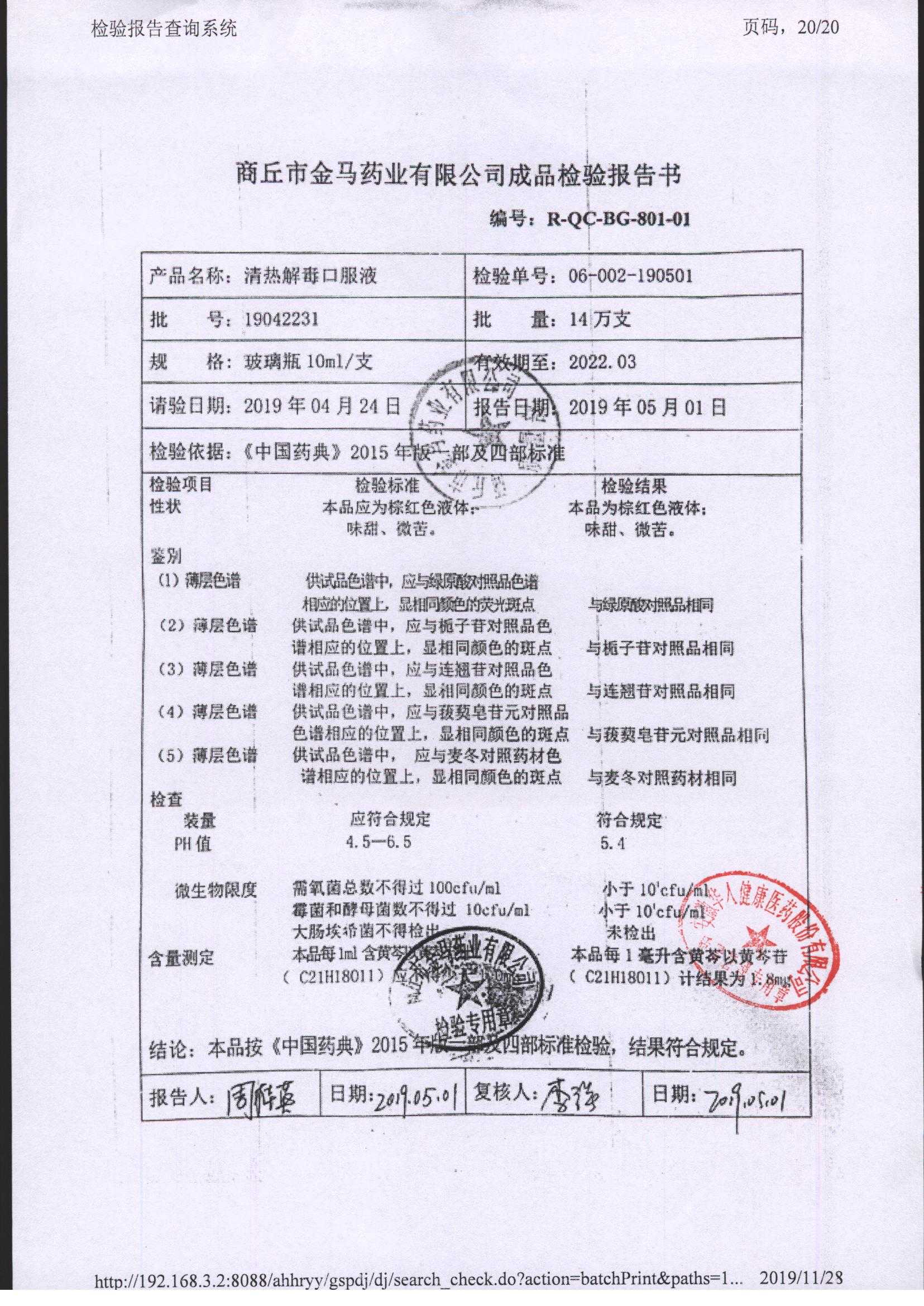 | 清熱解毒口服液 | 10ml | 19110831 | 查看詳情 |
