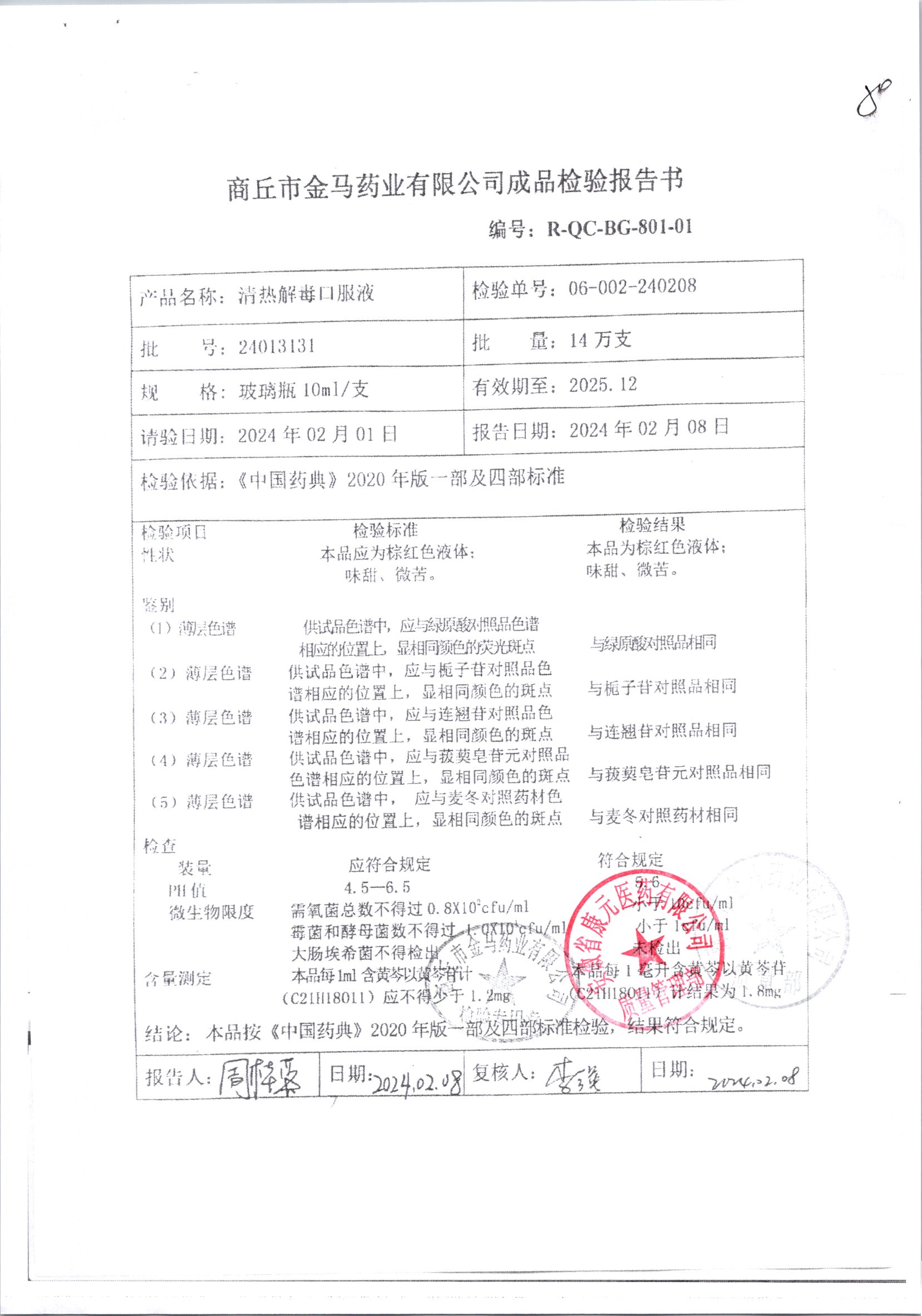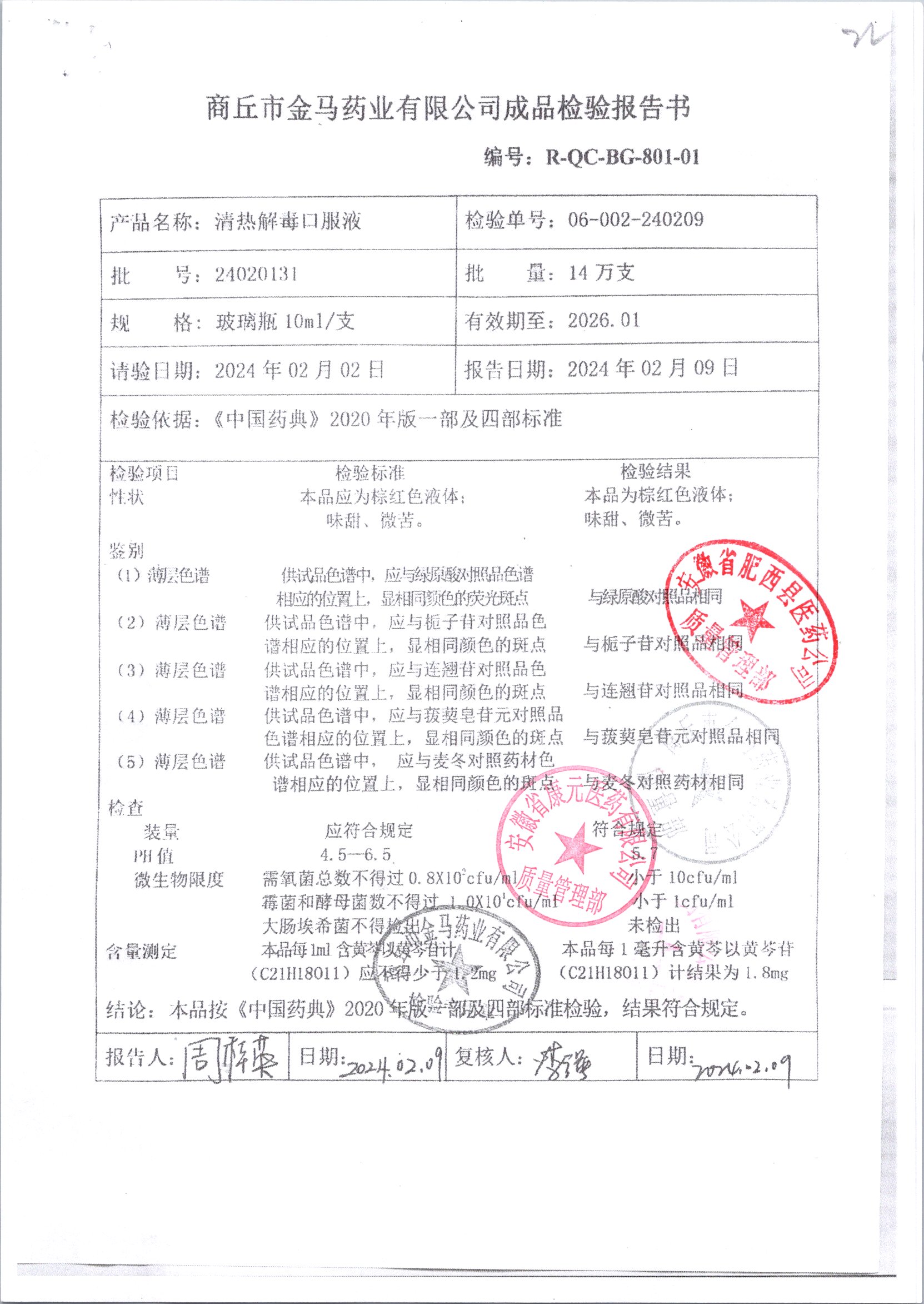 | 清熱解毒口服液 | 10ml | 24020131 | 查看詳情 |