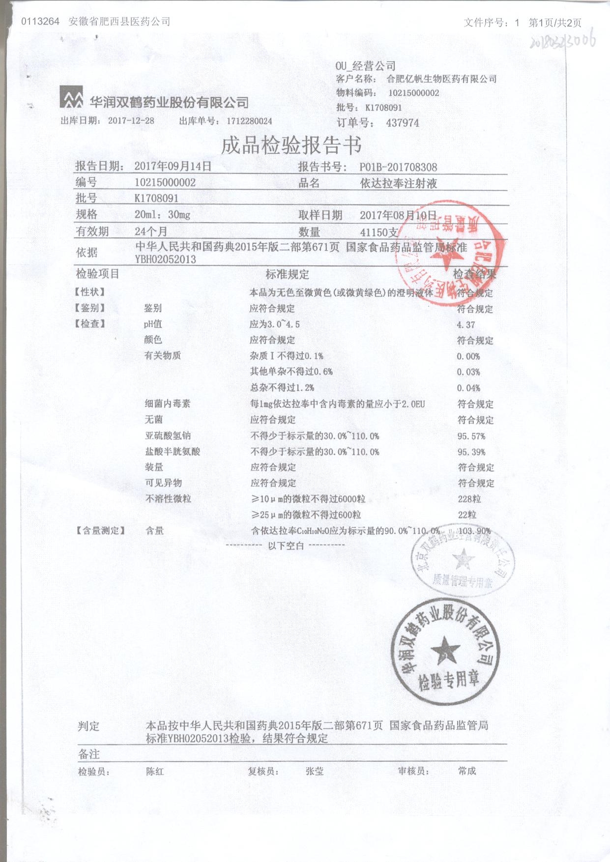 | 依達(dá)拉奉注射液 | 20ml:30mg | K1708142 | 查看詳情 |