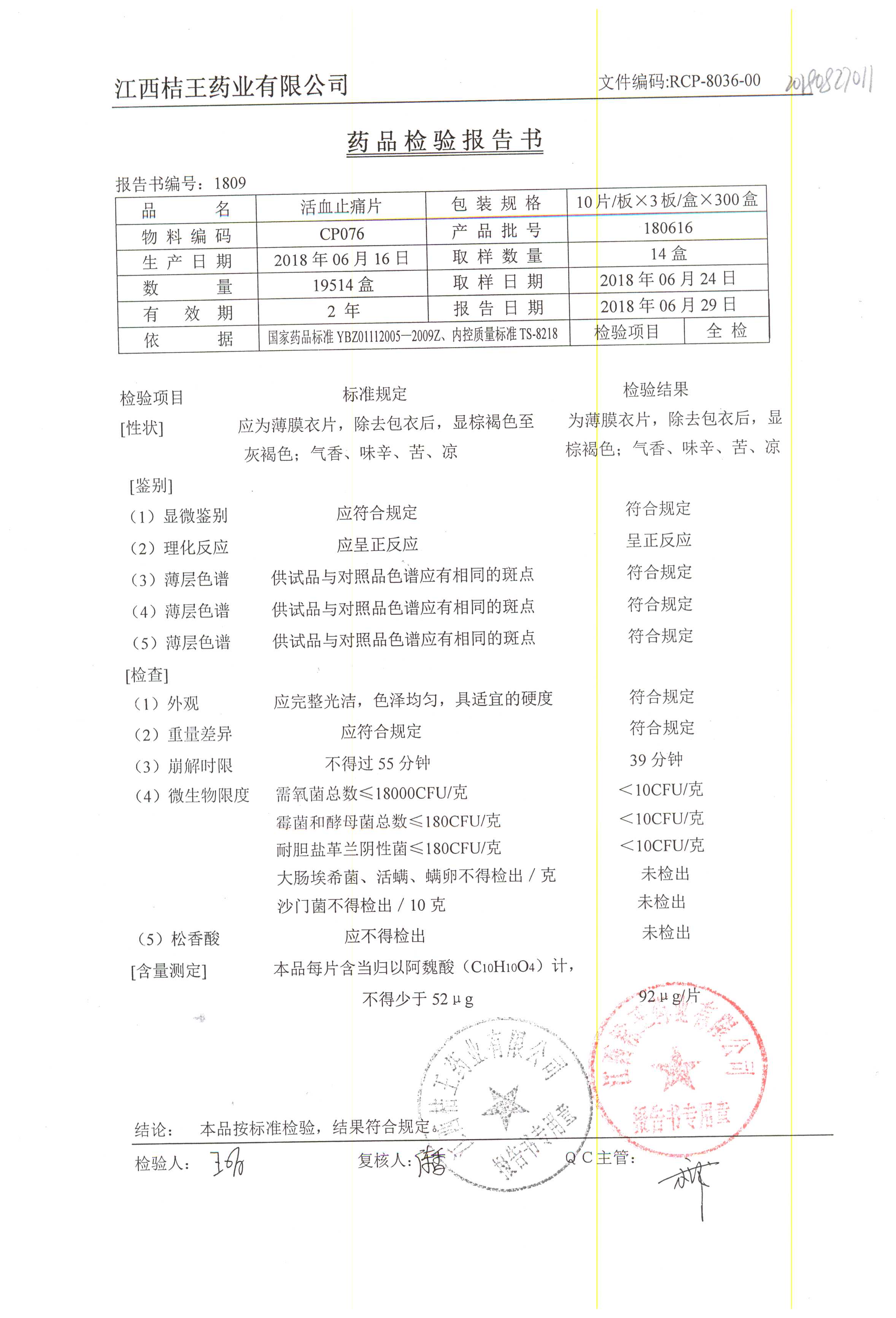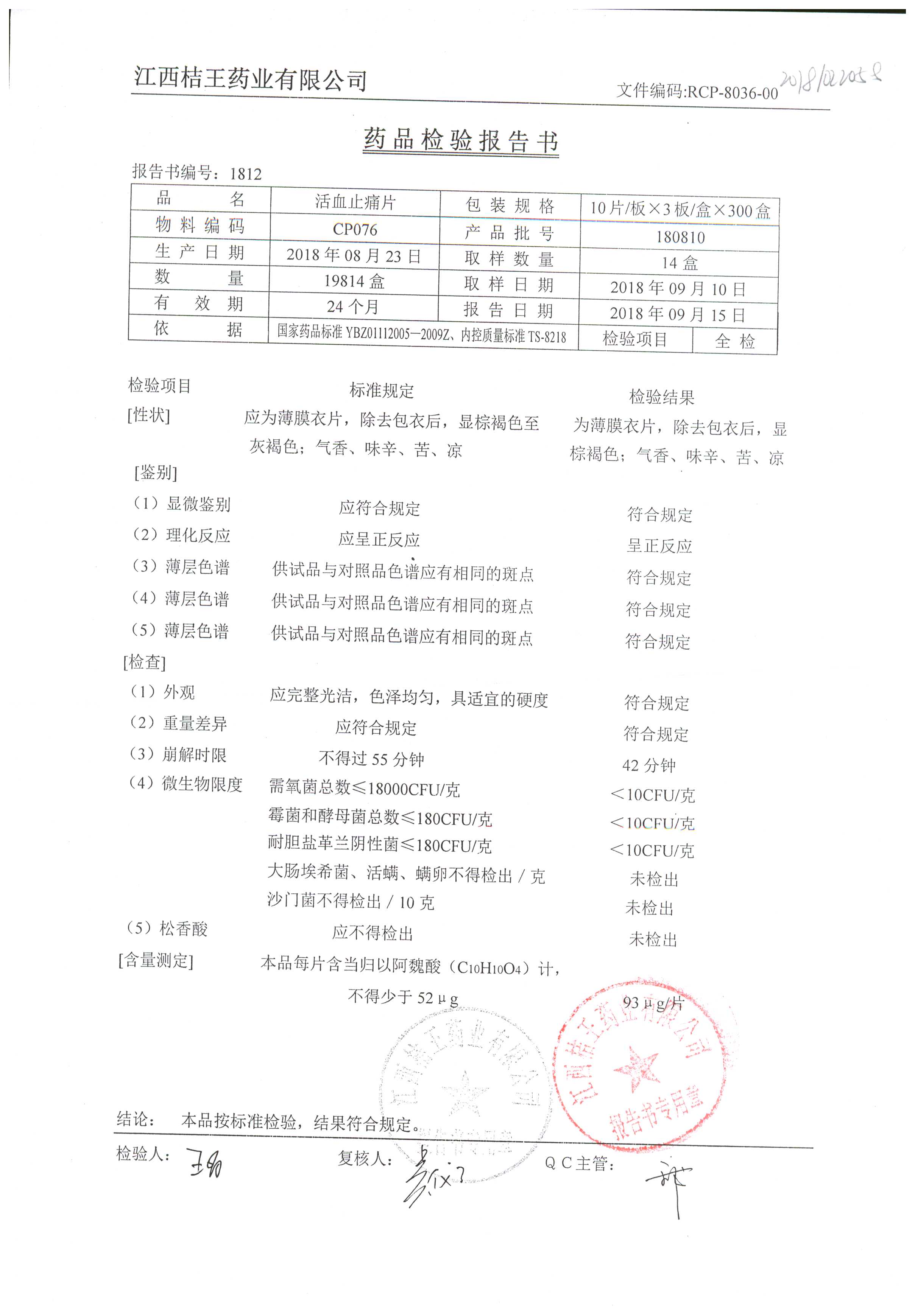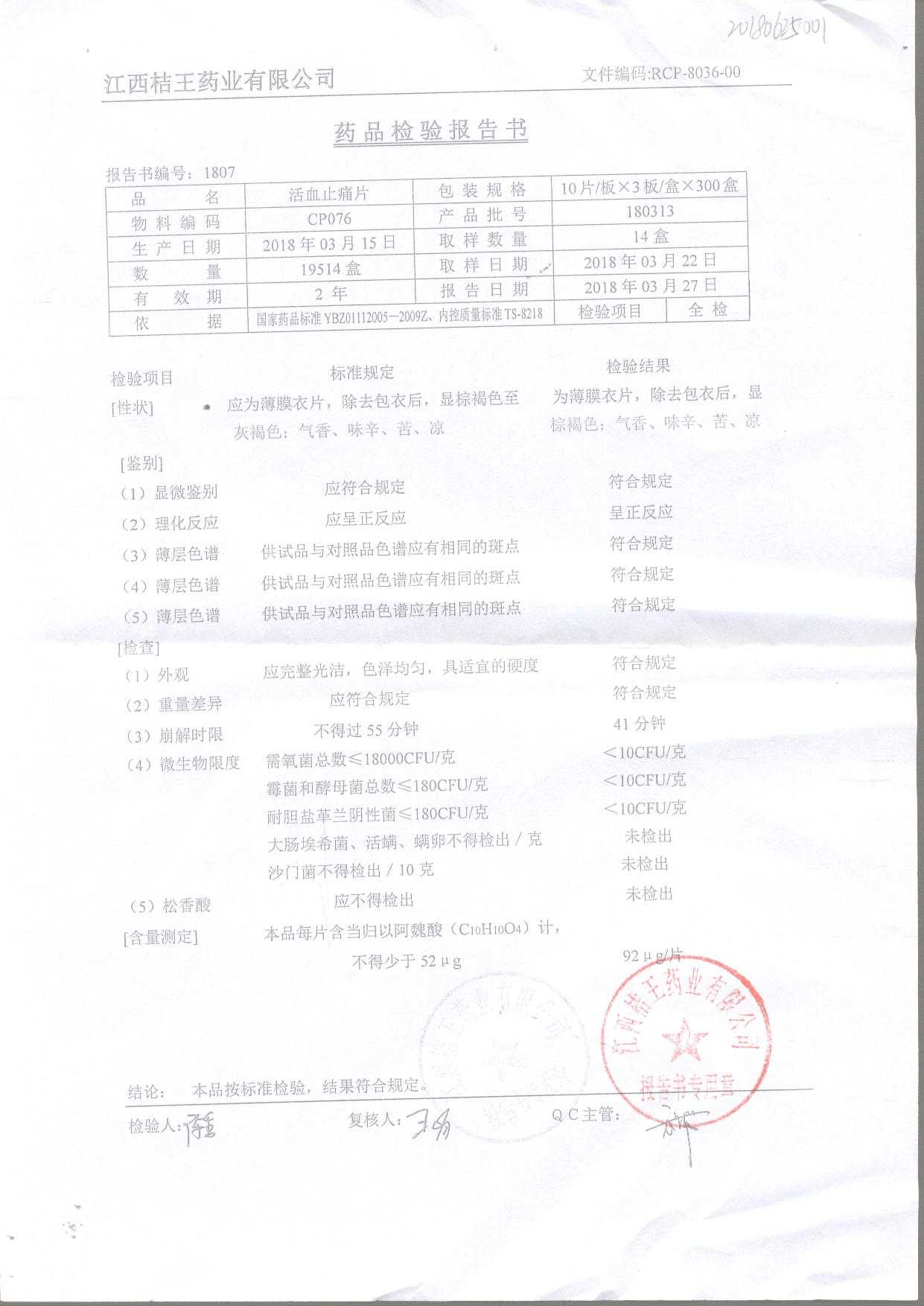 | 活血止痛片 | 10s*3板 | 180810 | 查看詳情 |