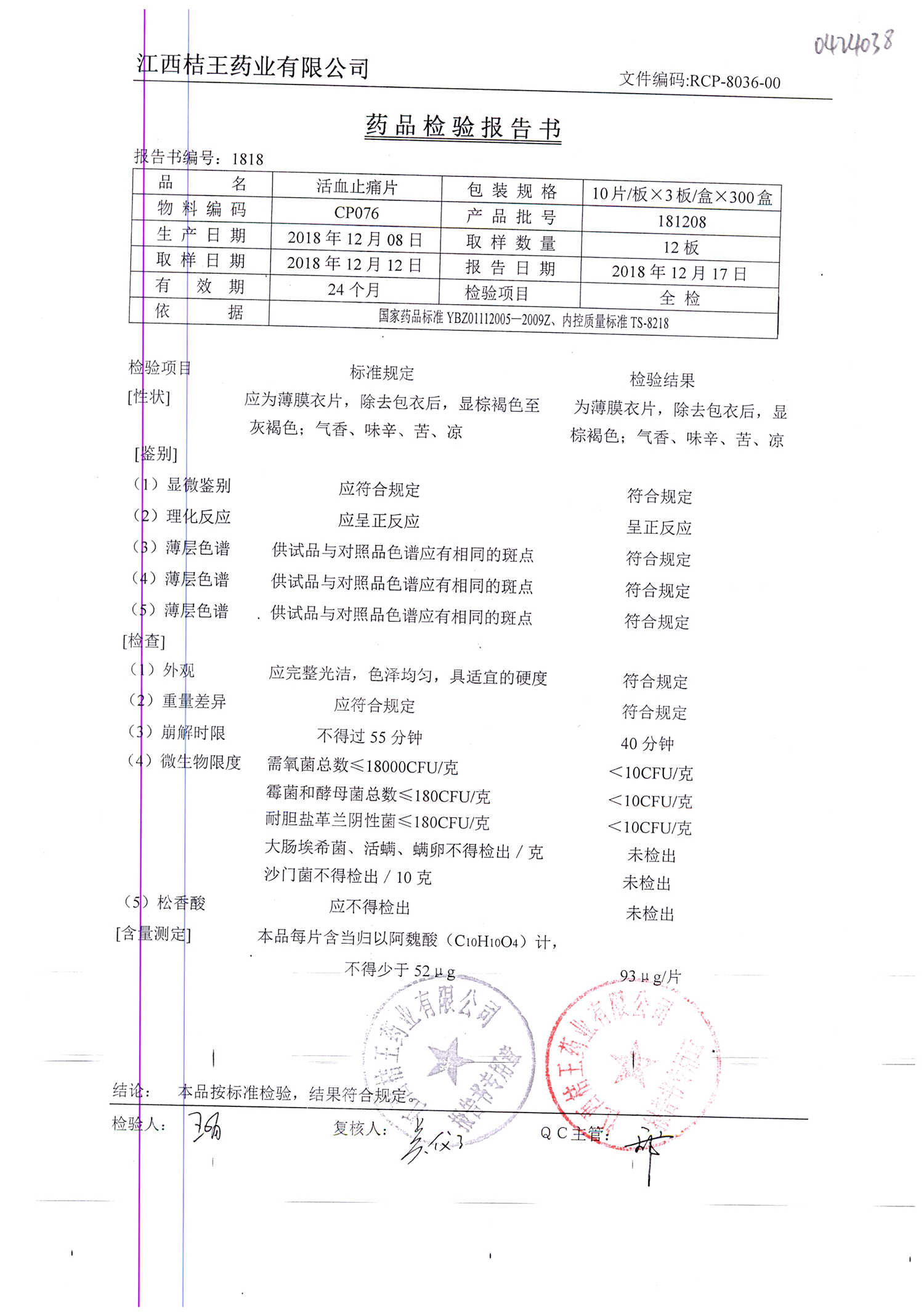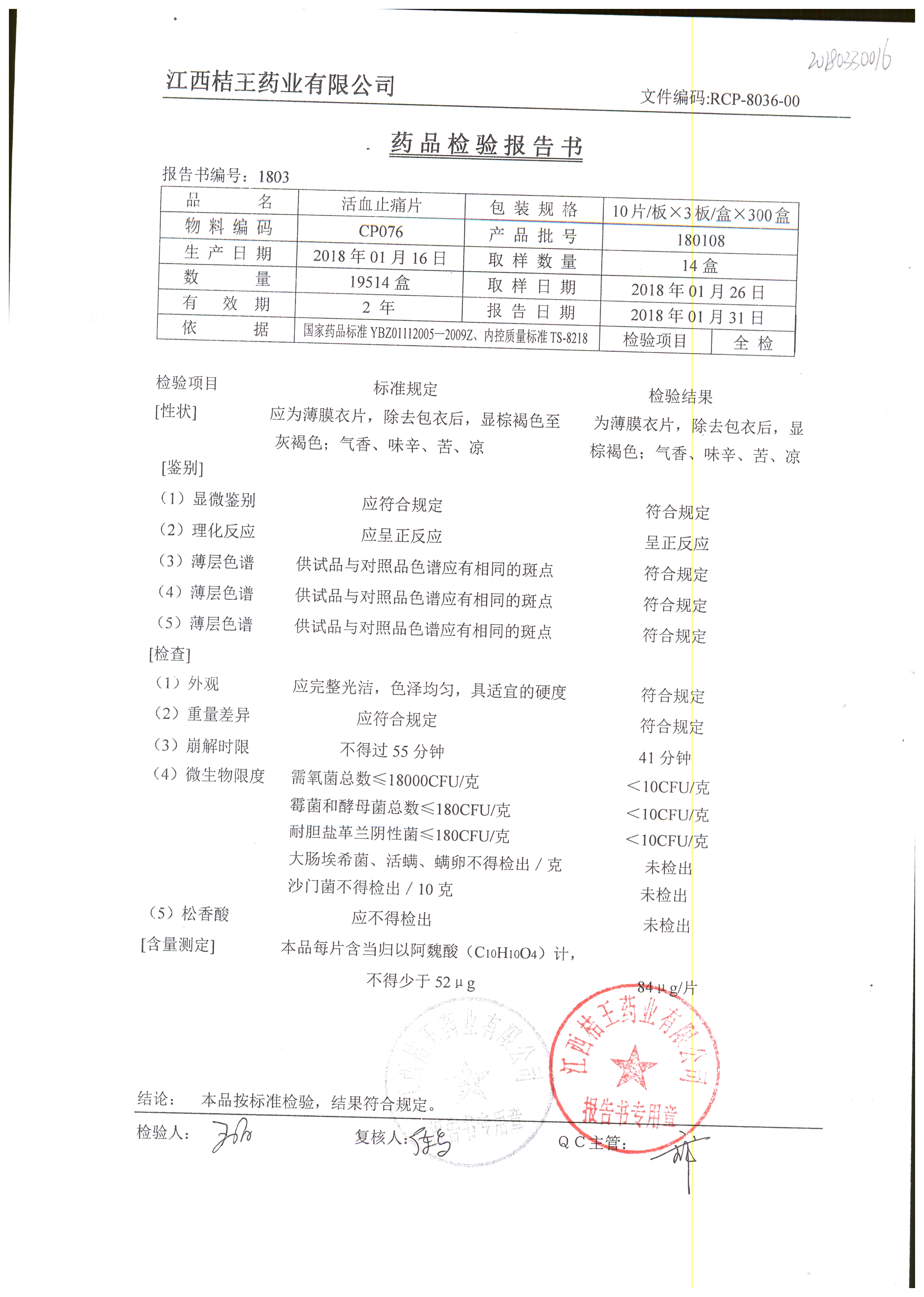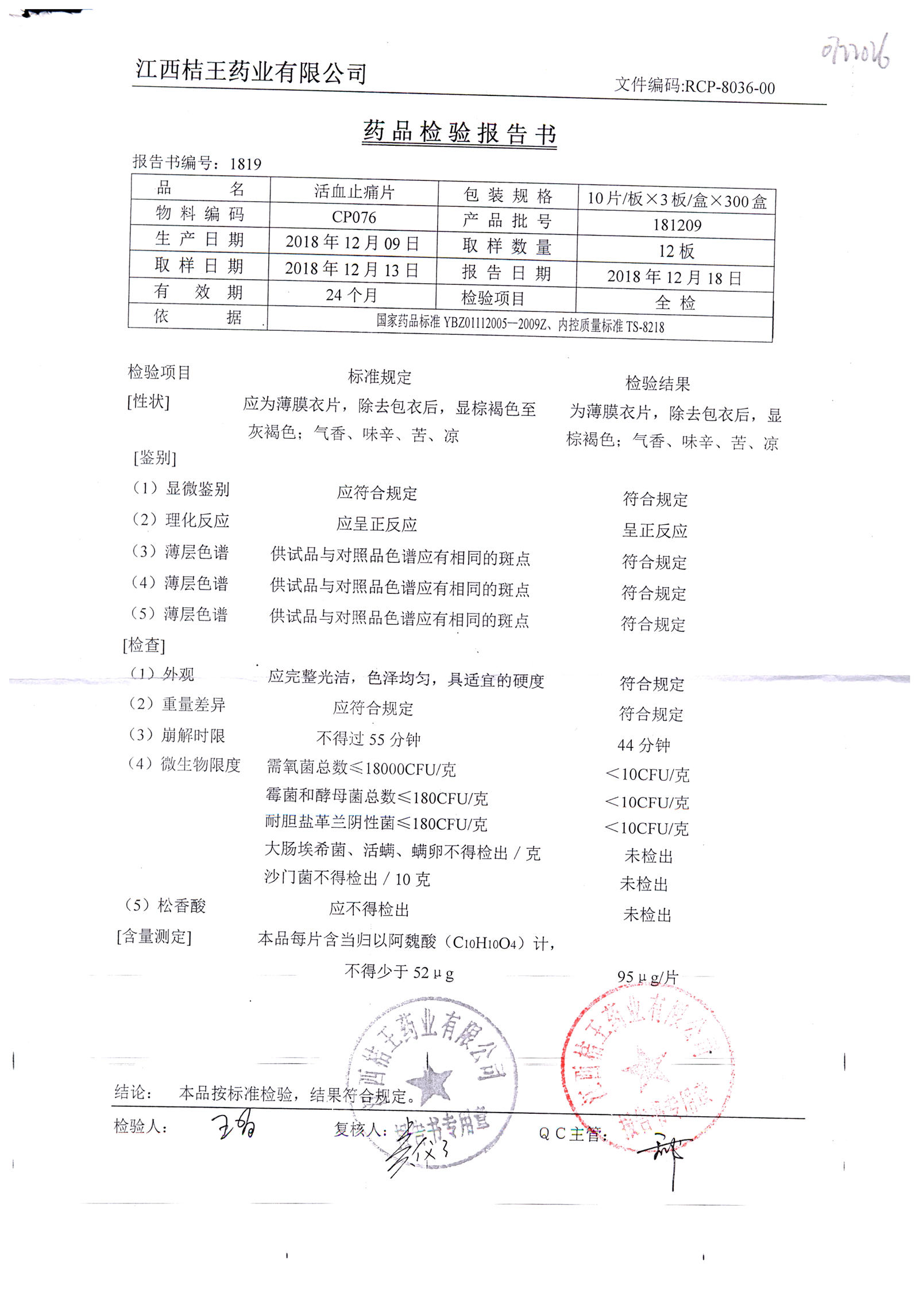 | 活血止痛片 | 10s*3板 | 180810 | 查看詳情 |