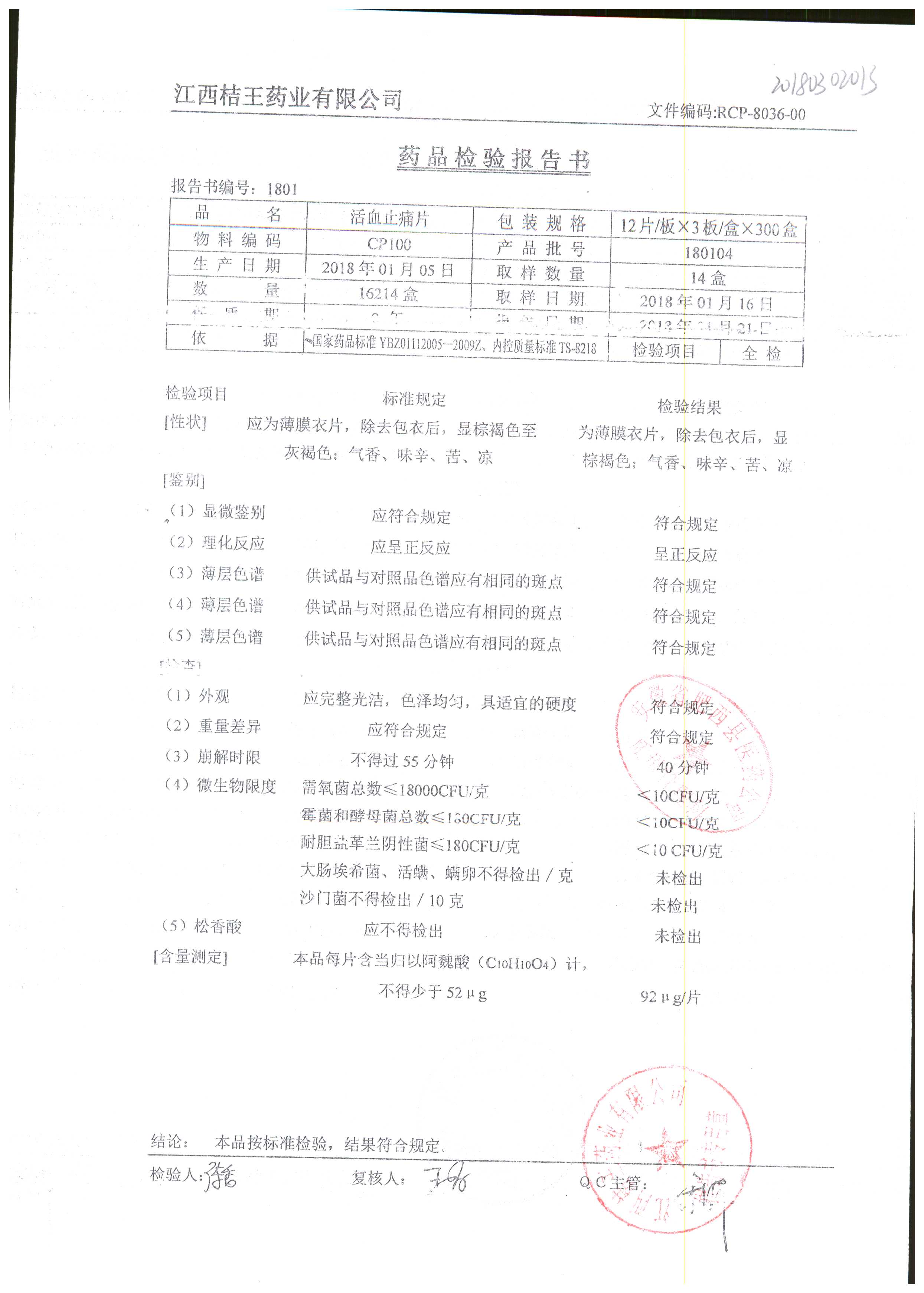 | 名稱 | 規(guī)格 | 批號(hào) | 藥檢報(bào)告 |