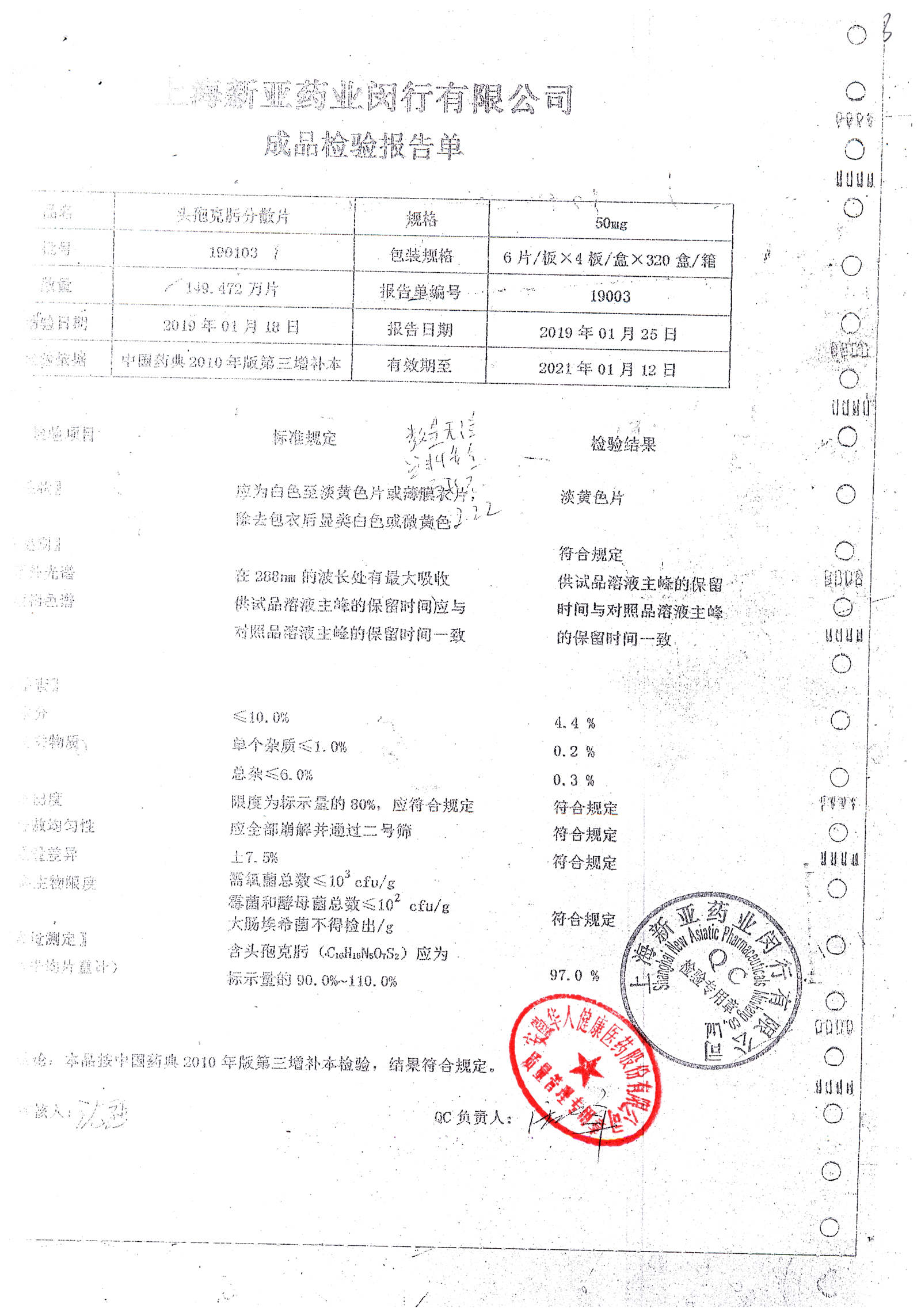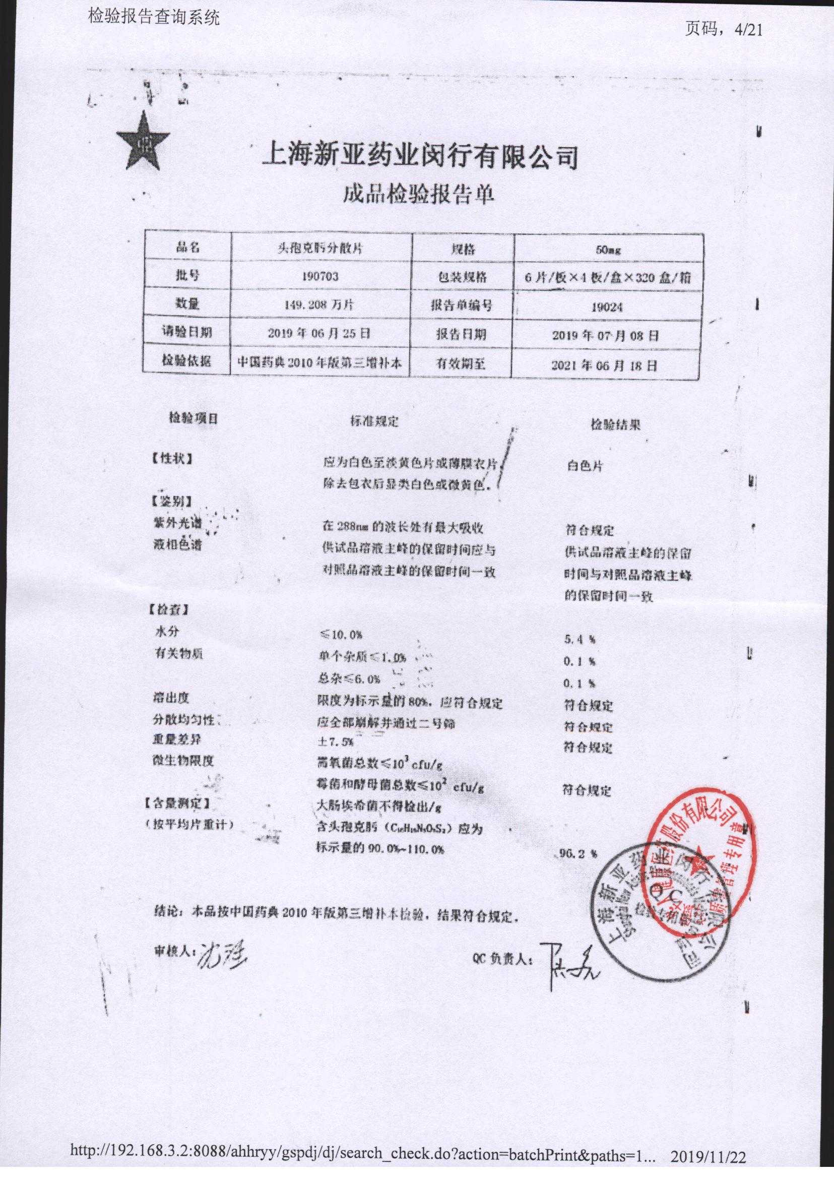 | 頭孢克肟分散片 | 50mg*24s | 190401 | 查看詳情 |