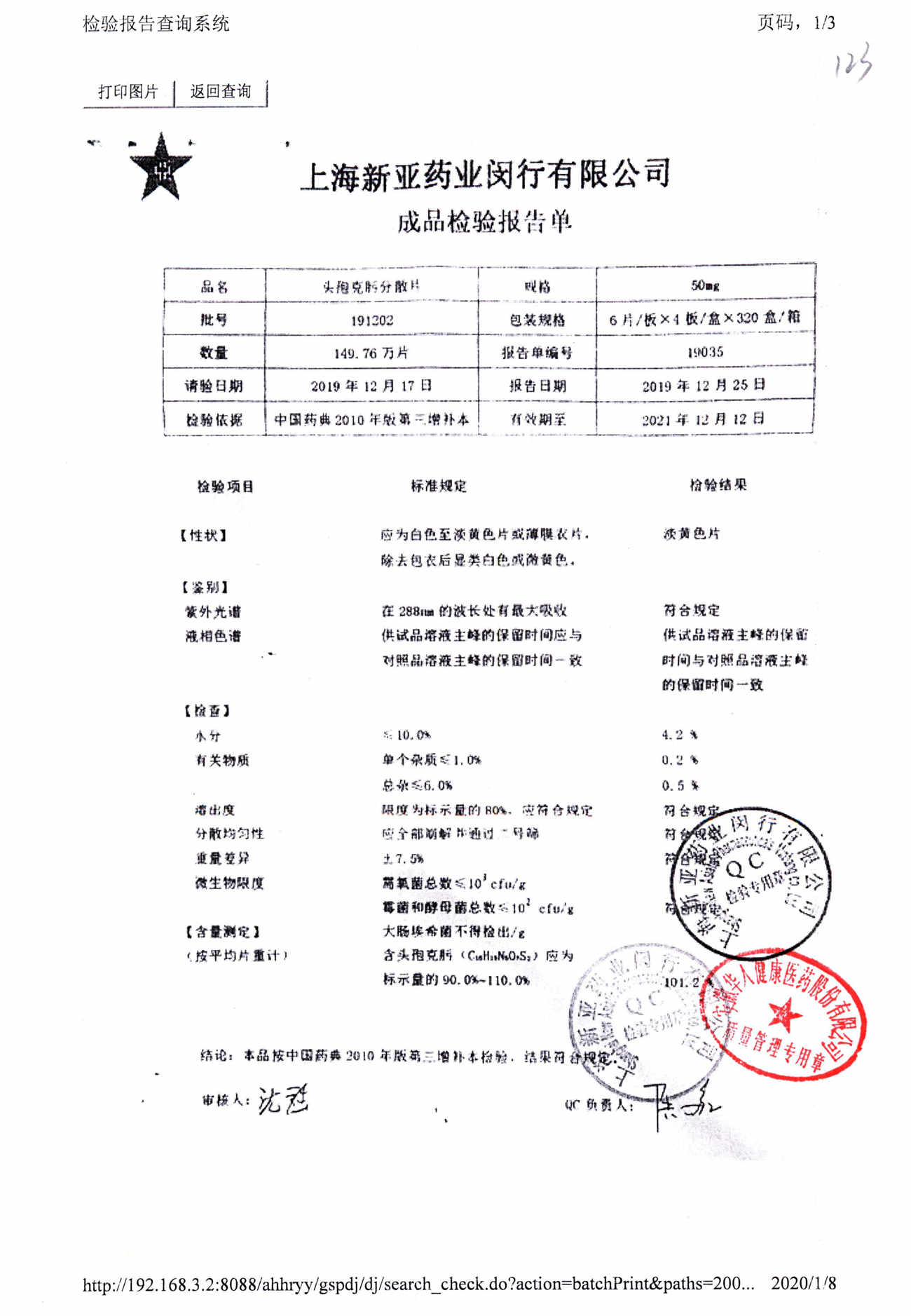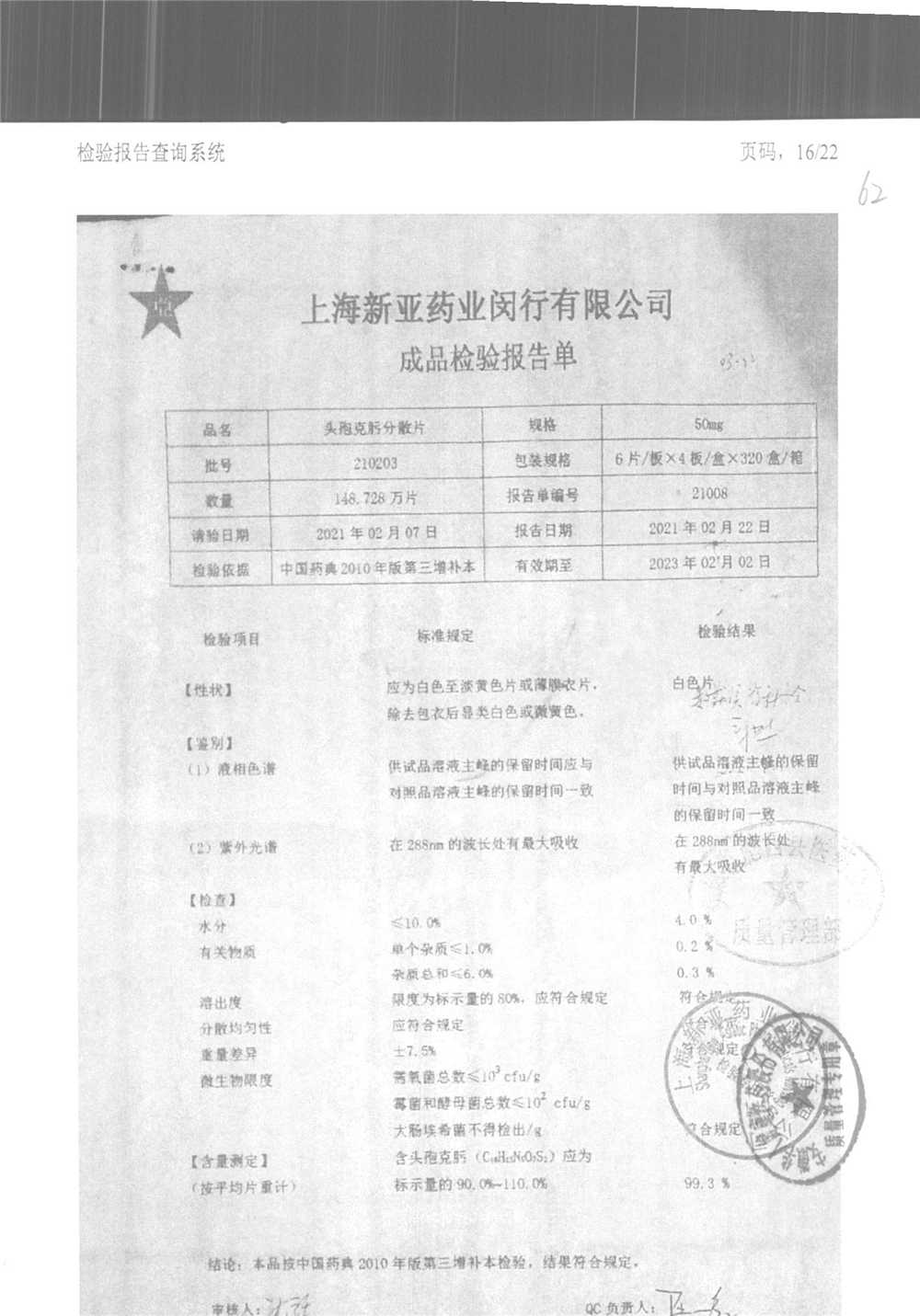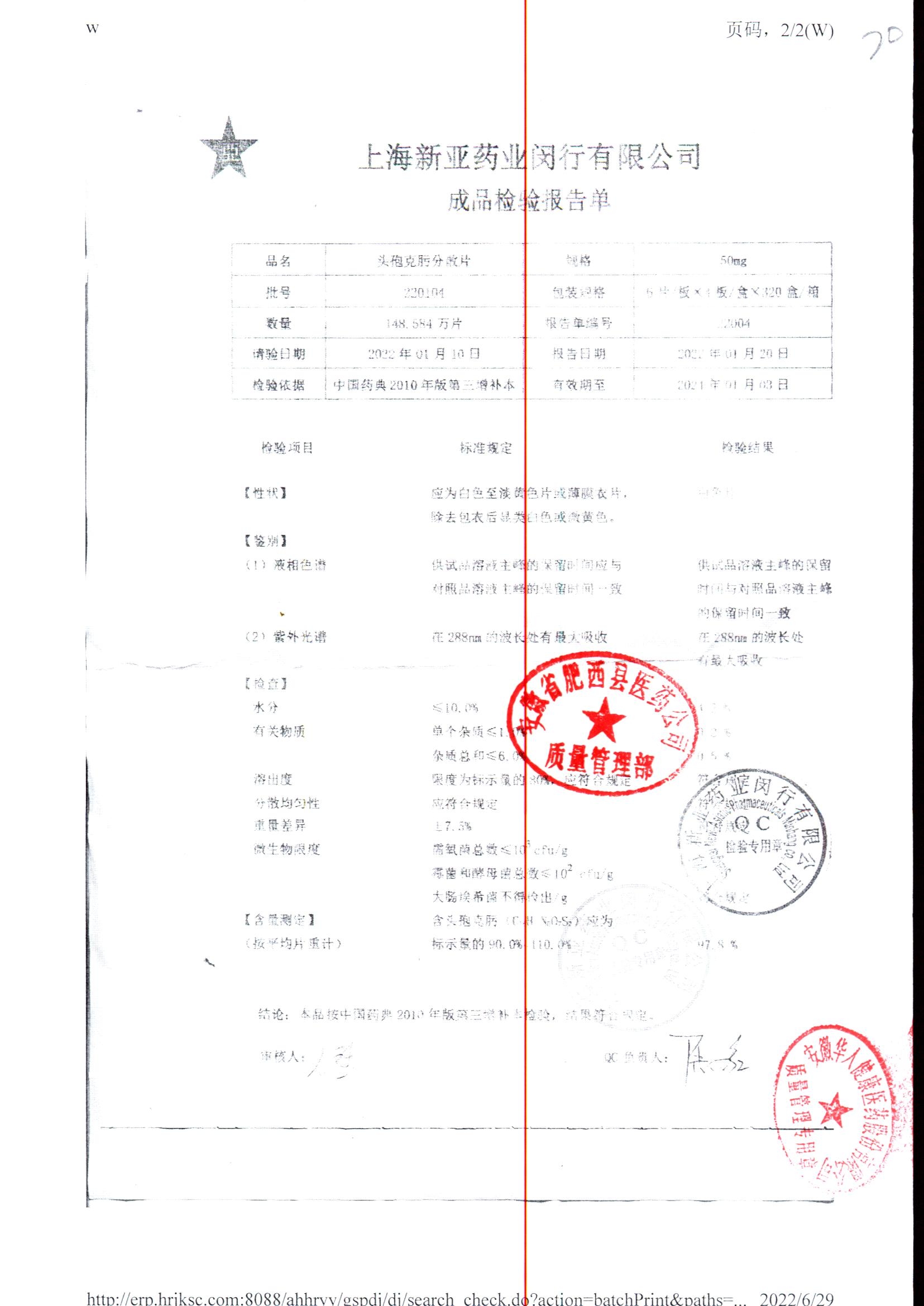 | 頭孢克肟分散片 | 50mg*24s | 210202 | 查看詳情 |