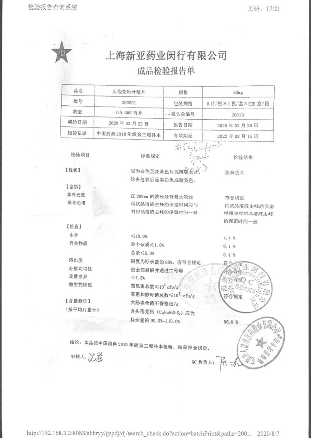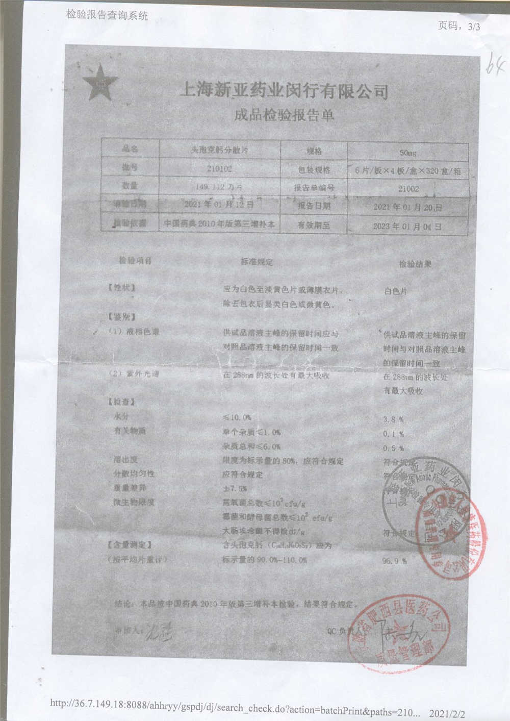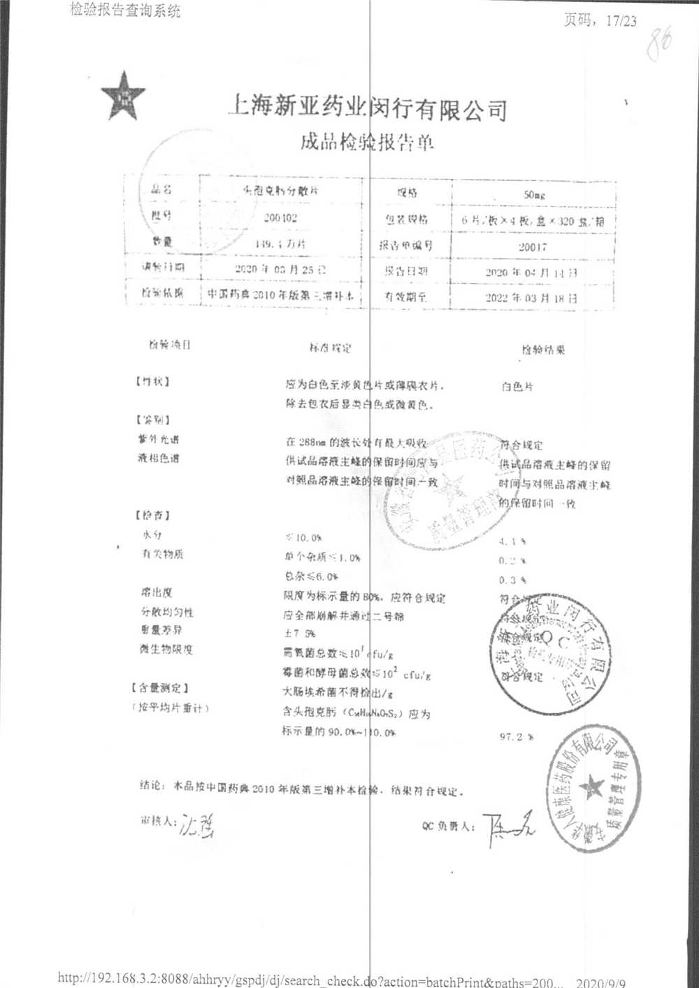 | 頭孢克肟分散片 | 50mg*24s | 210202 | 查看詳情 |
