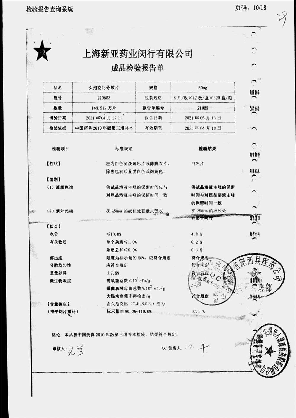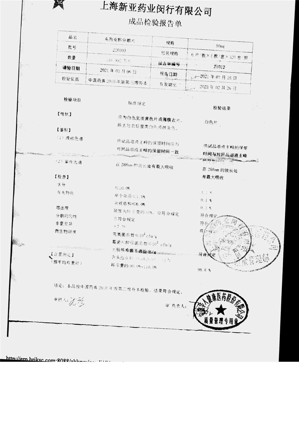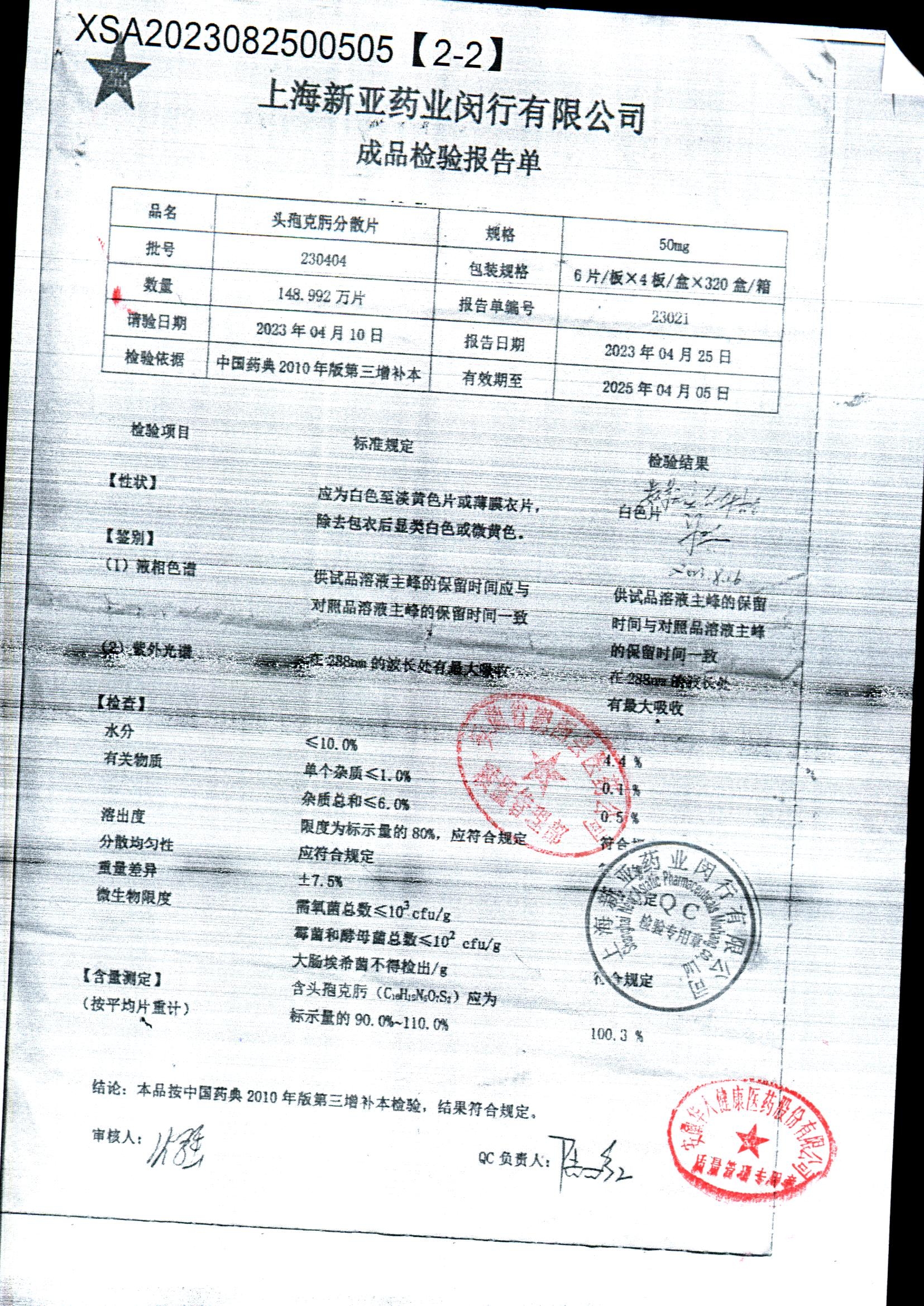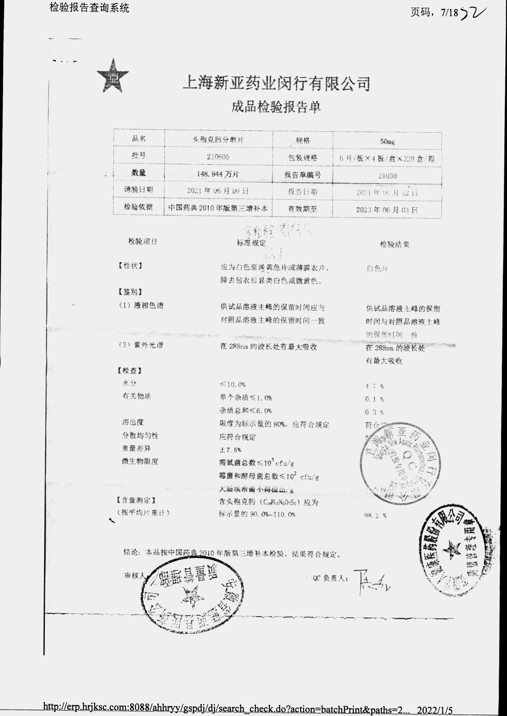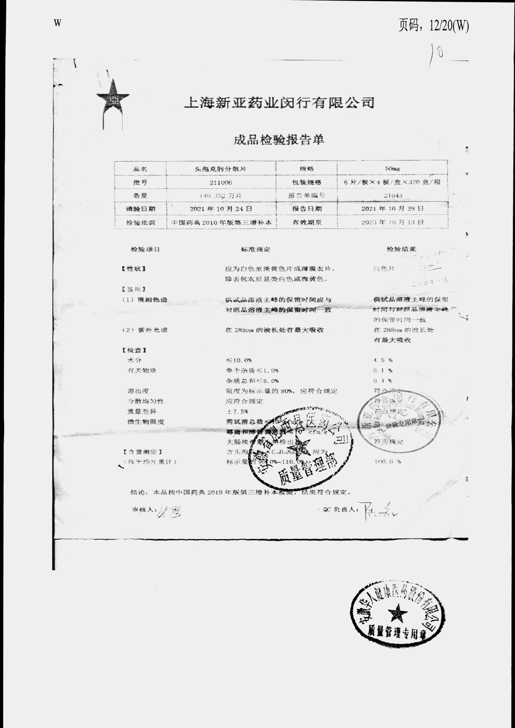 | 頭孢克肟分散片 | 50mg*24s | 210503 | 查看詳情 |