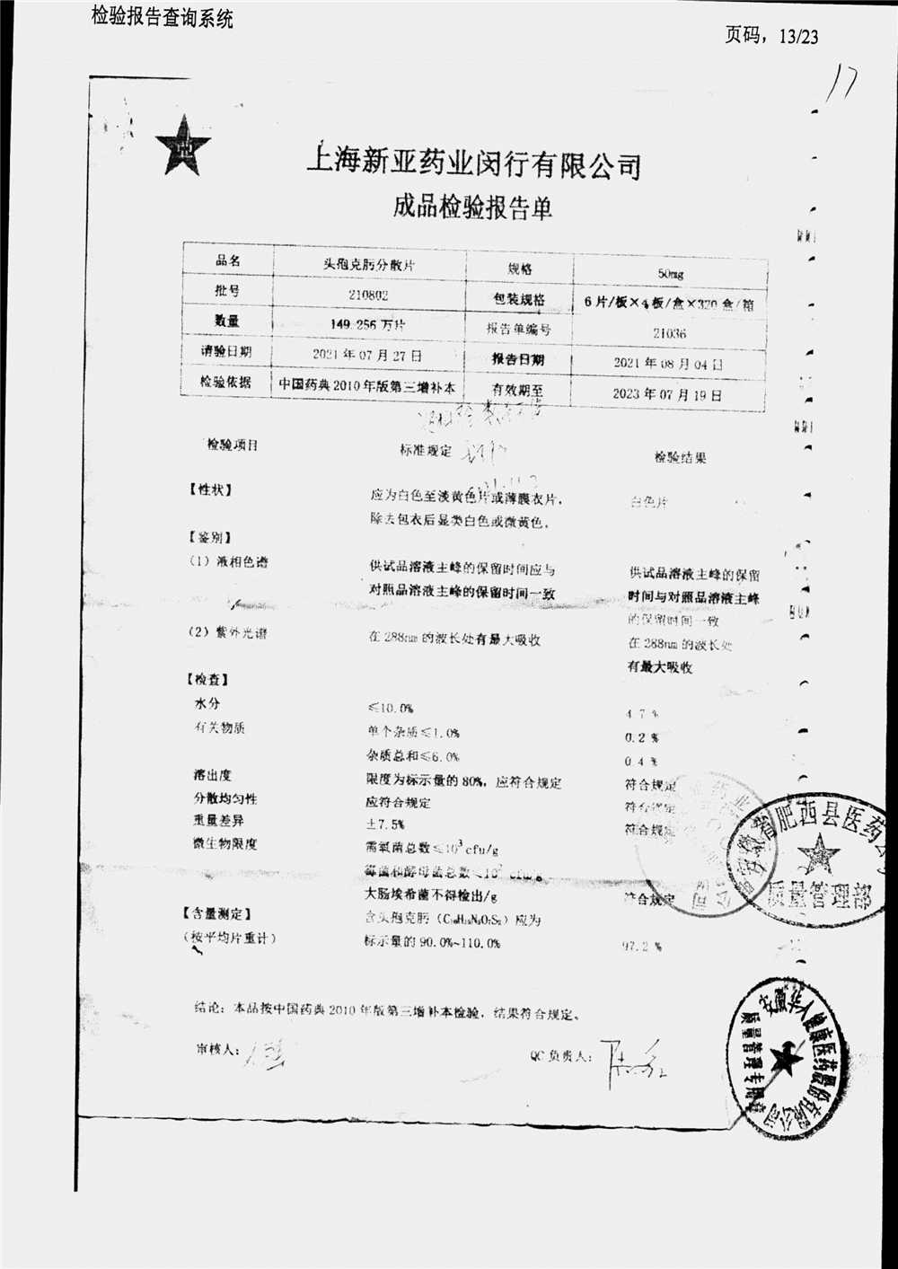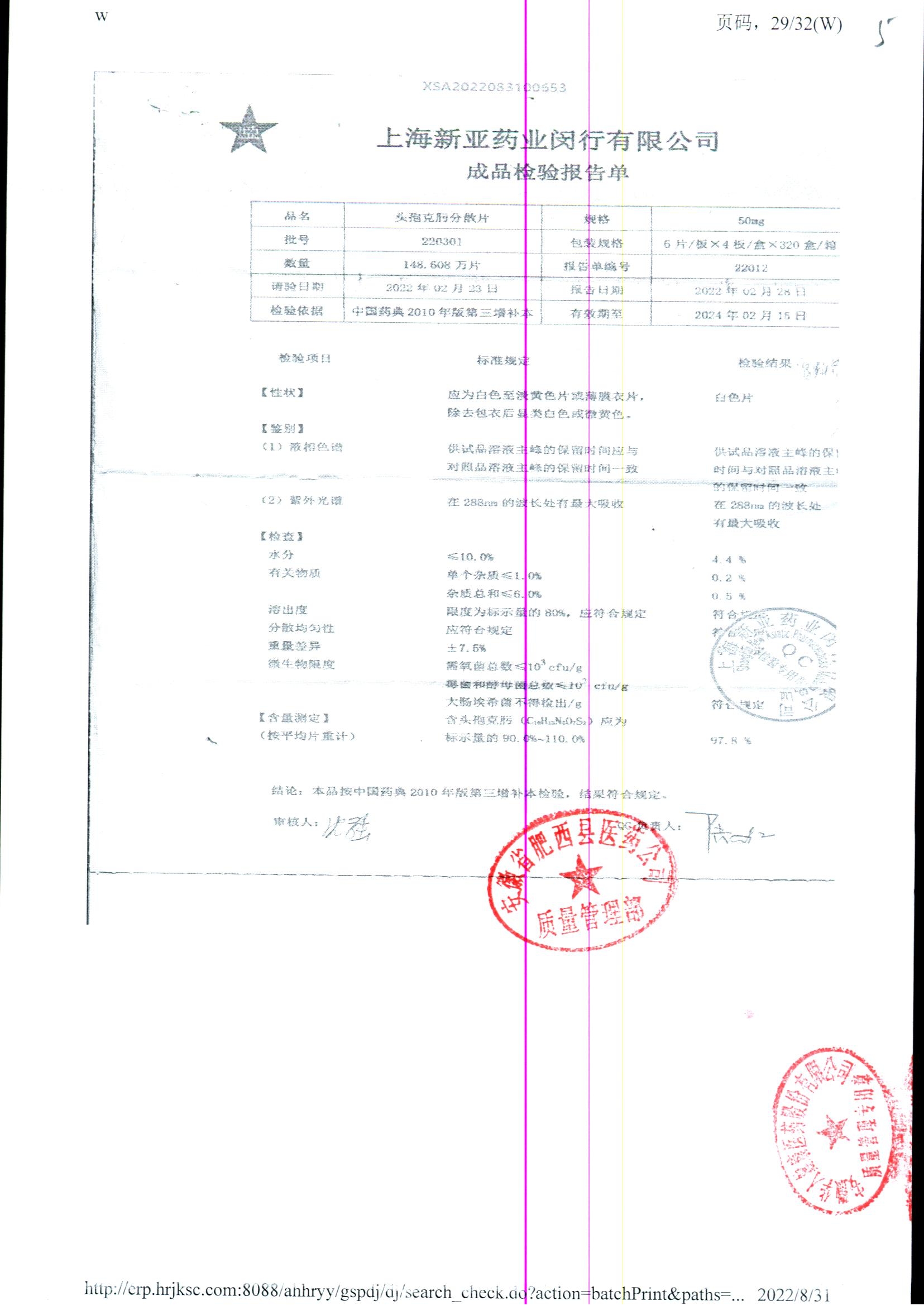 | 頭孢克肟分散片 | 50mg*24s | 210801 | 查看詳情 |