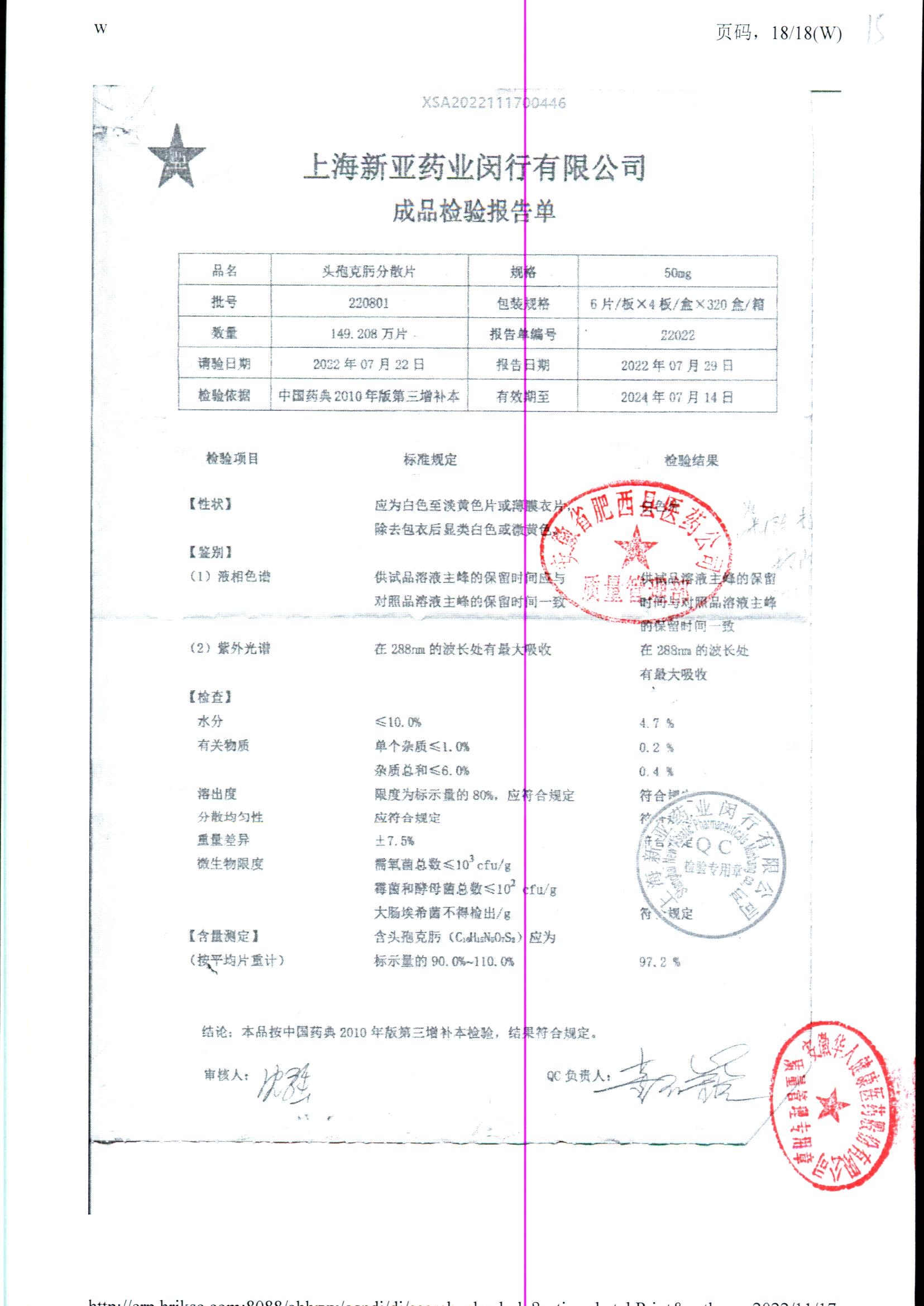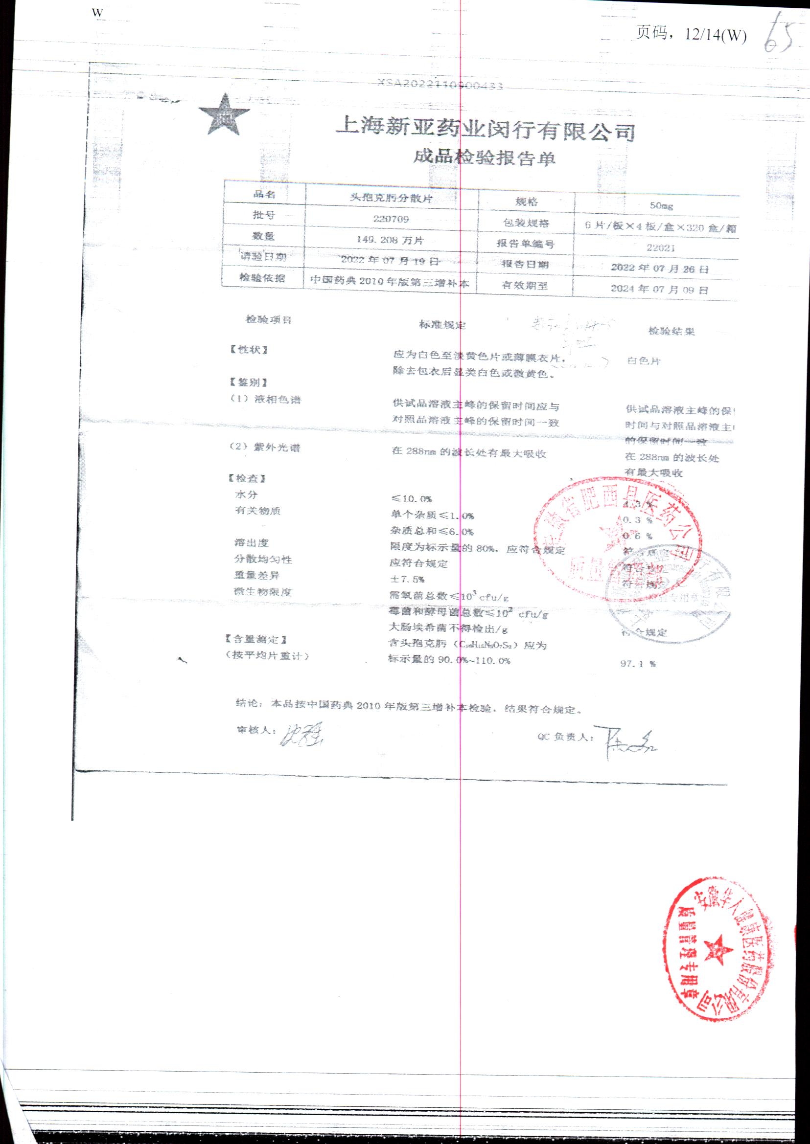 | 頭孢克肟分散片 | 50mg*24s | 220801 | 查看詳情 |