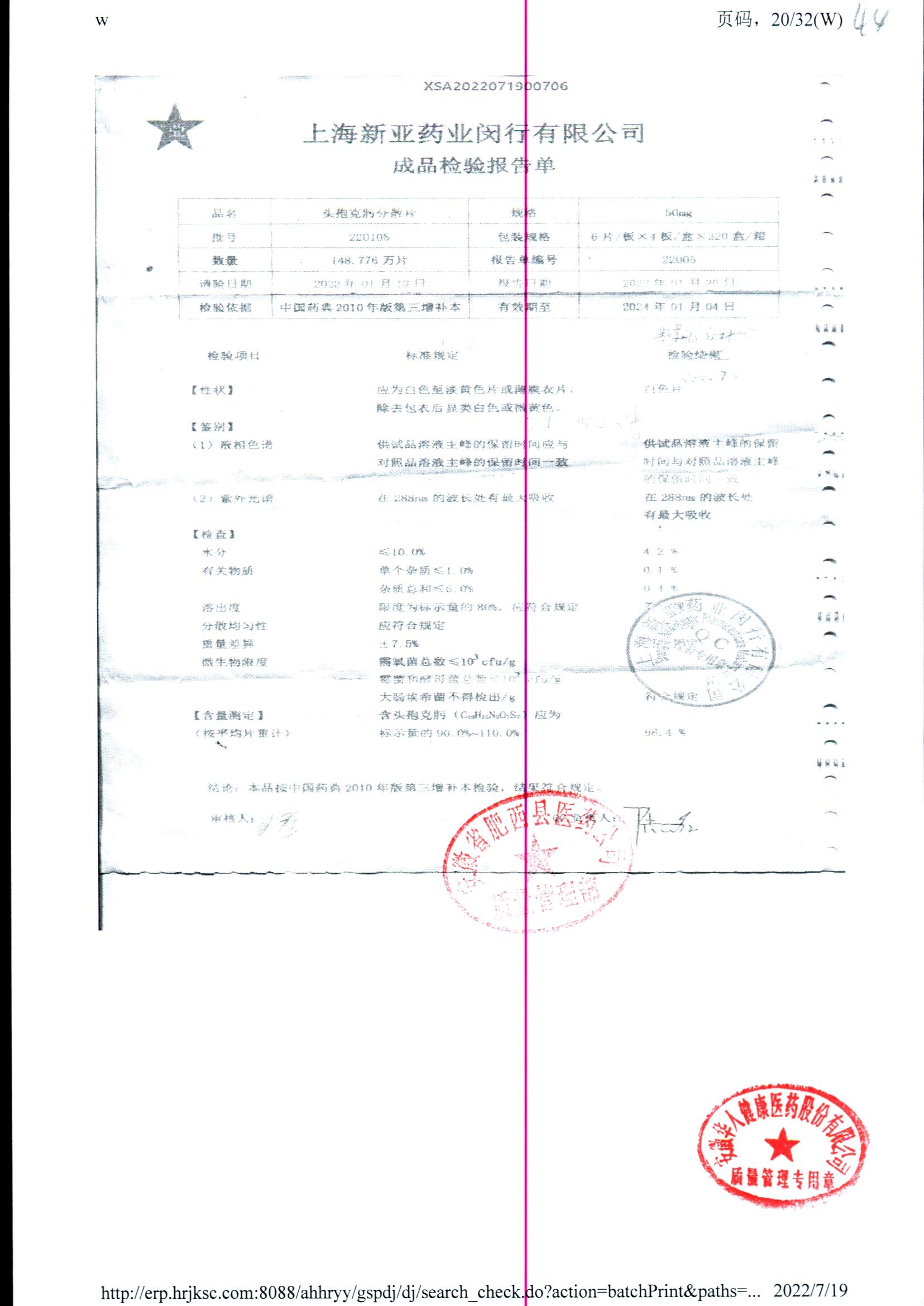 | 頭孢克肟分散片 | 50mg*24s | 210802 | 查看詳情 |
