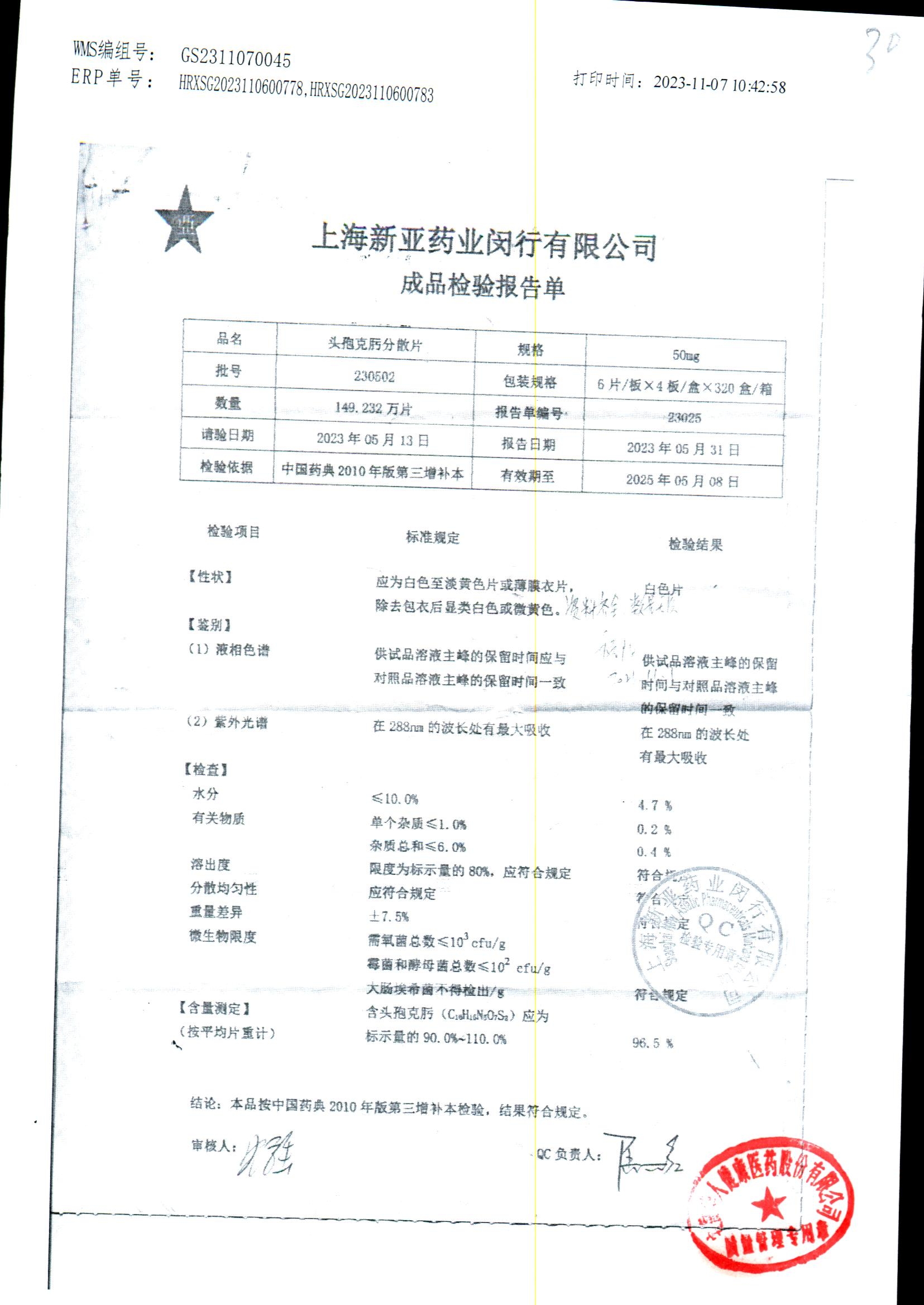 | 頭孢克肟分散片 | 50mg*24s | 230502 | 查看詳情 |