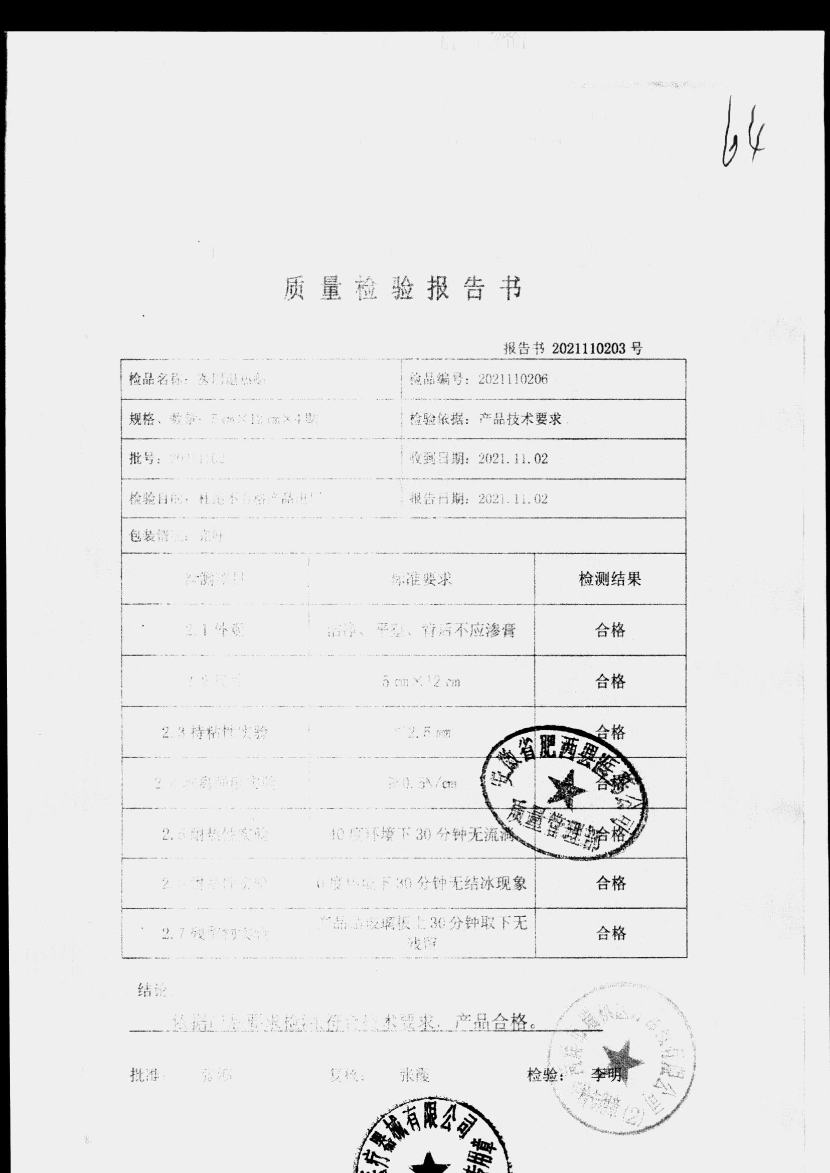 | 醫(yī)用退熱貼 | 5cm*12cm | 20211102 | 查看詳情 |