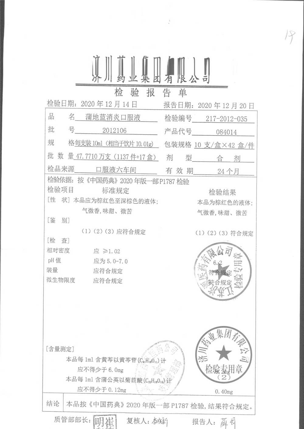 | 蒲地藍(lán)消炎口服液 | 10ml*10支 | 2012106 | 查看詳情 |