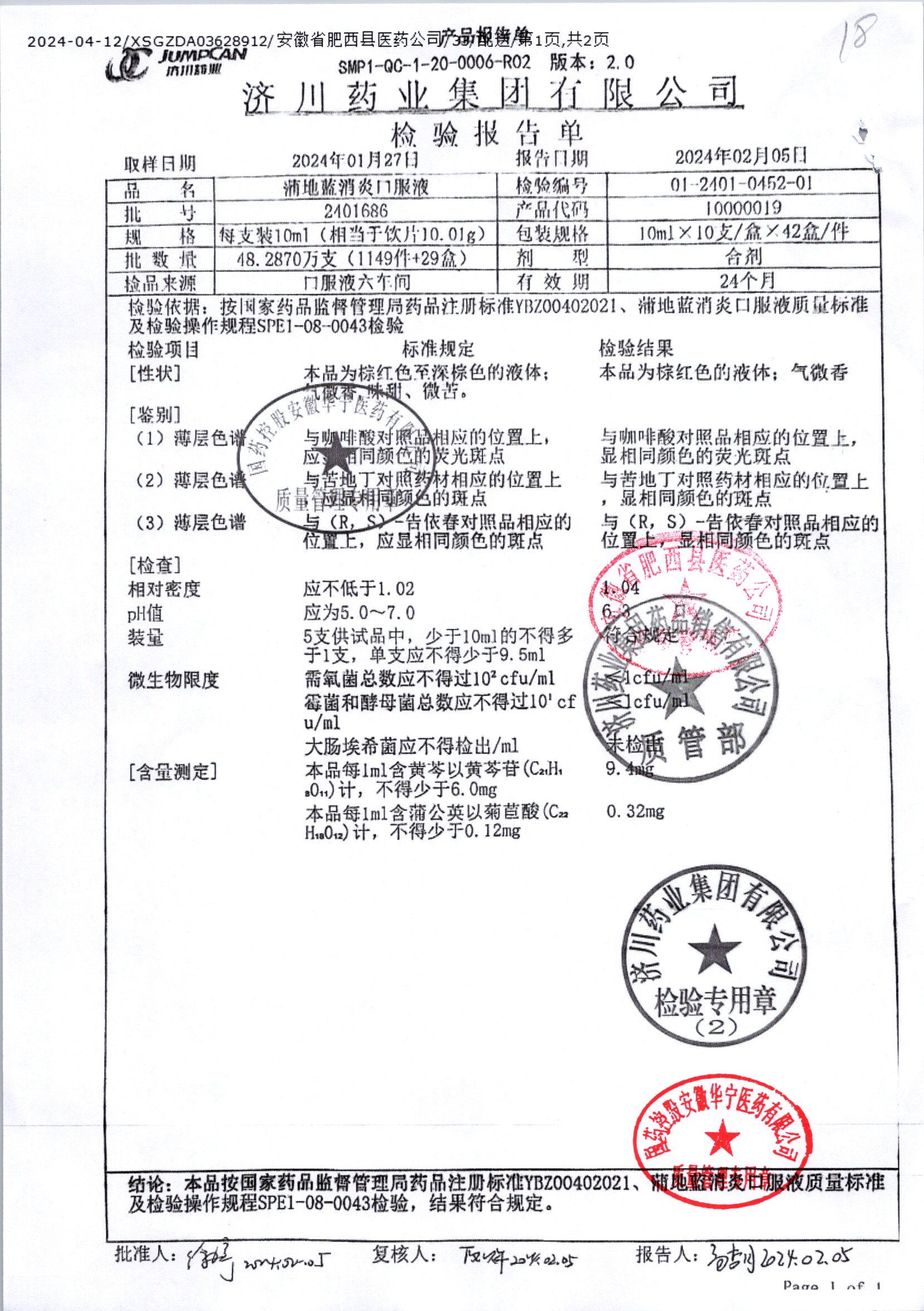 | 名稱 | 規(guī)格 | 批號(hào) | 藥檢報(bào)告 |