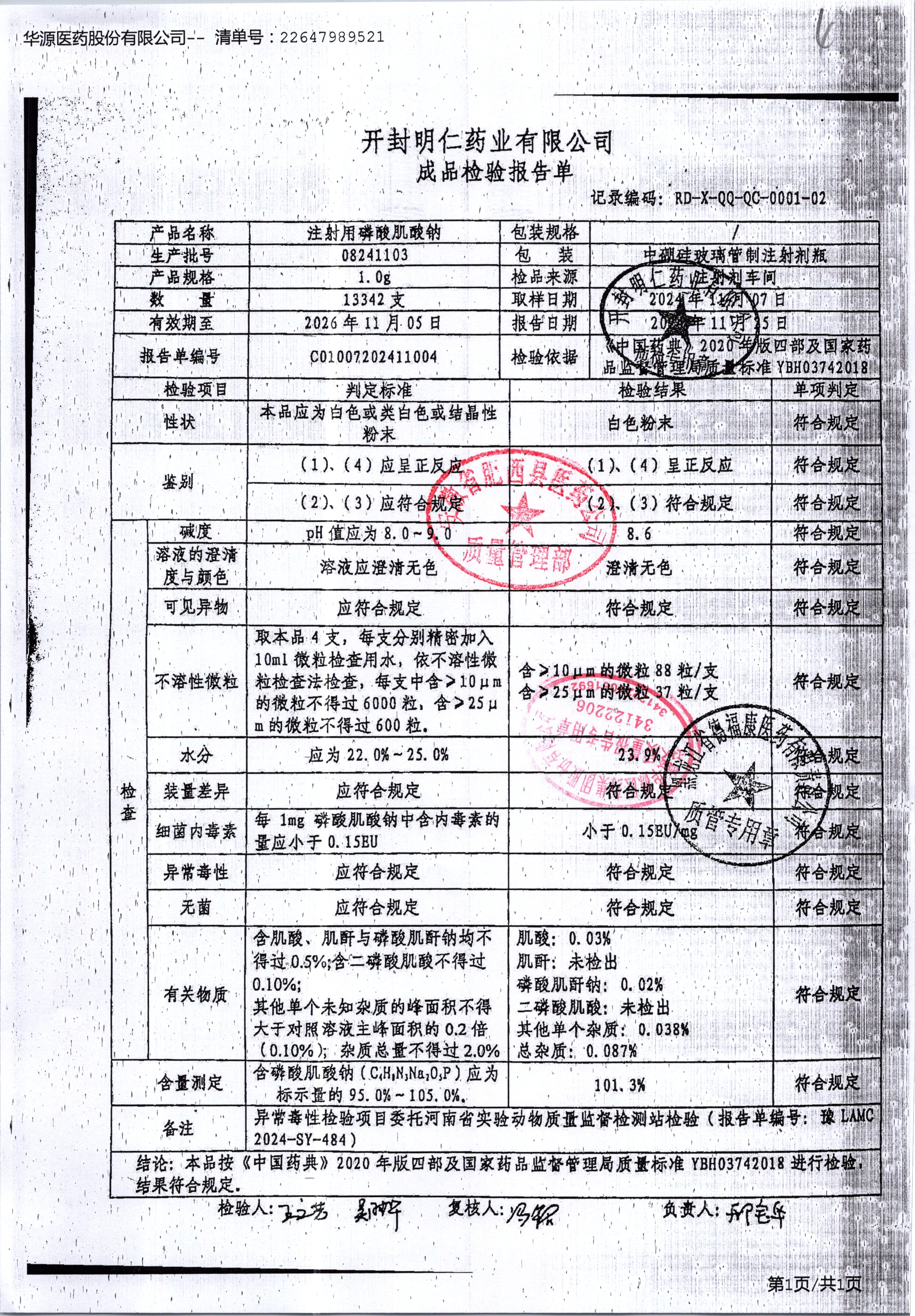 注射用磷酸肌酸鈉 1.0g 08241103 查看詳情