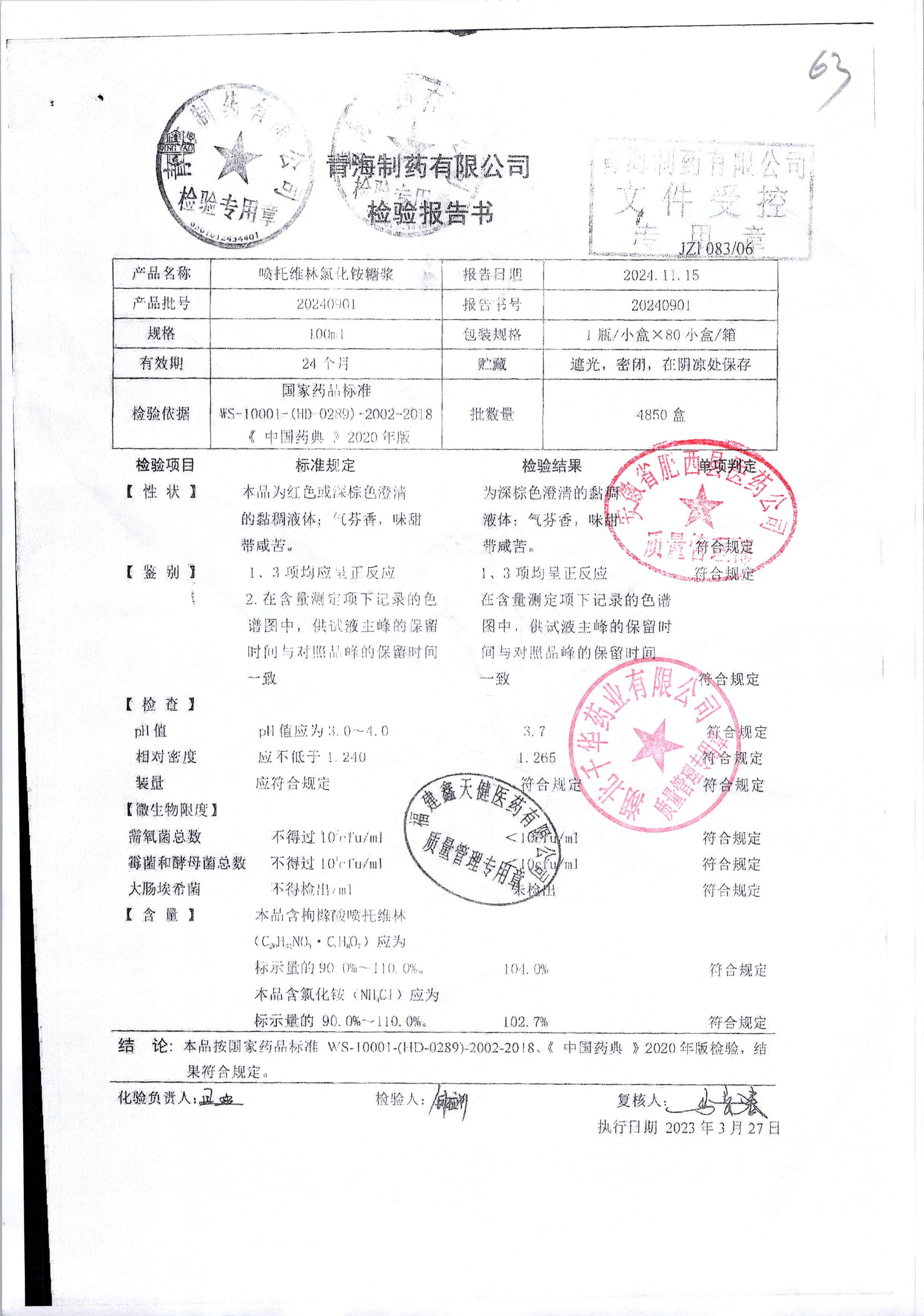 噴托維林氯化銨糖漿 100ml 20240901 查看詳情