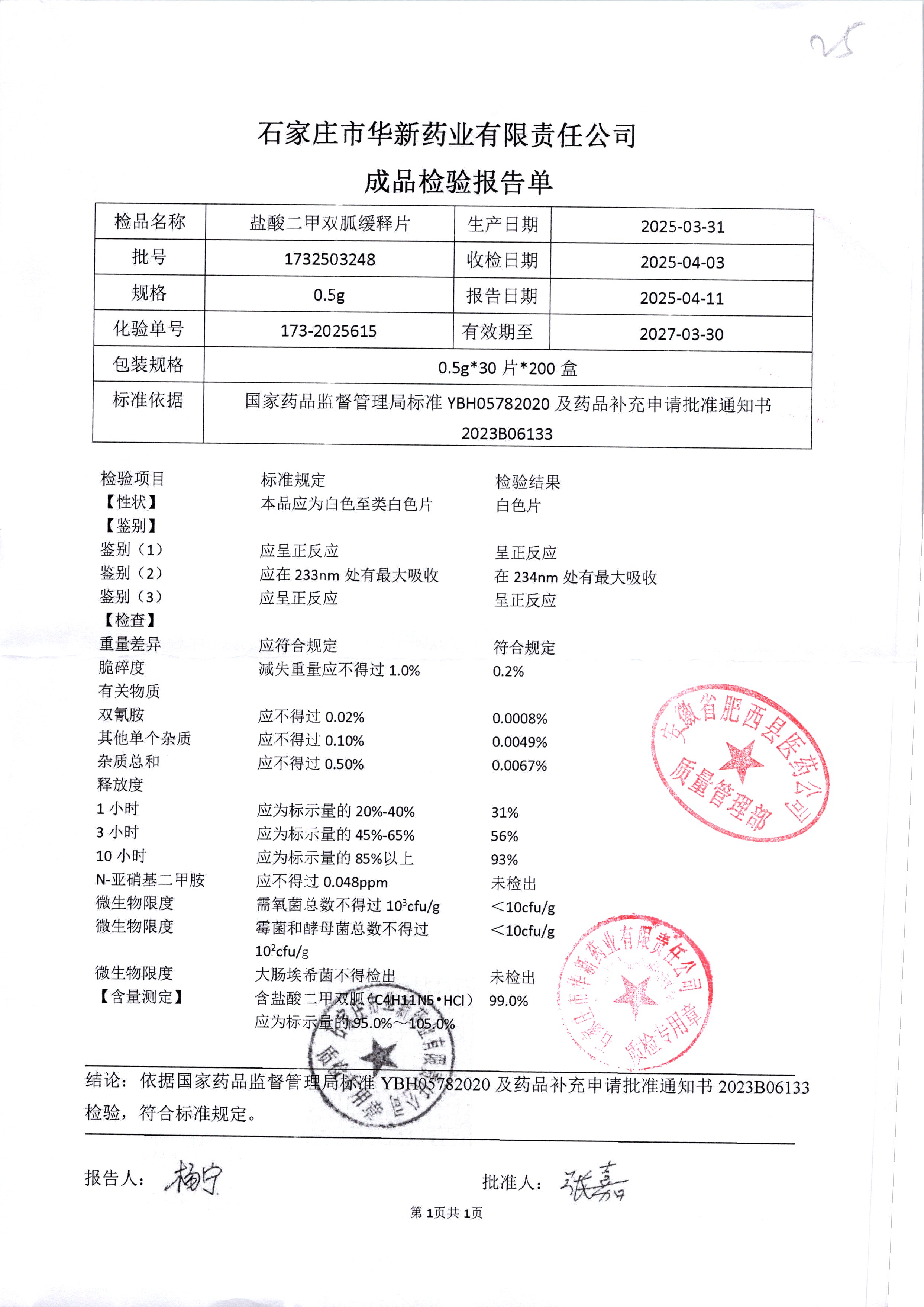 | 鹽酸二甲雙胍緩釋片 | 0.5g*30片 | 1732503248 | 查看詳情 |