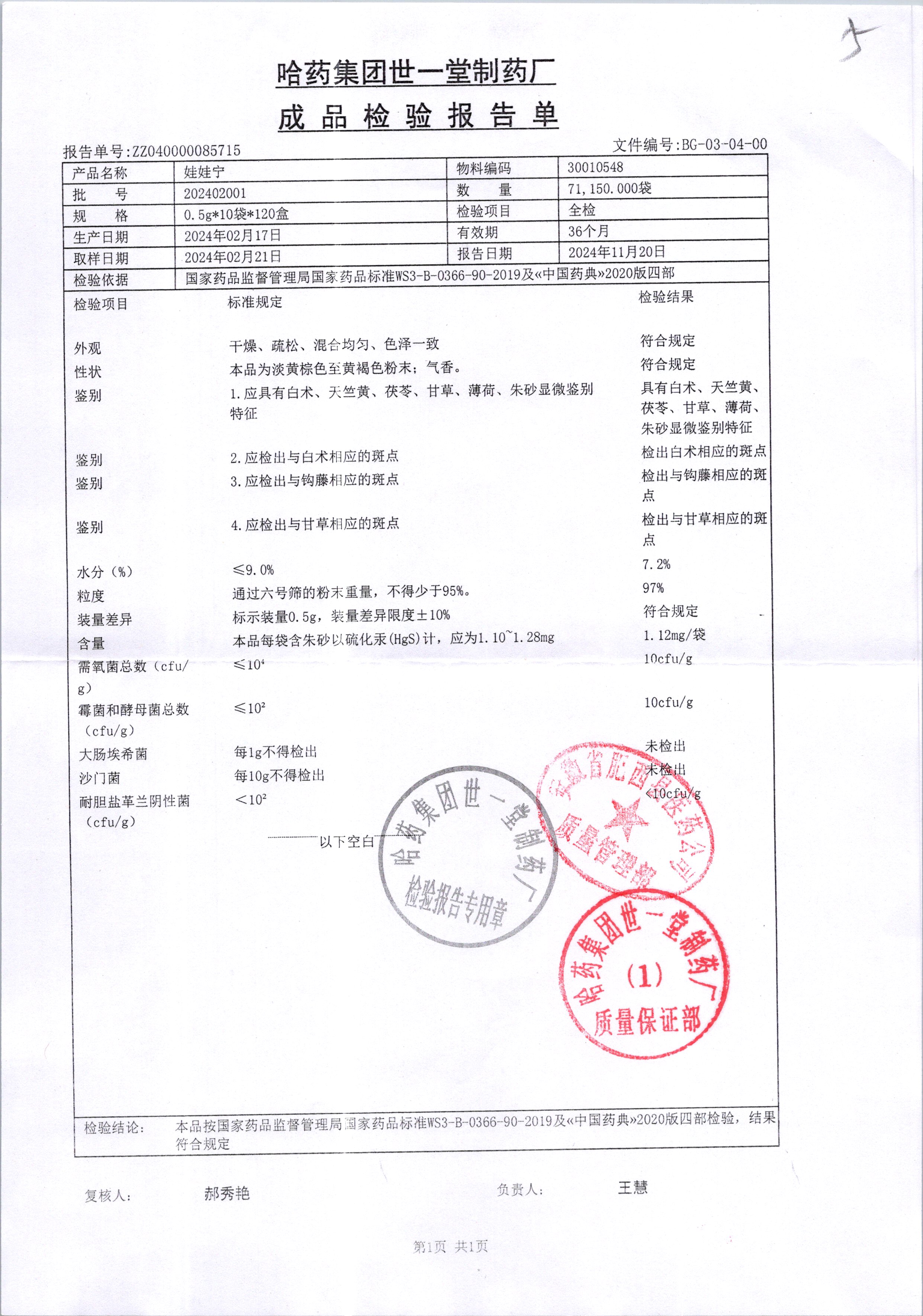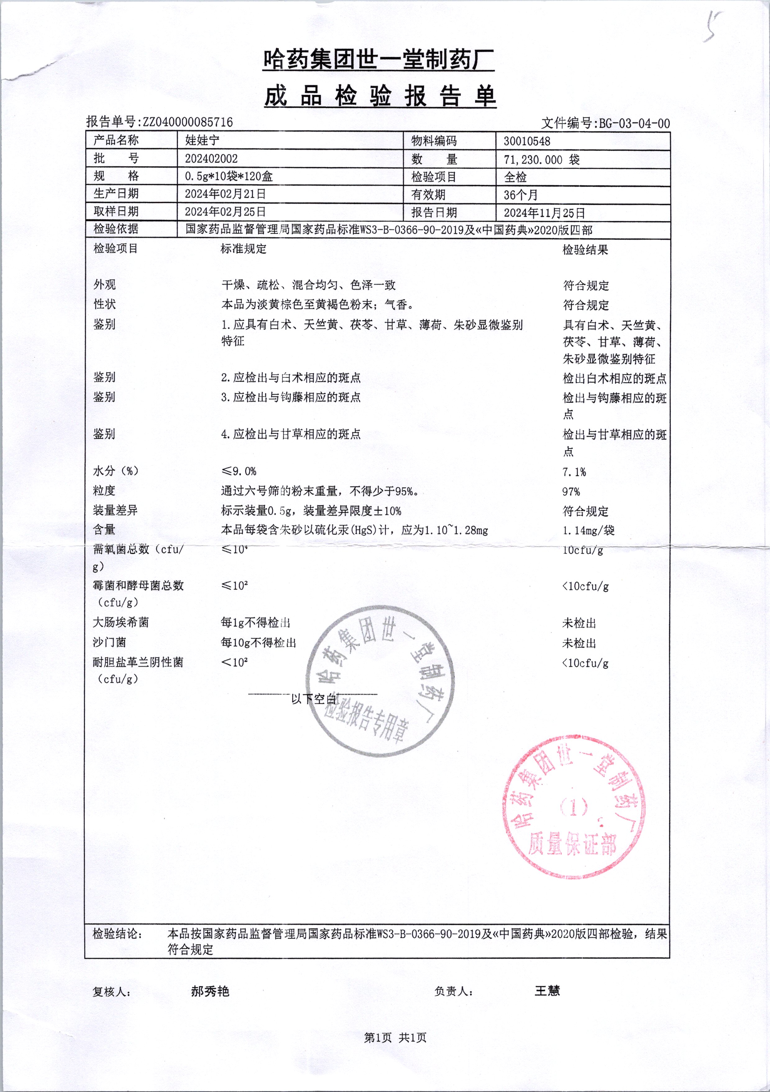 名稱 規(guī)格 批號 藥檢報告