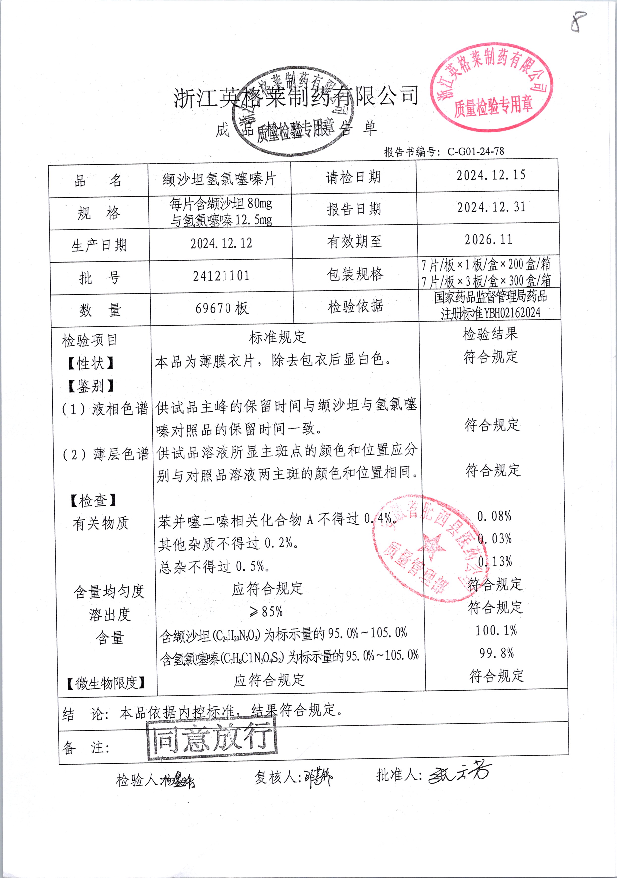 纈沙坦氫氯噻嗪片 80mg 12.5mg*7片*3板 24121101 查看詳情