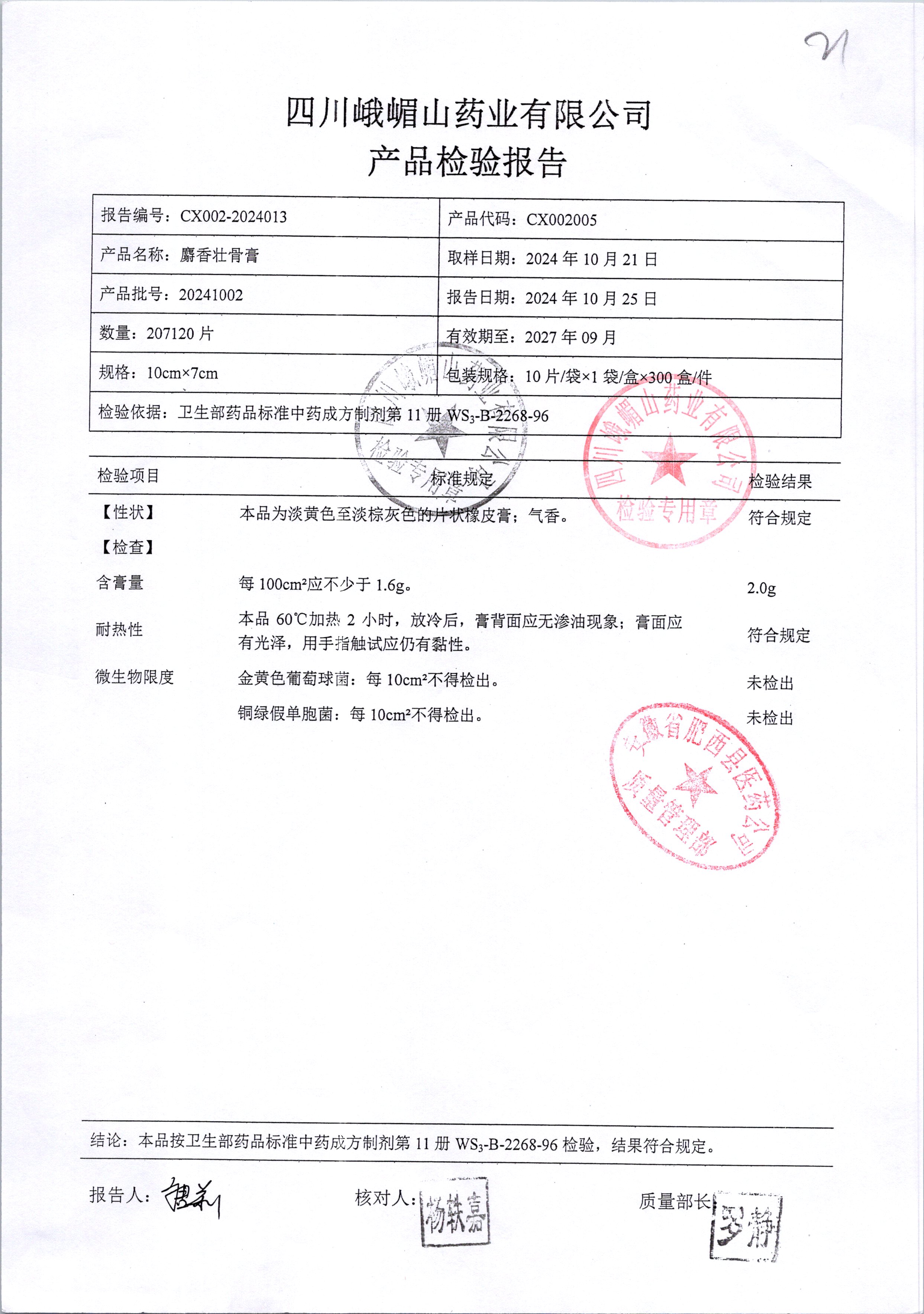 名稱 規(guī)格 批號 藥檢報告