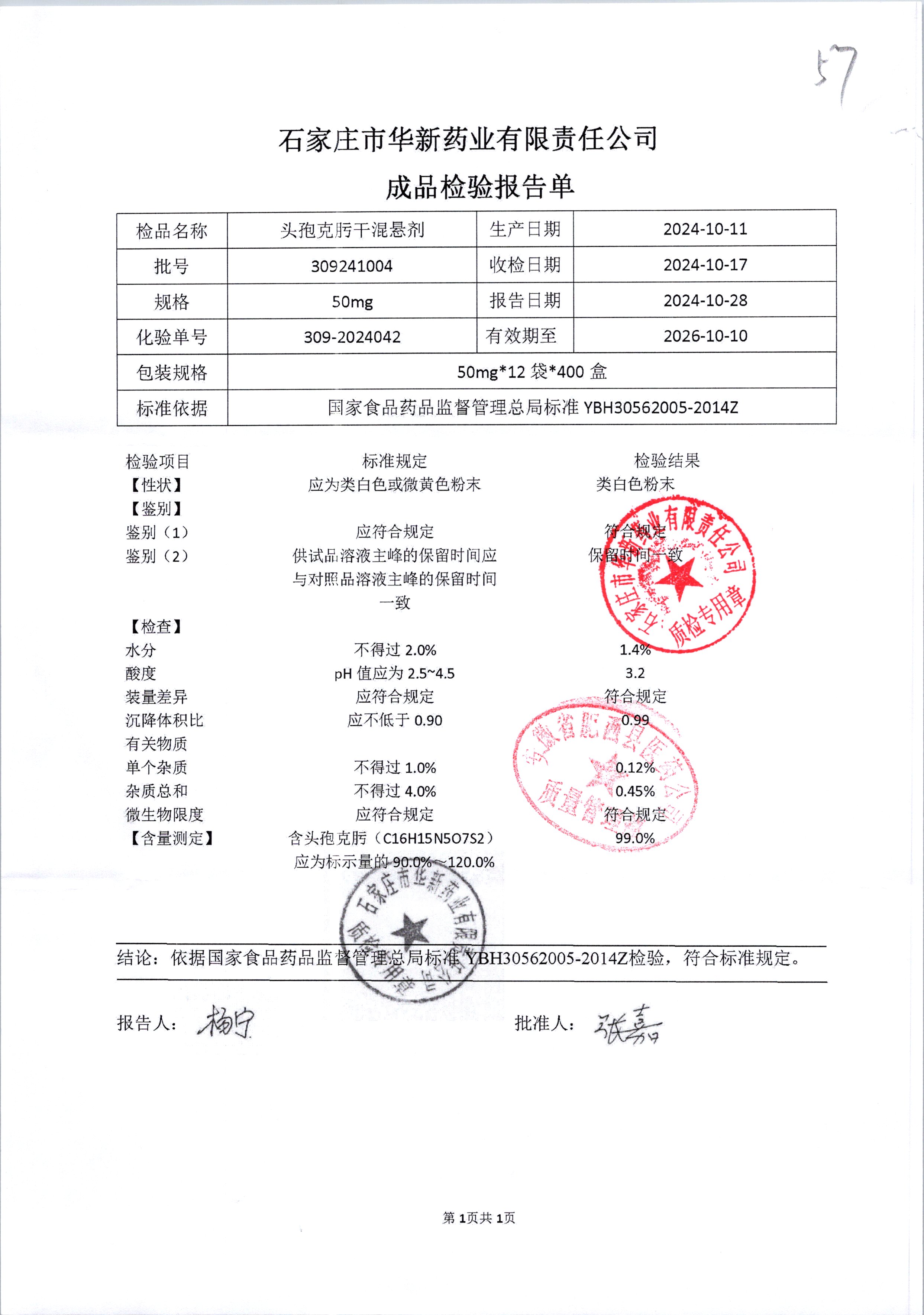 頭孢克肟干混懸劑 50mg*12袋 309241004 查看詳情