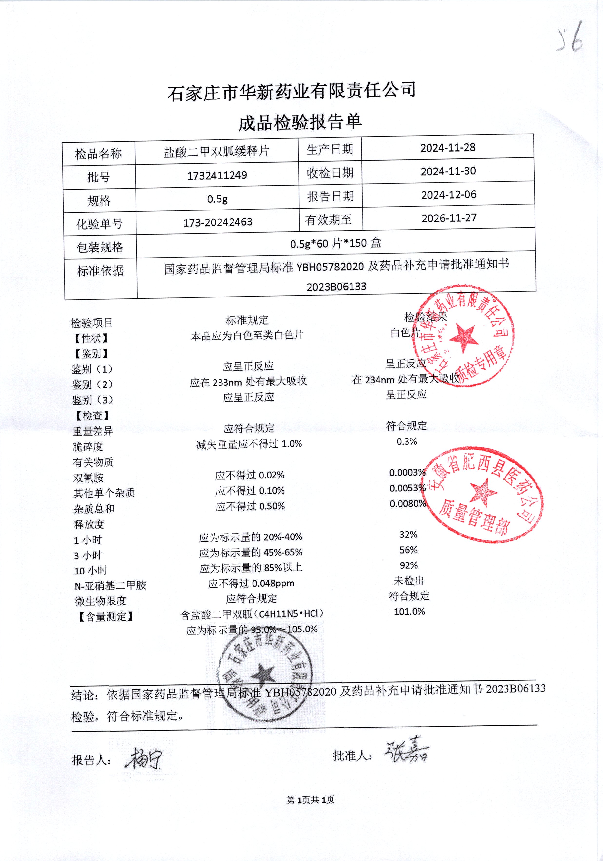 | 鹽酸二甲雙胍緩釋片 | 0.5g*60片 | 1732411211 | 查看詳情 |