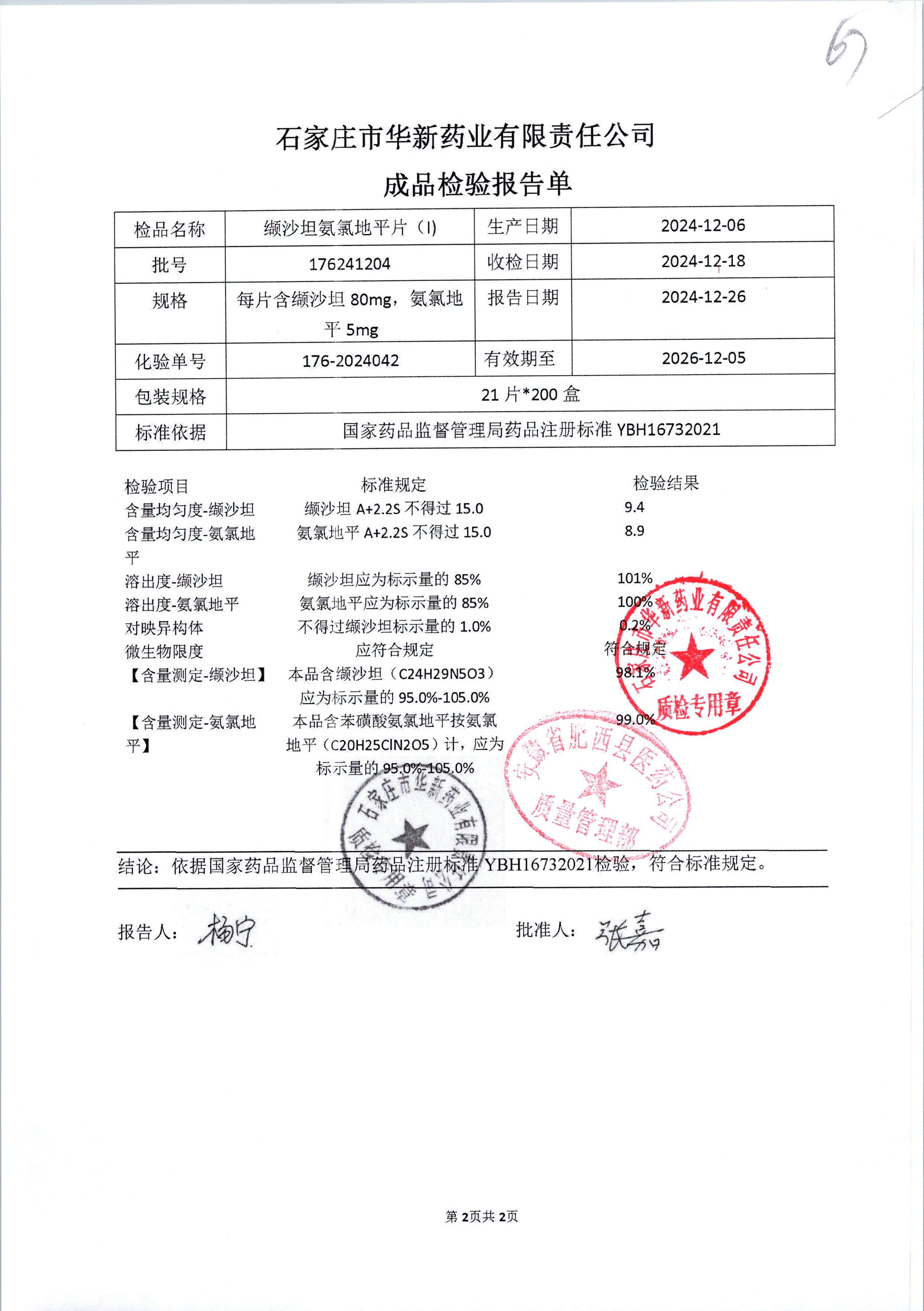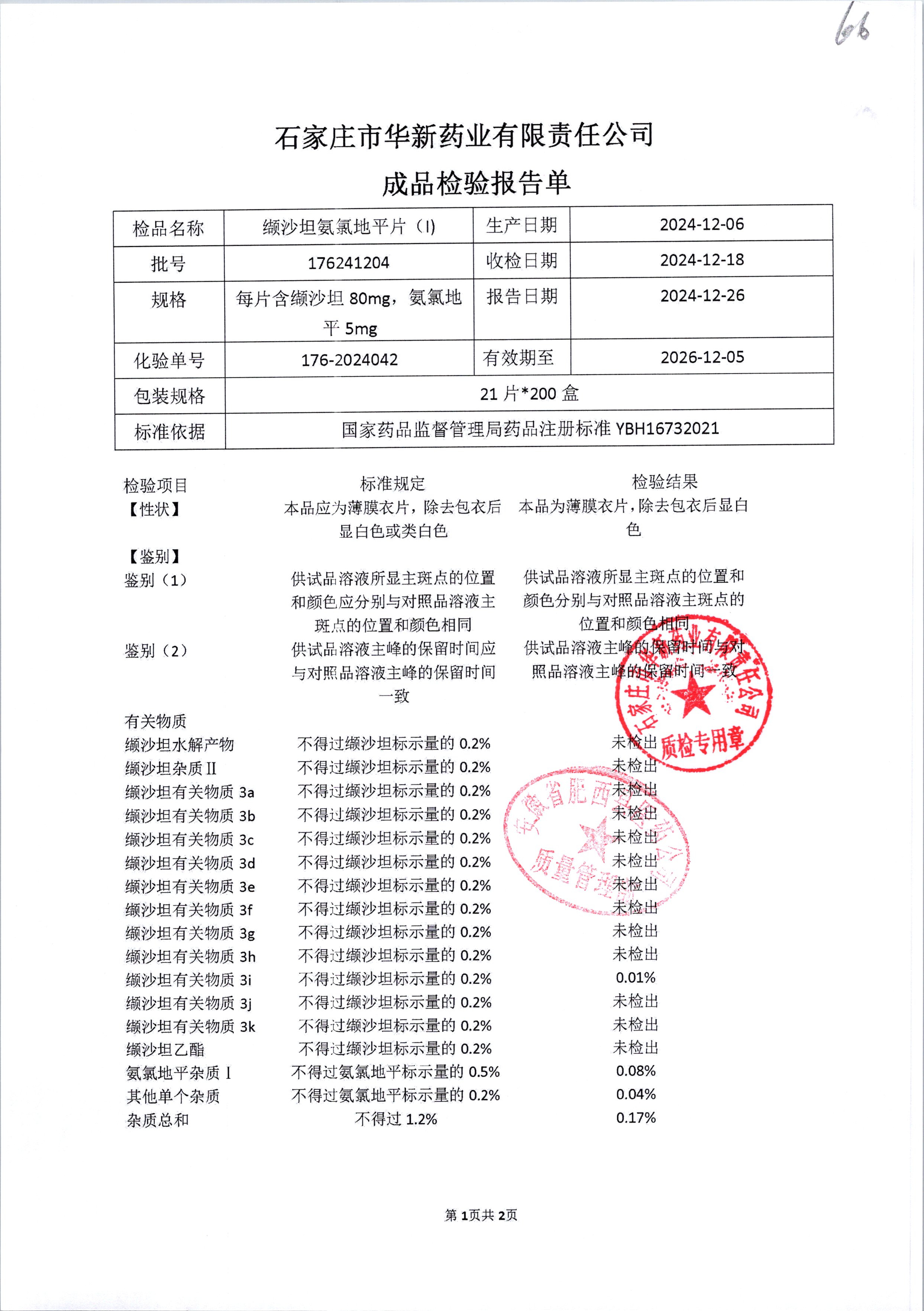 | 纈沙坦氨氯地平片 | 80mg*5mg*21片 | 176241206/2 | 查看詳情 |