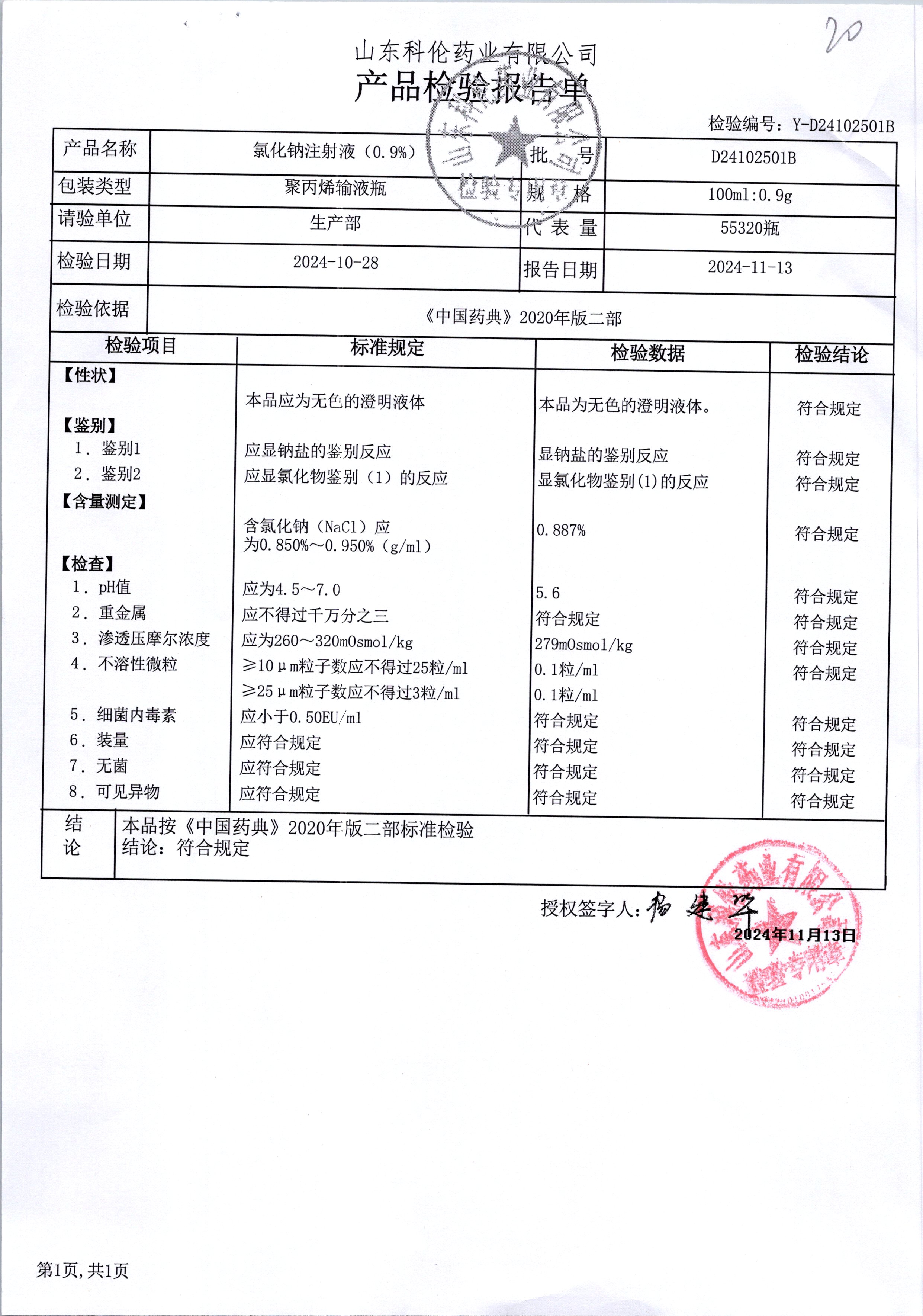 氯化鈉注射液 0.9% 100ml:0.9g D24102501B 查看詳情