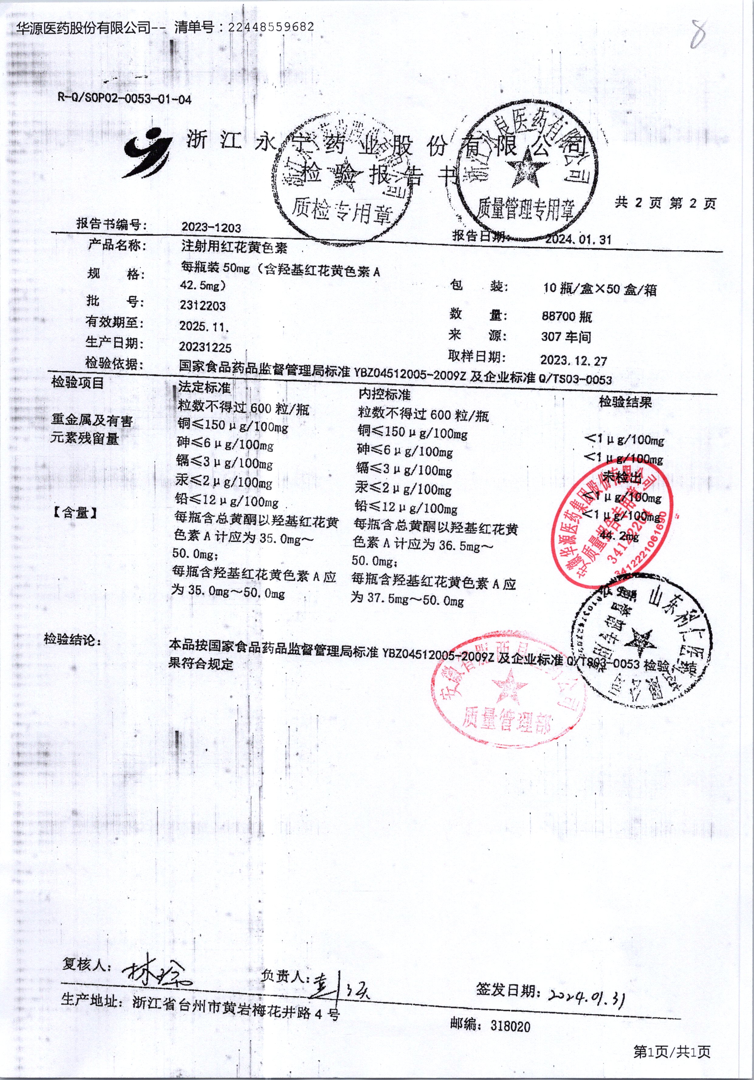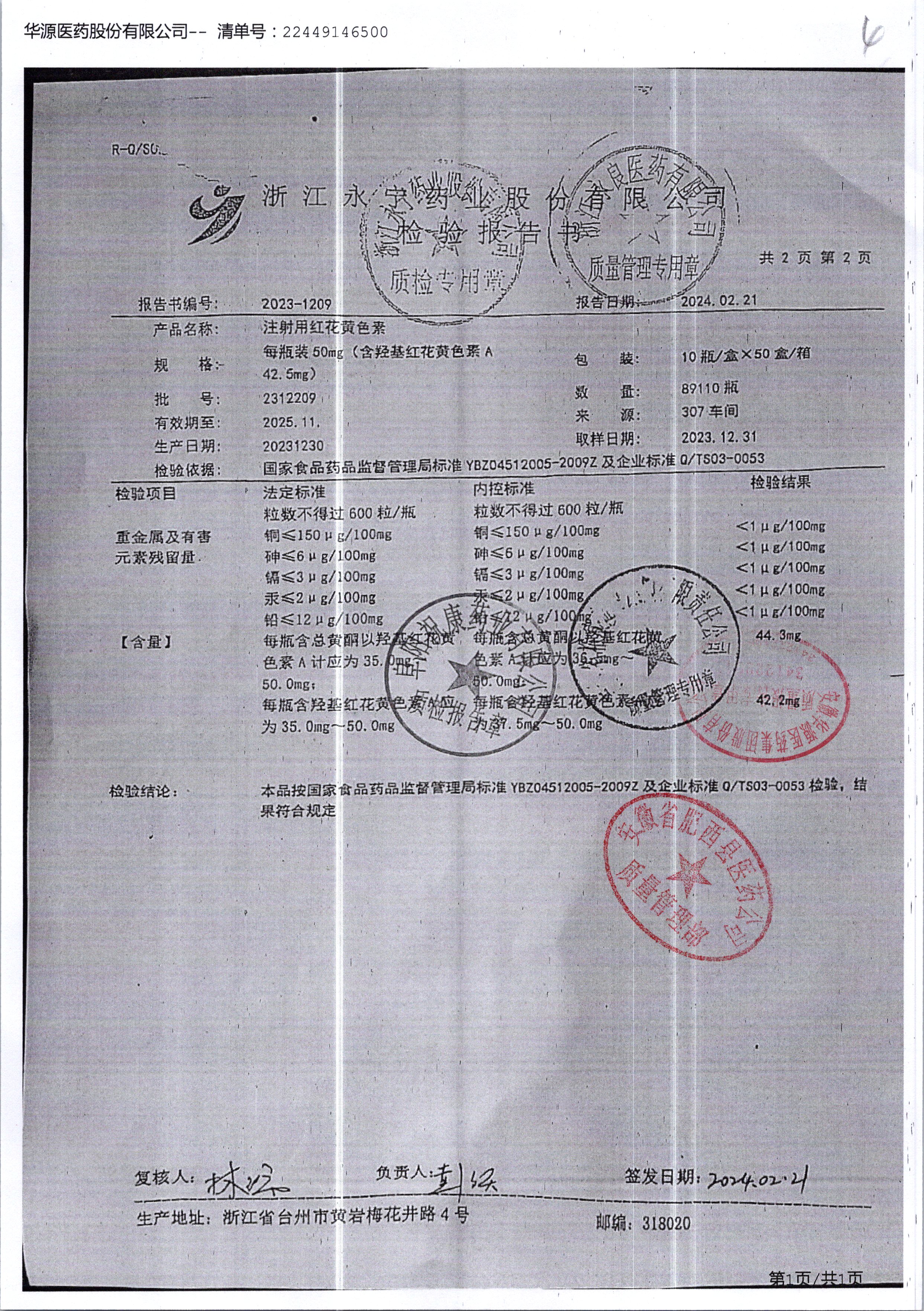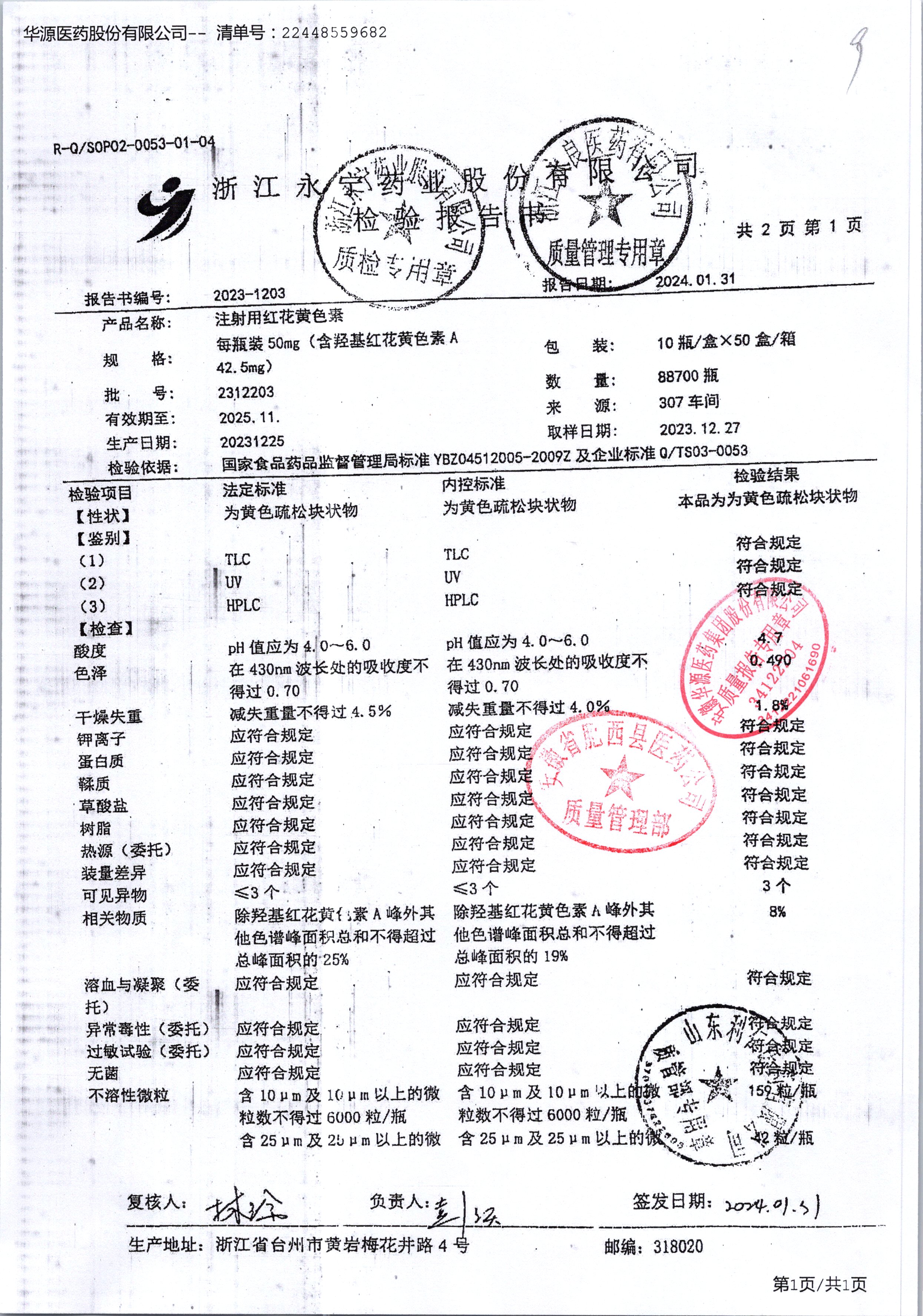 | 注射用紅花黃色素 | 50mg*10瓶 | 2312203/2 | 查看詳情 |