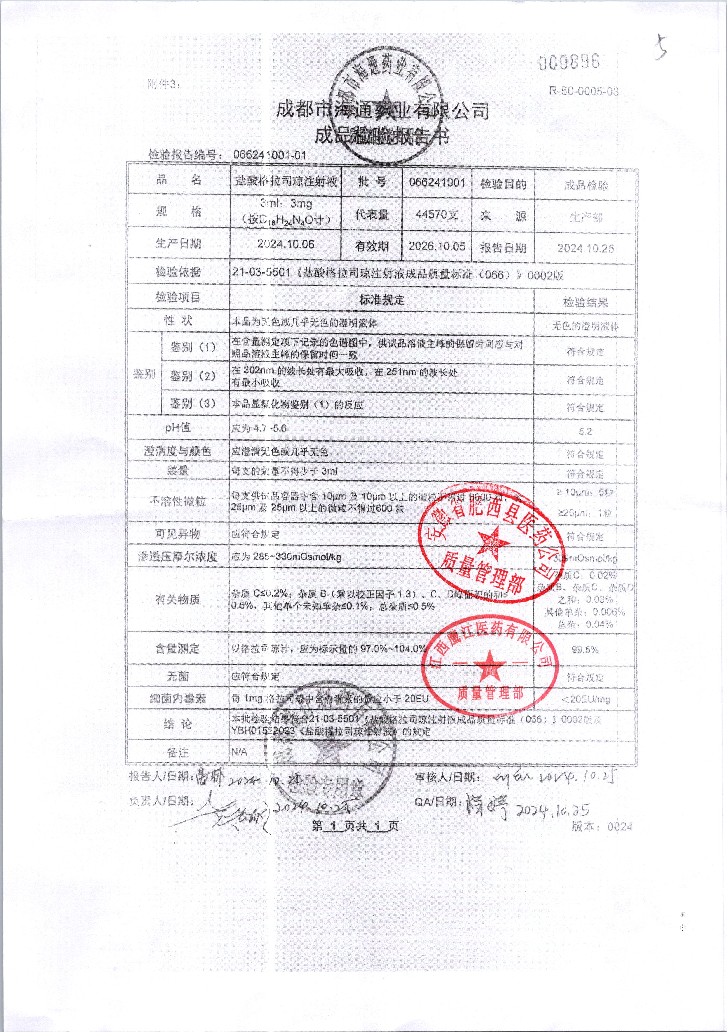 鹽酸格拉司瓊注射液 3ml:3mg 066241001 查看詳情