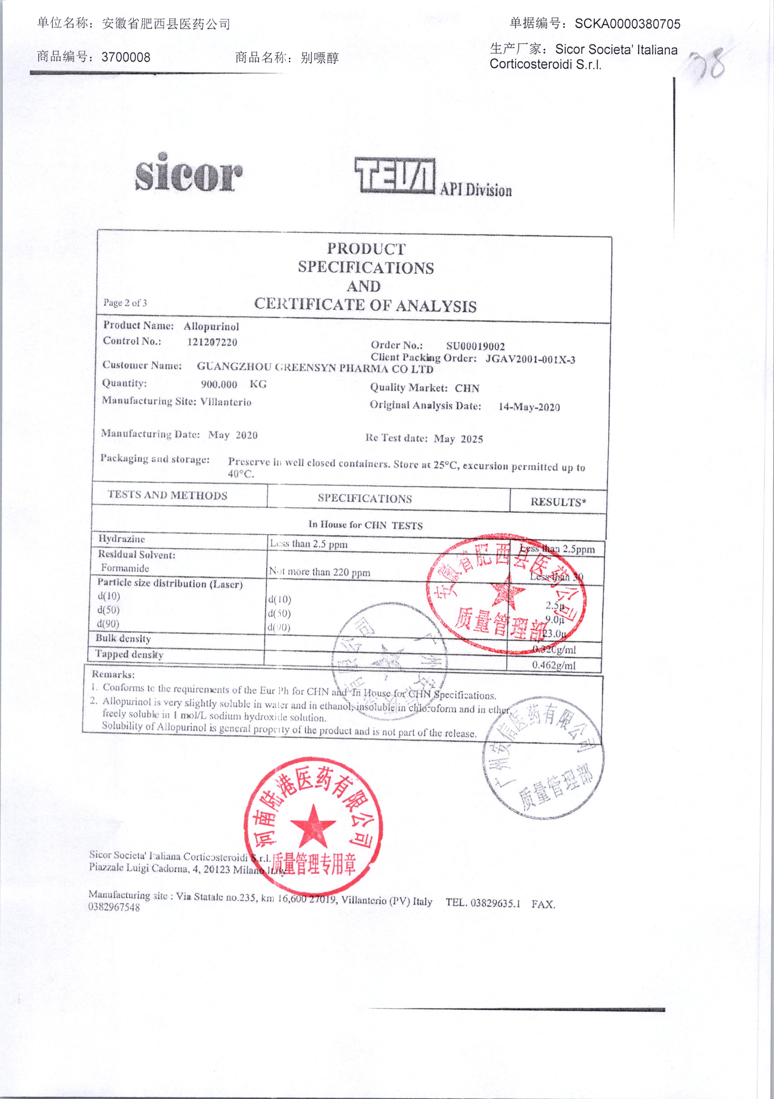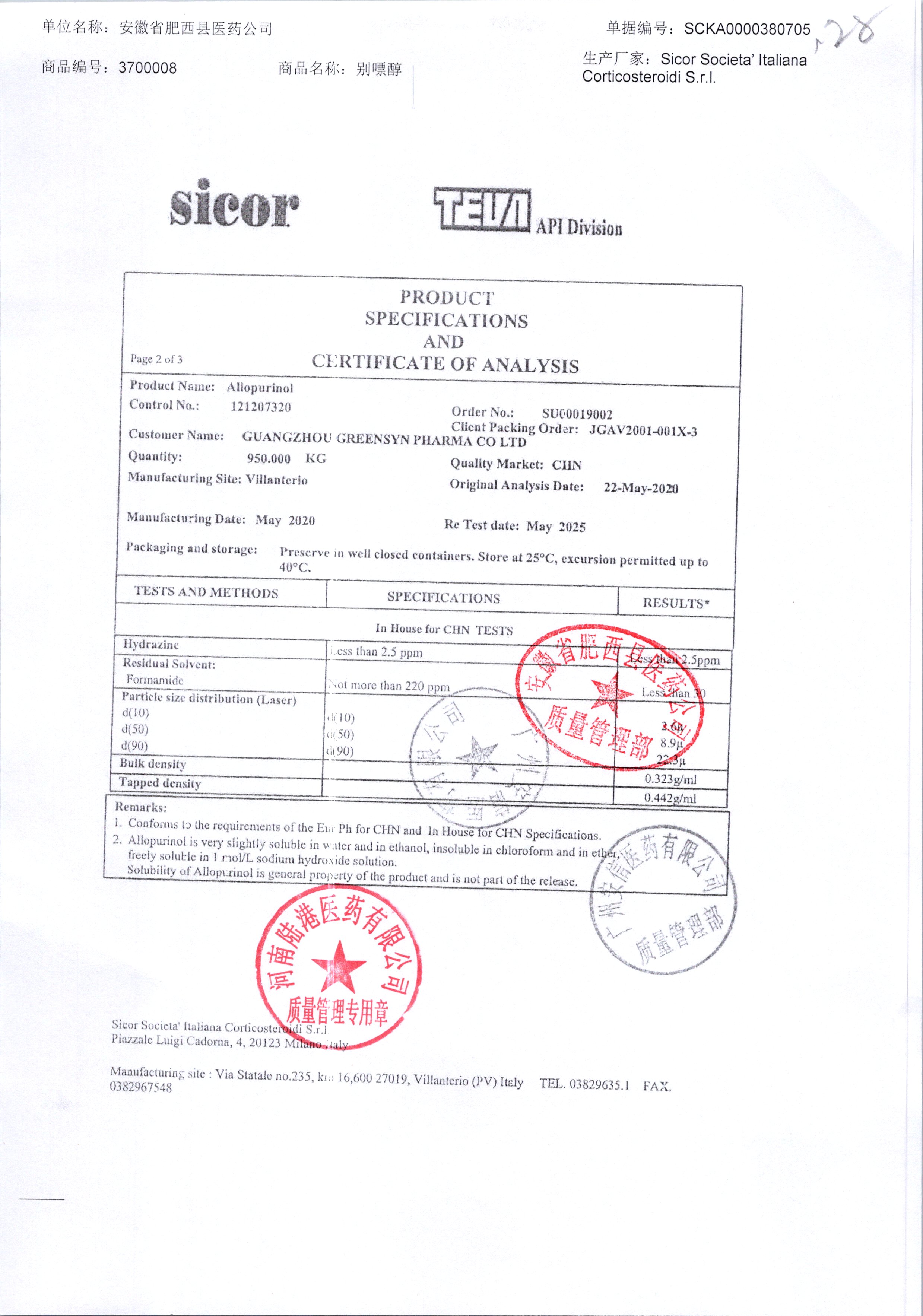 | 別嘌醇 | 25kg | 121207320/6 | 查看詳情 |
