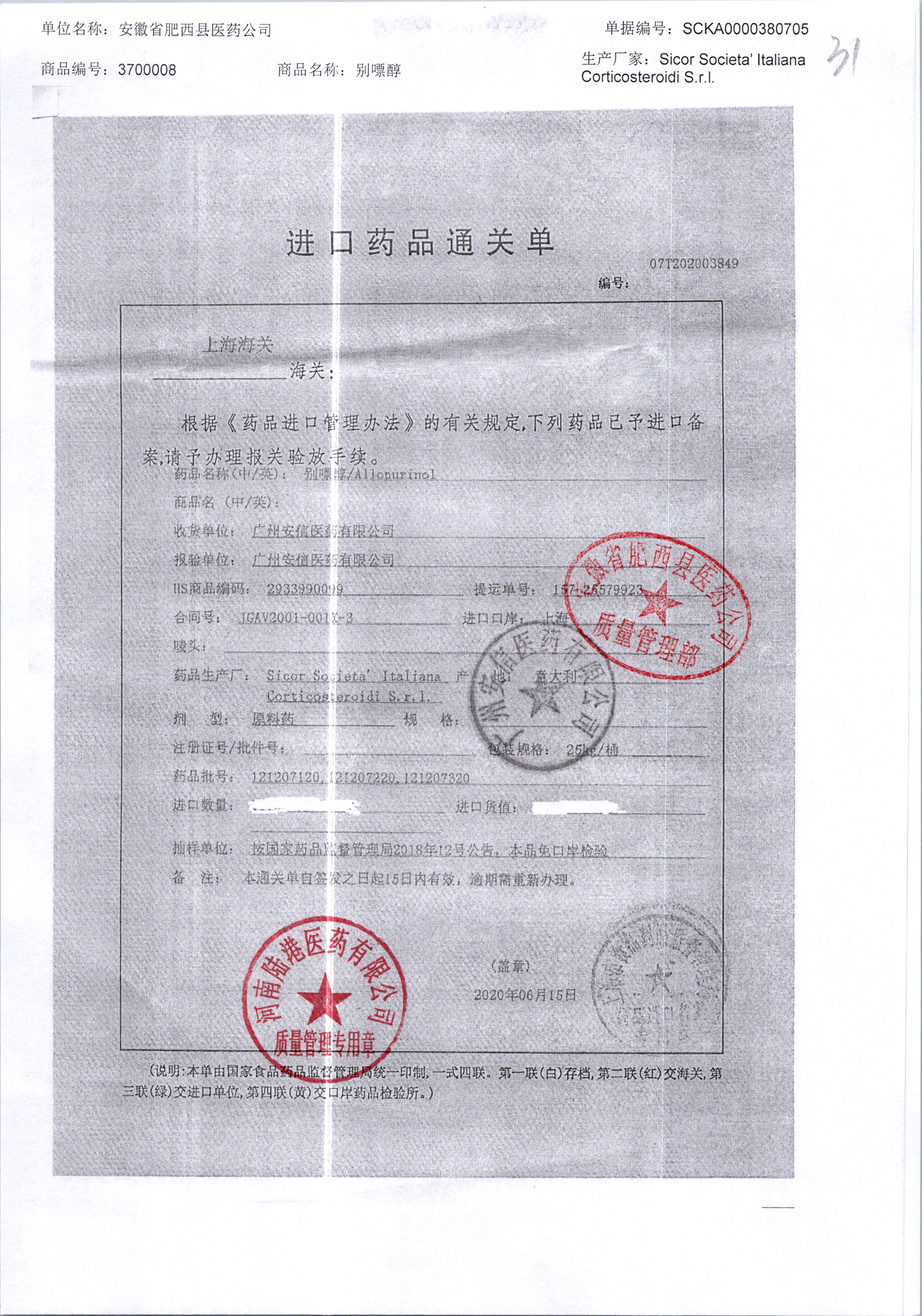 | 別嘌醇 | 25kg | 121207320/1 | 查看詳情 |