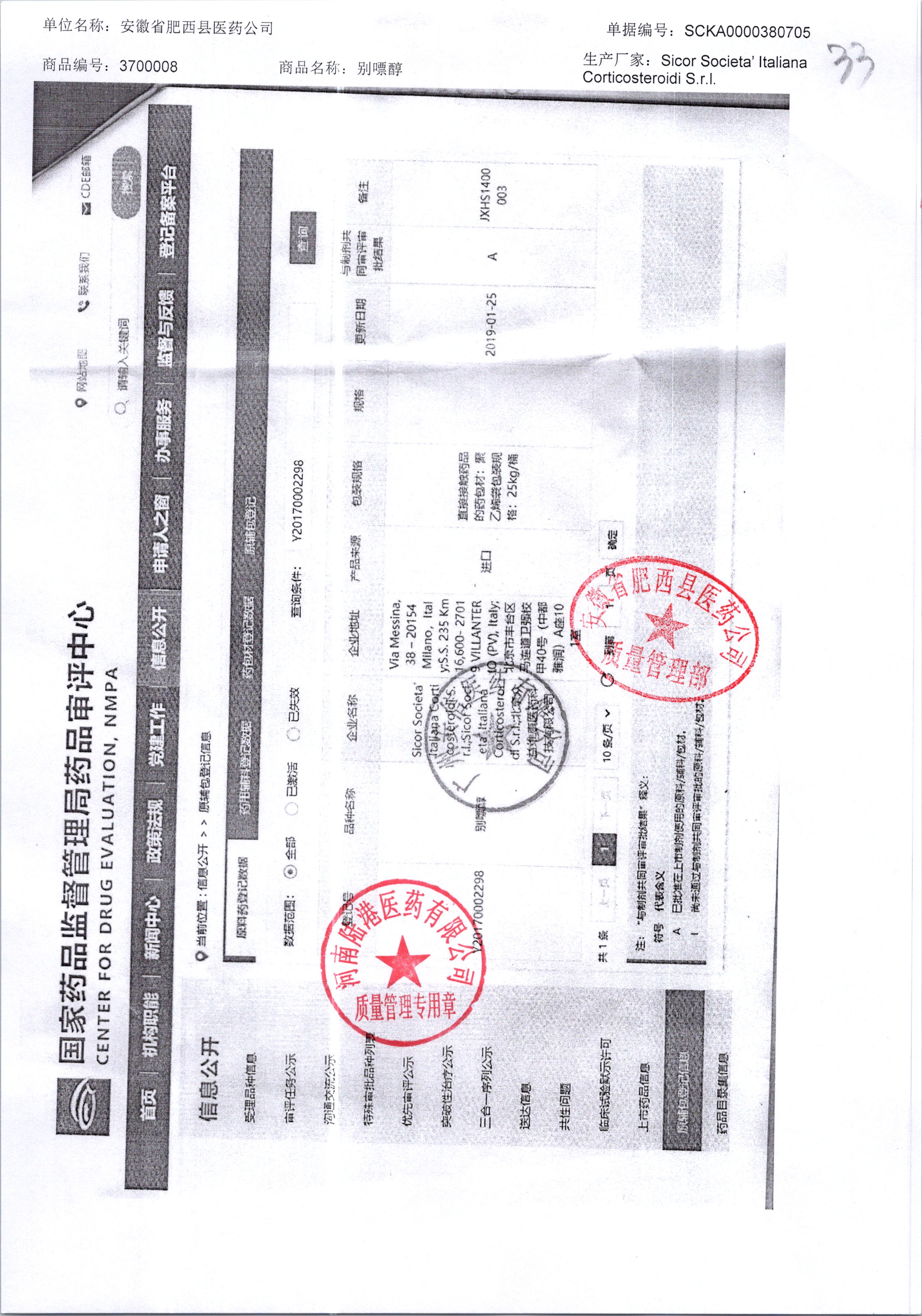| 名稱 | 規(guī)格 | 批號(hào) | 藥檢報(bào)告 |