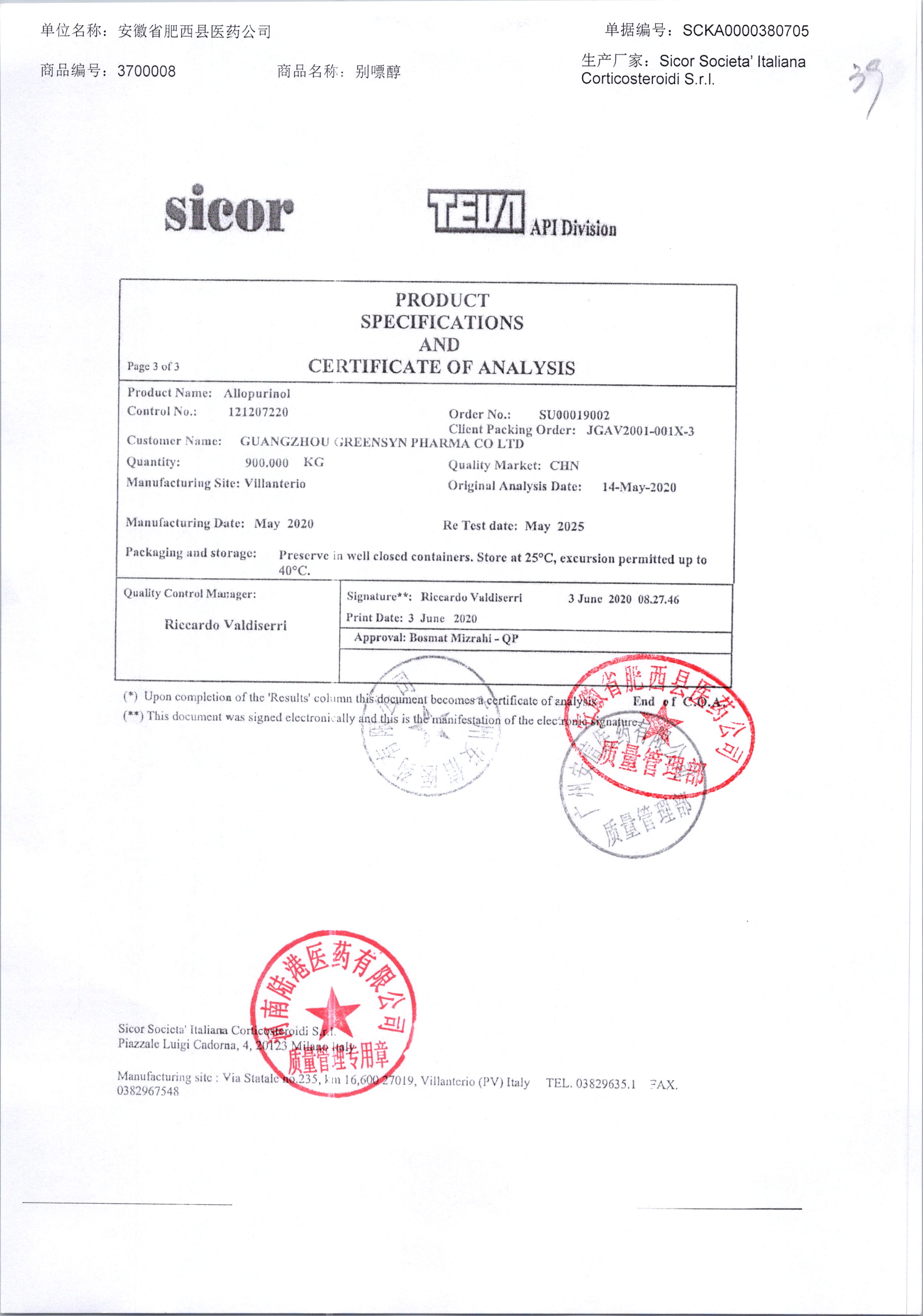 | 別嘌醇 | 25kg | 121207120/6 | 查看詳情 |