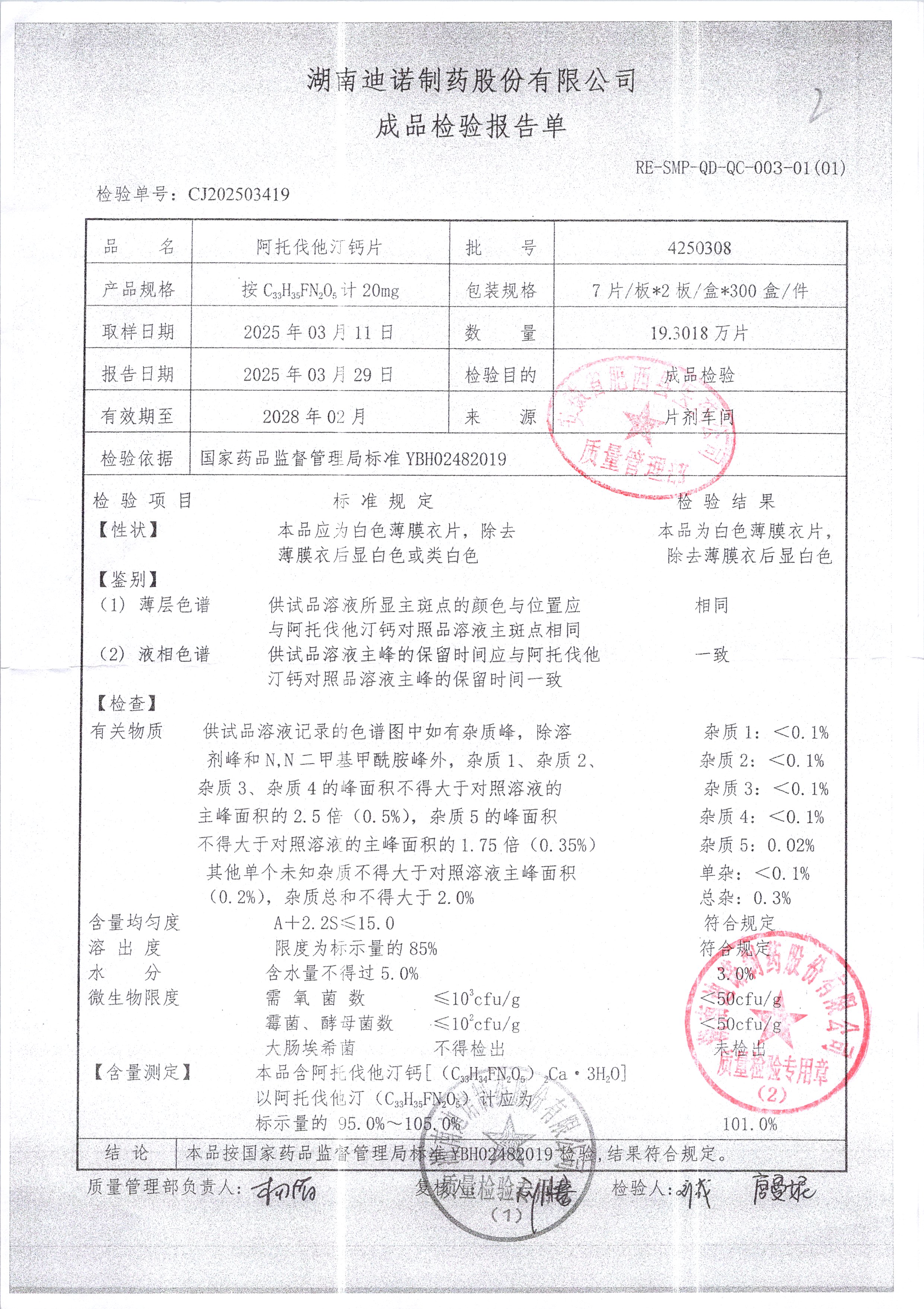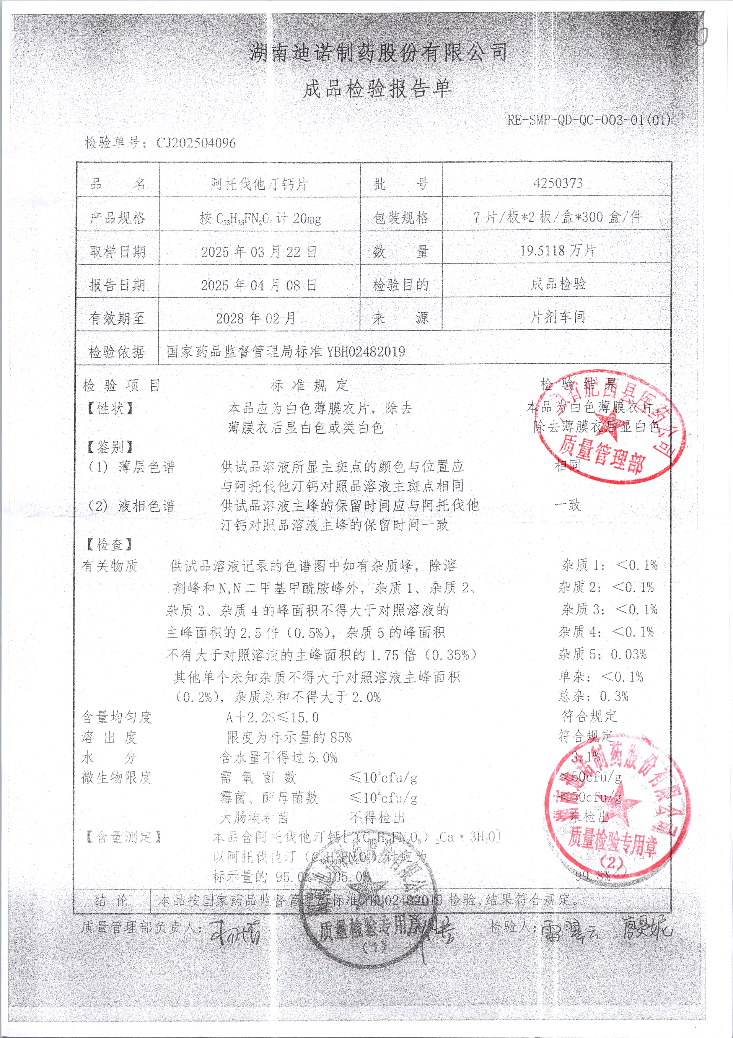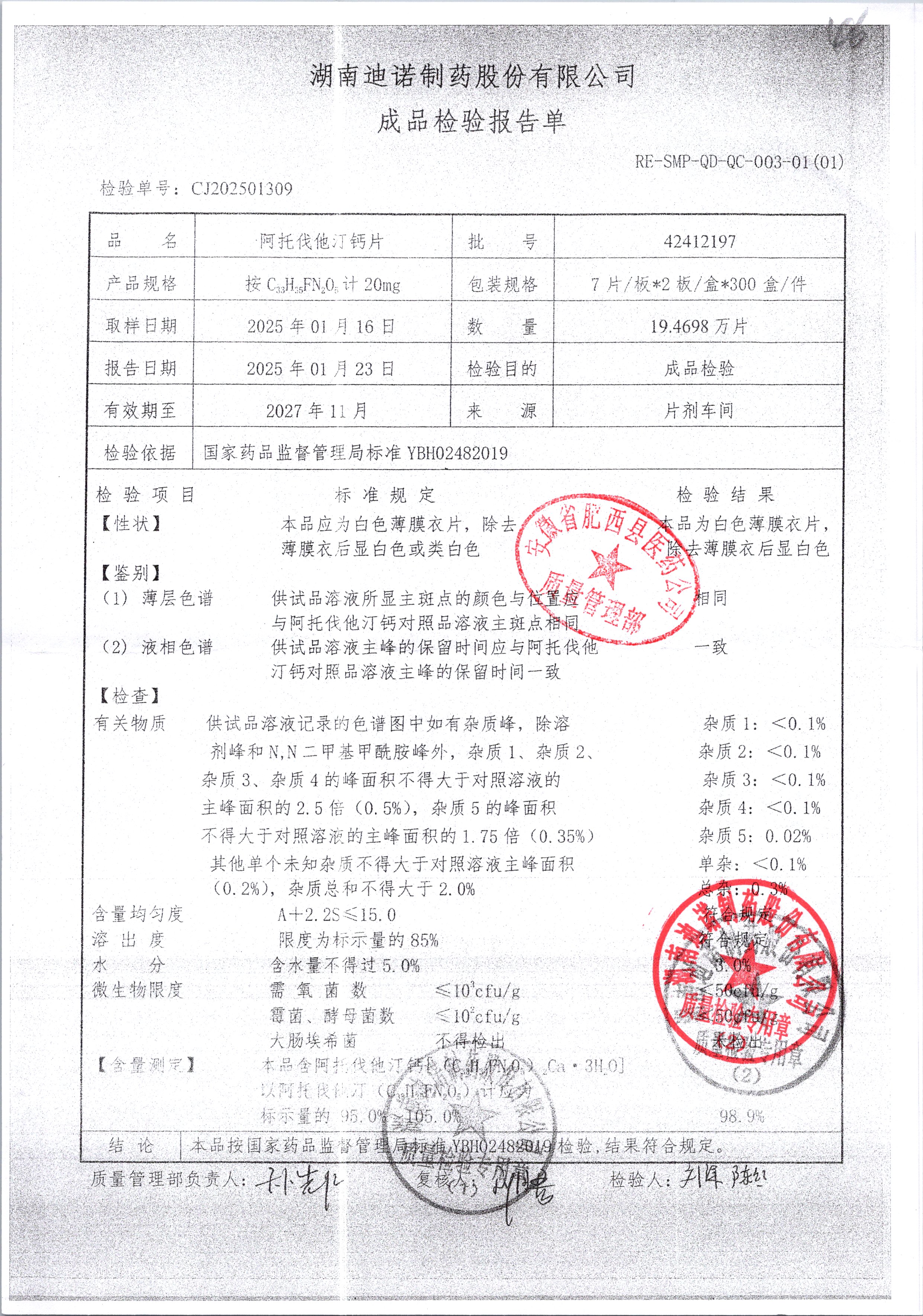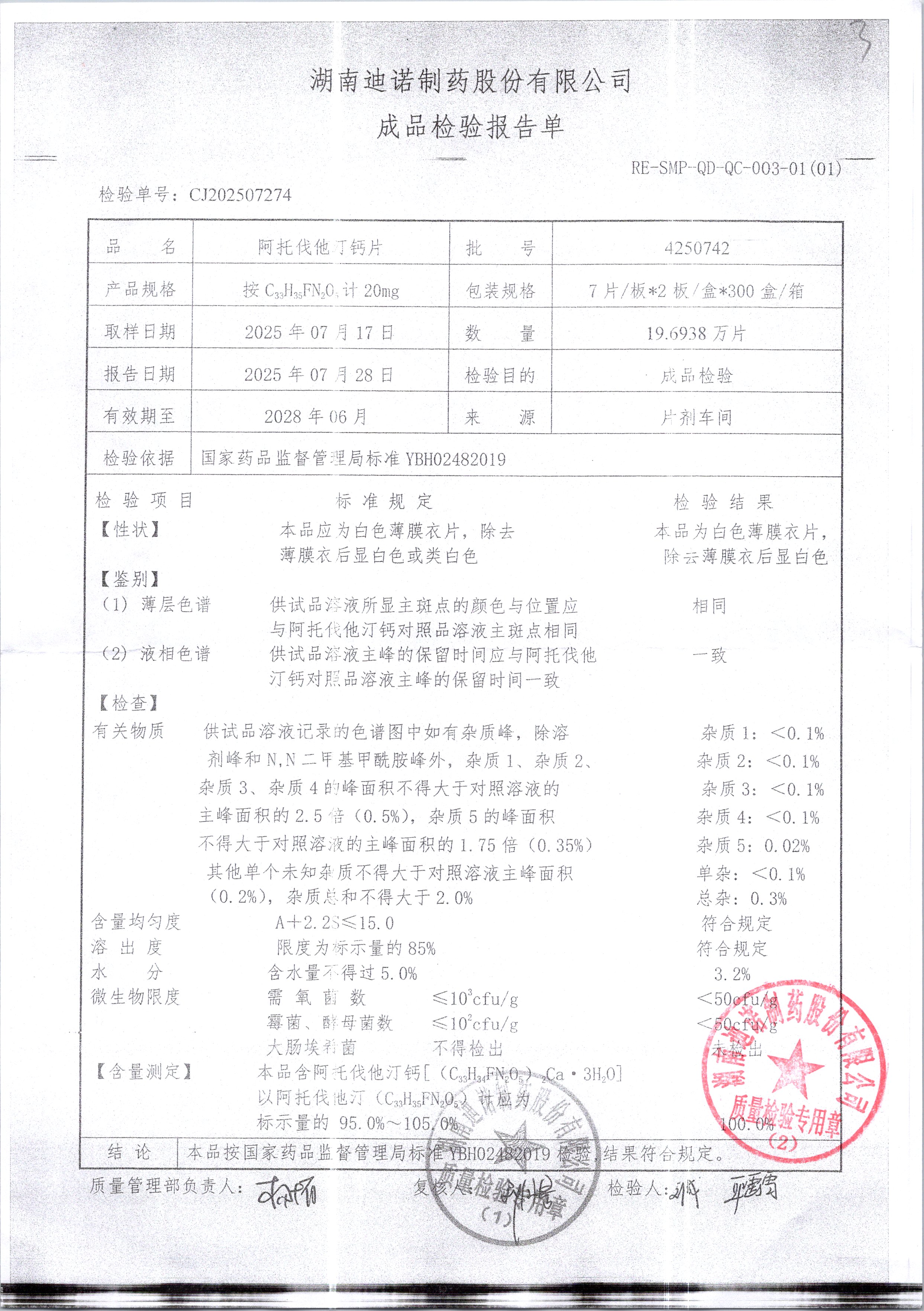 | 阿托伐他汀鈣片 | 20mg*14粒 | 4250742 | 查看詳情 |