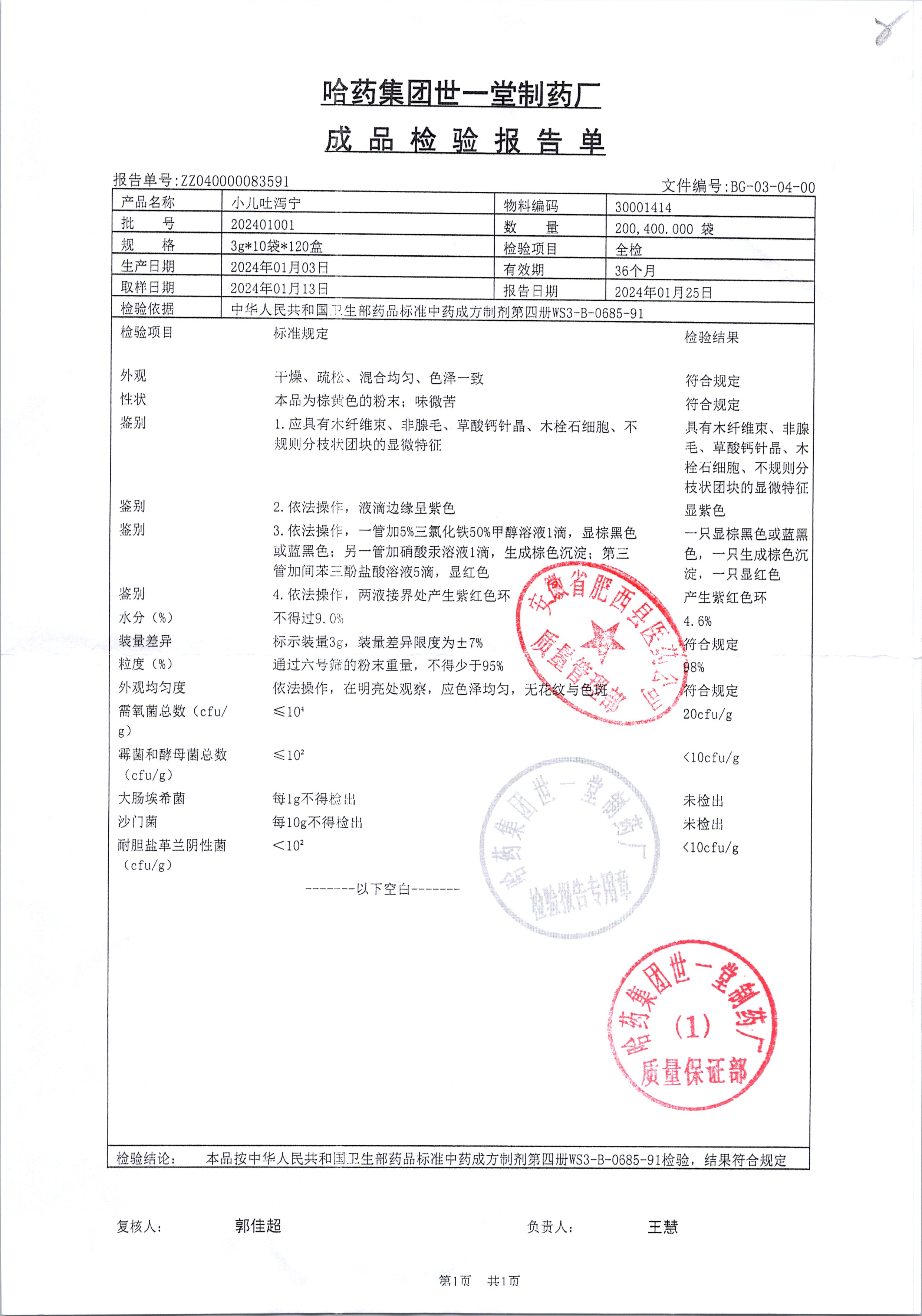 小兒吐瀉寧 3g*10袋 202401001 查看詳情