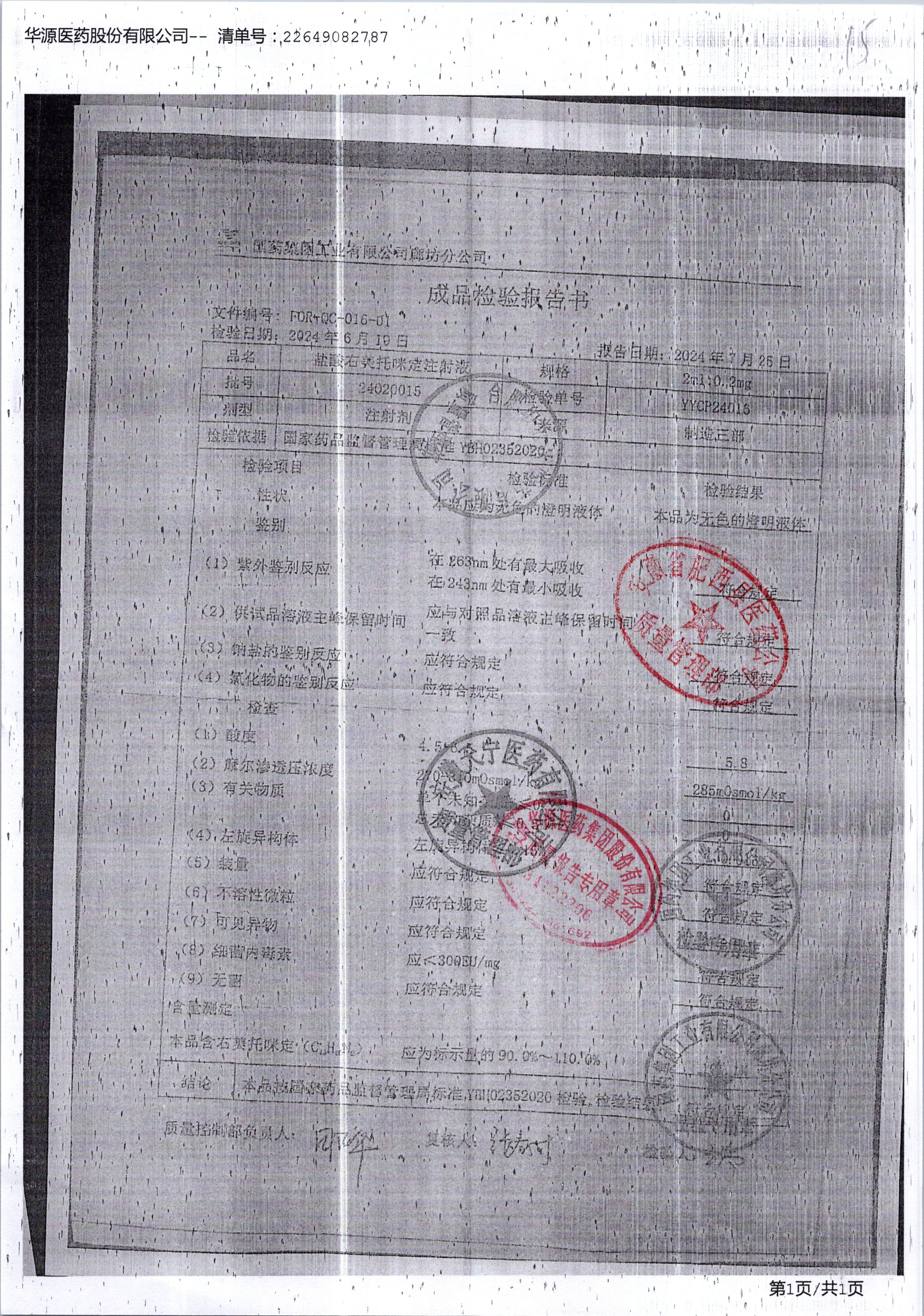 名稱 規(guī)格 批號(hào) 藥檢報(bào)告