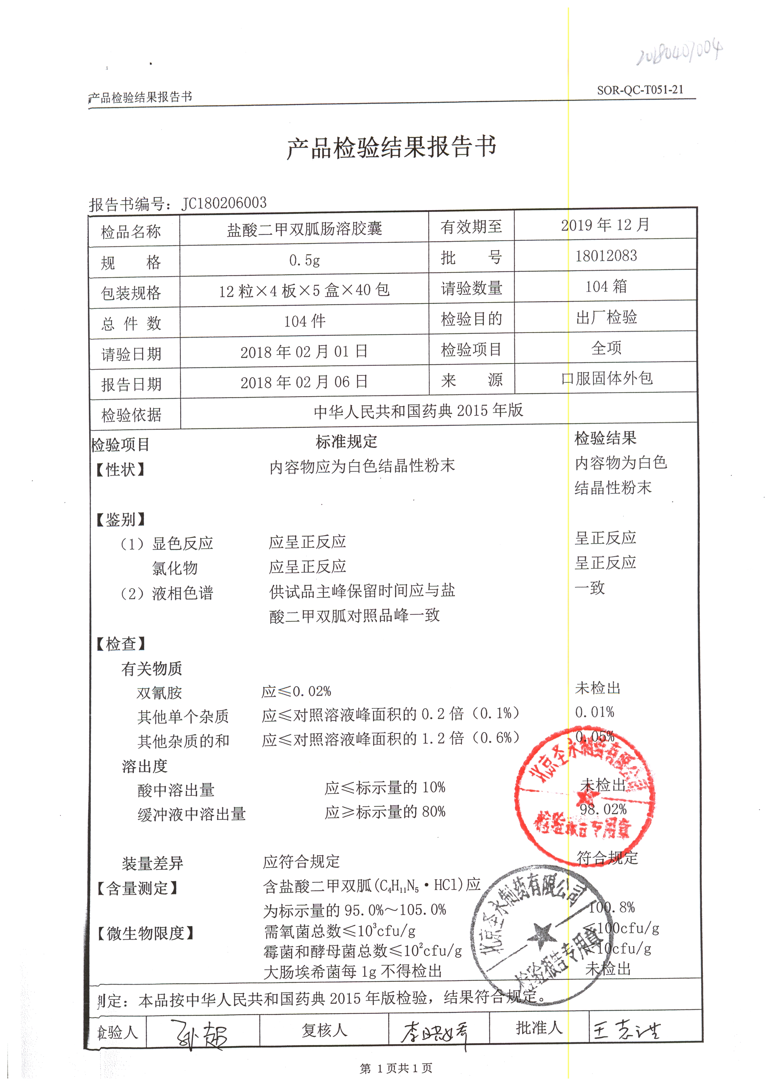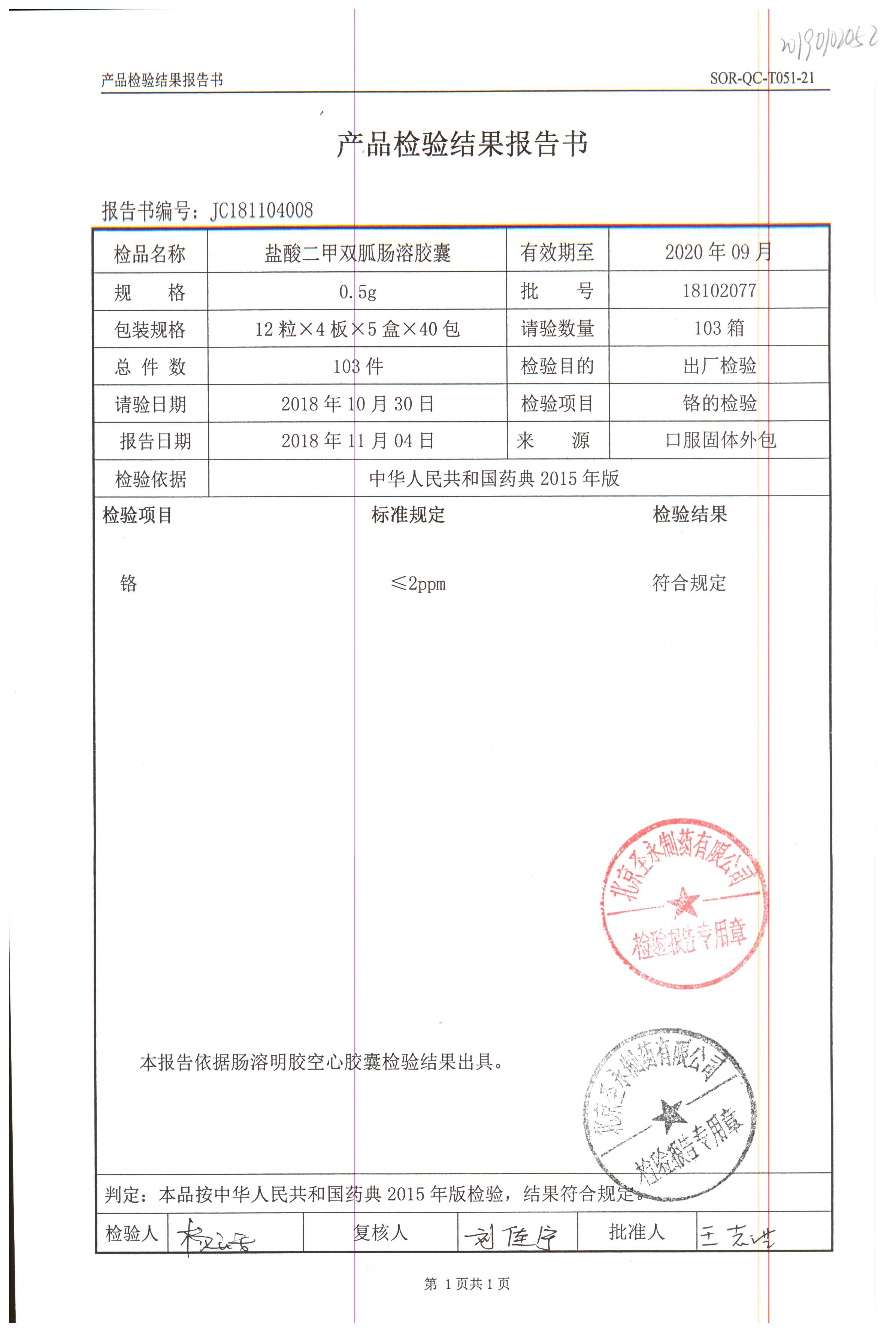 鹽酸二甲雙胍腸溶膠囊 | 0.5g*48粒 | 18092048(2/2) | 查看詳情 |