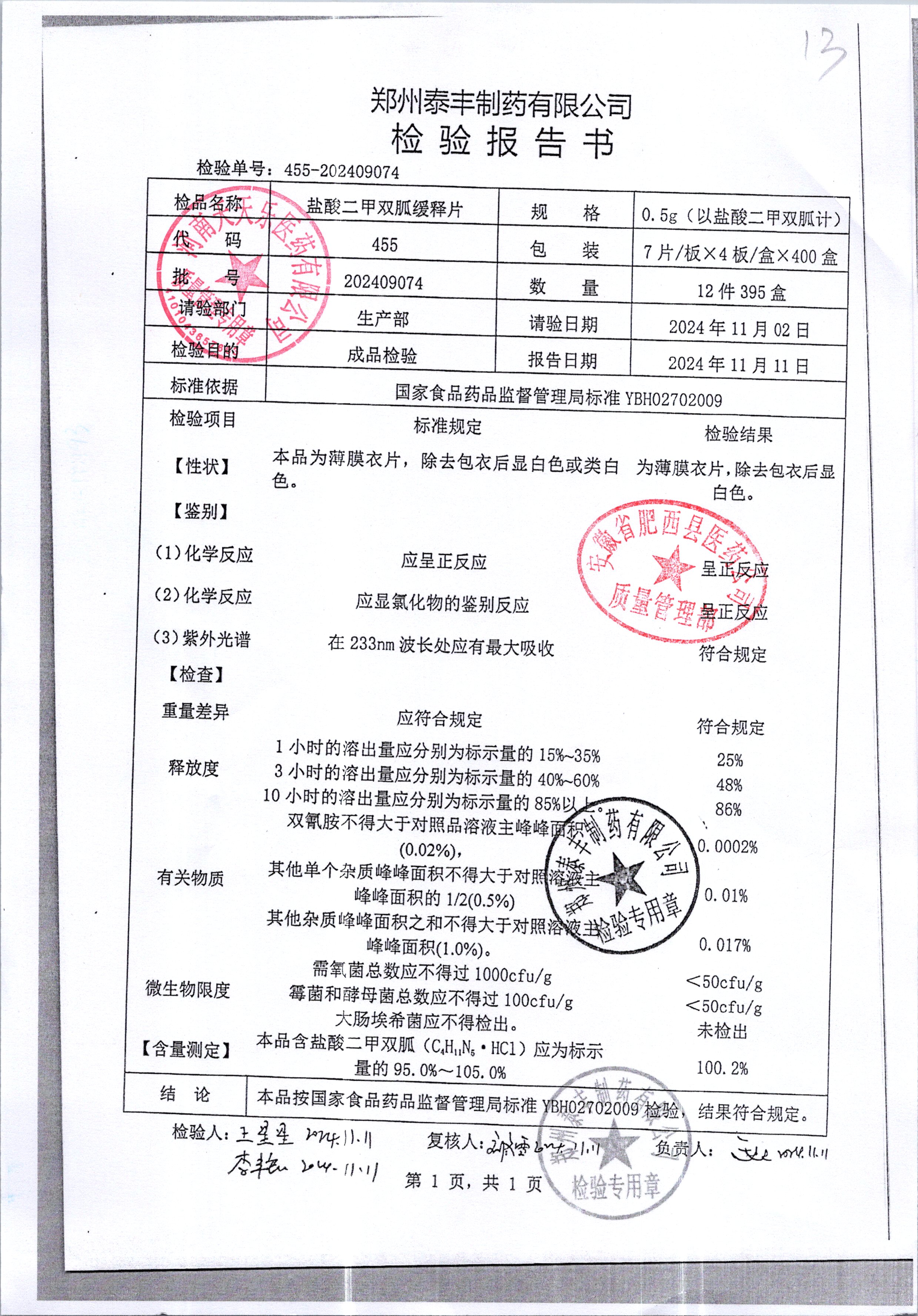 鹽酸二甲雙胍緩釋片 0.5g*28s 202409074 查看詳情