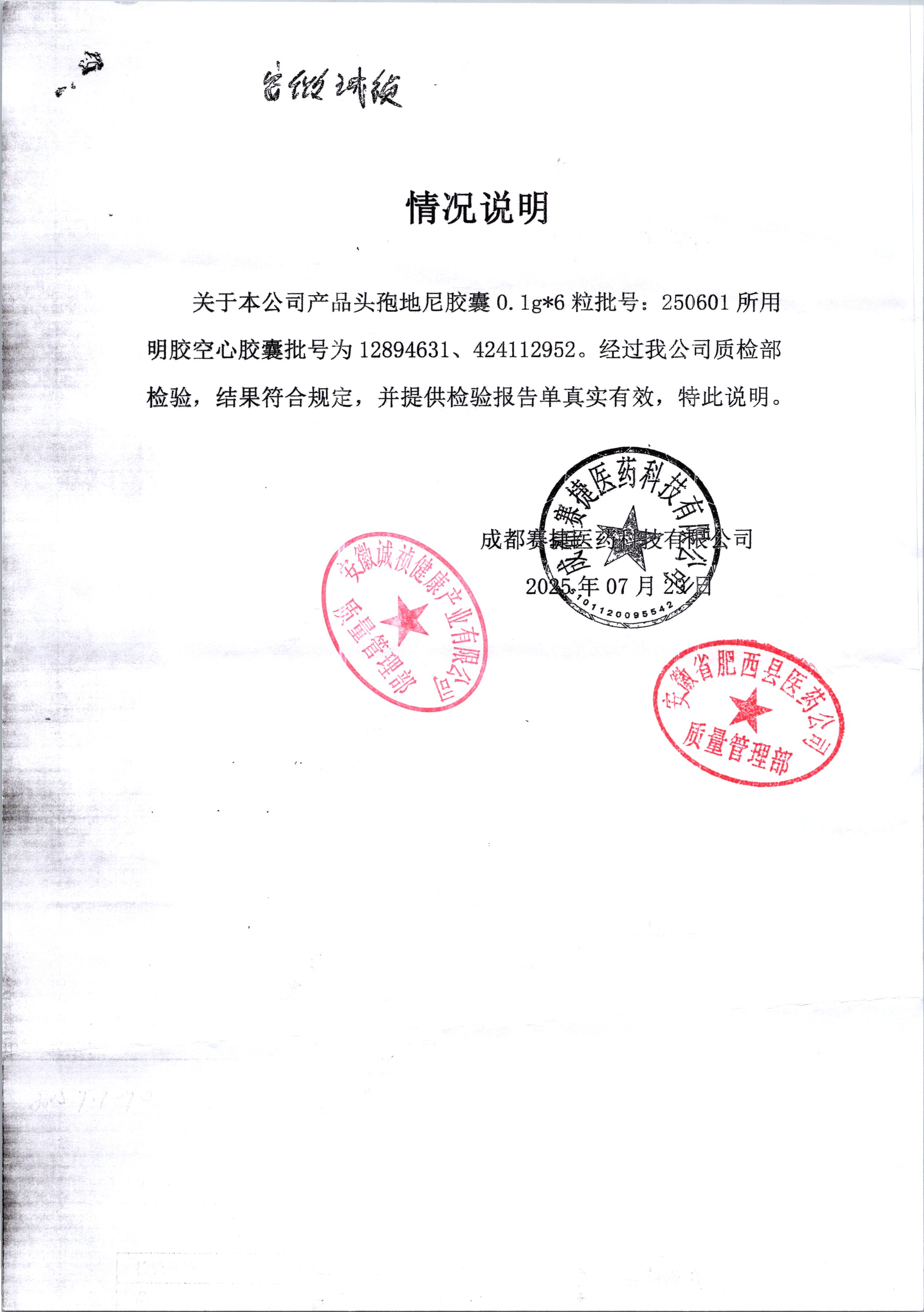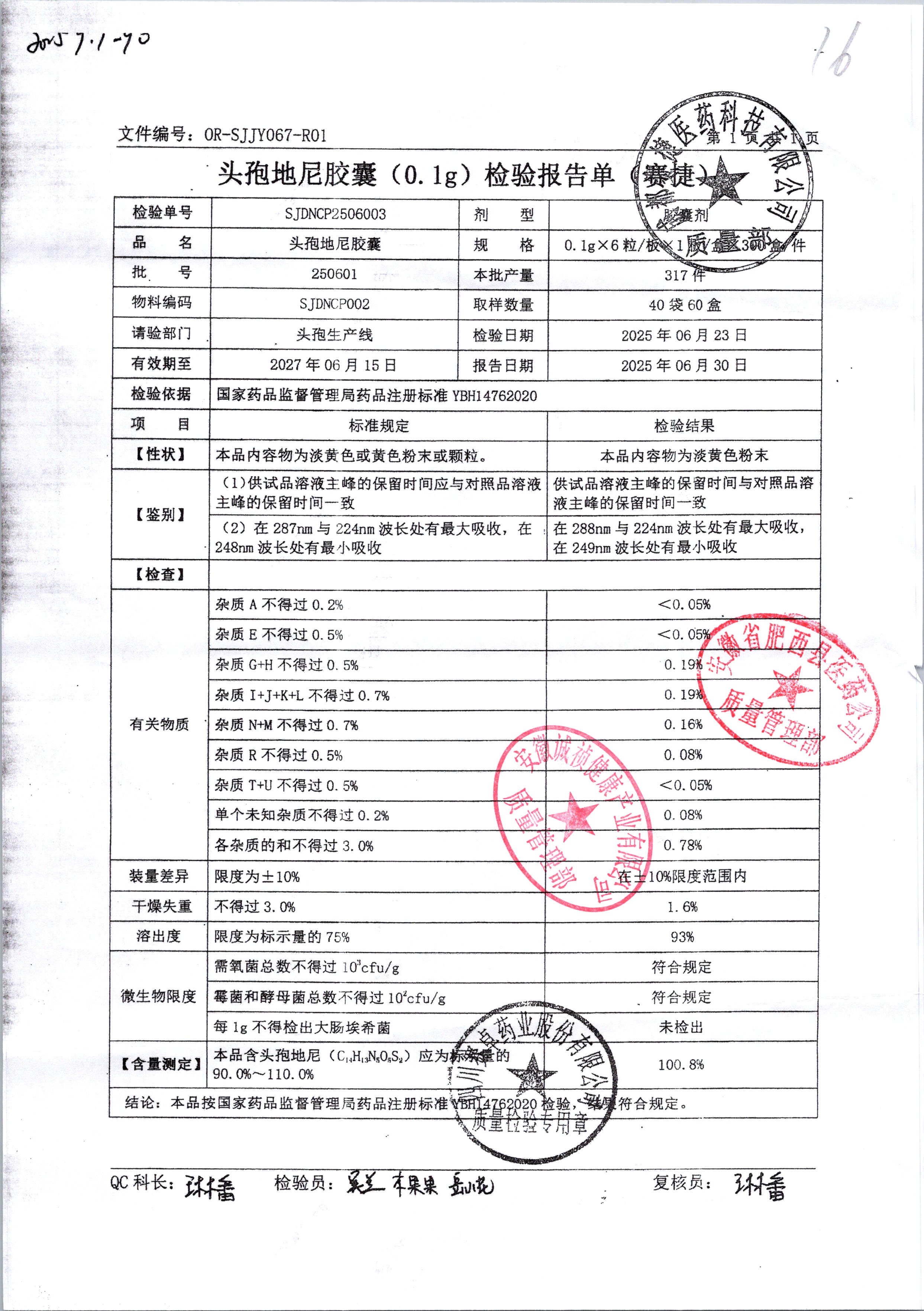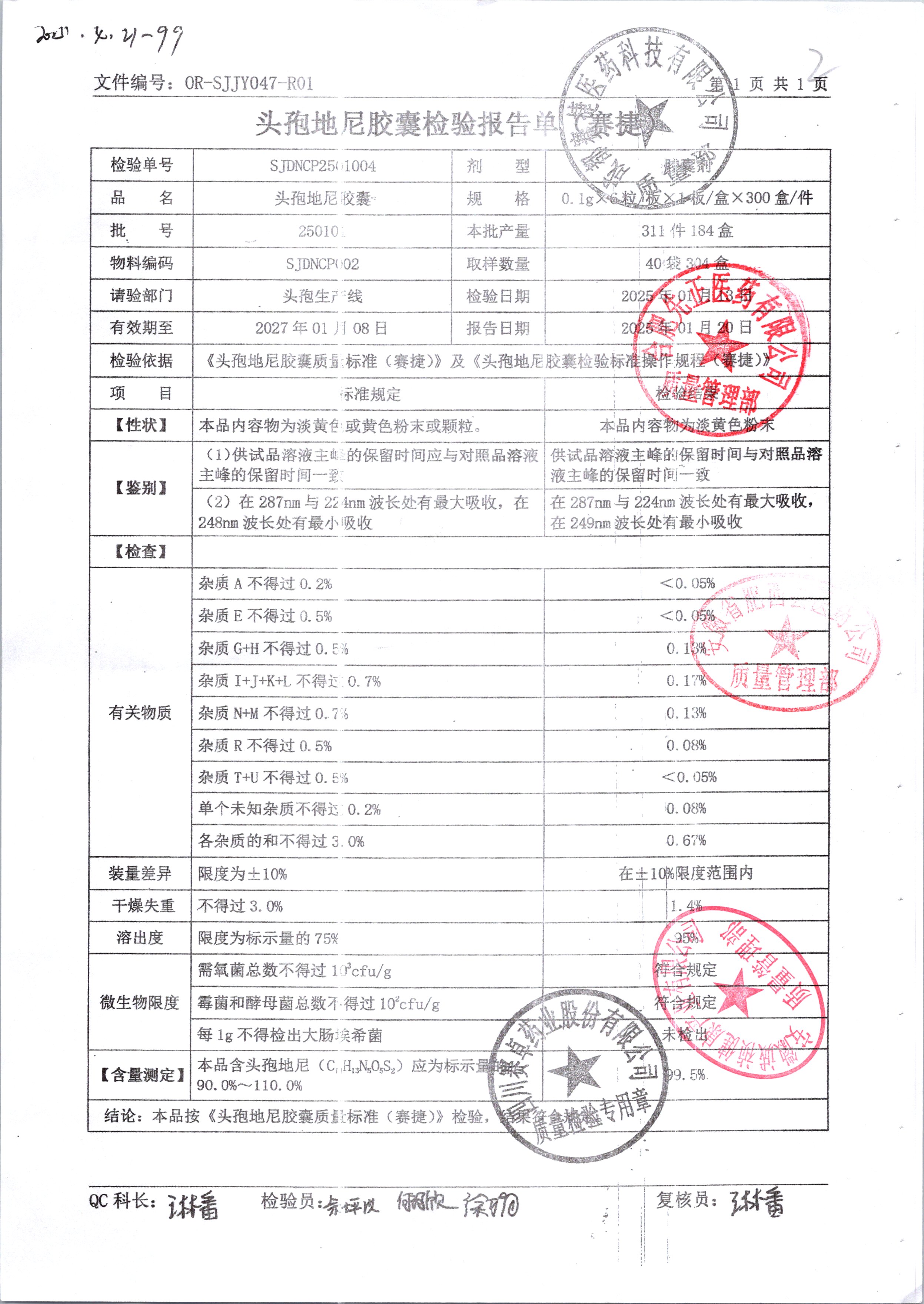 | 頭孢地尼膠囊 | 0.1g*6粒 | 250601/5 | 查看詳情 |