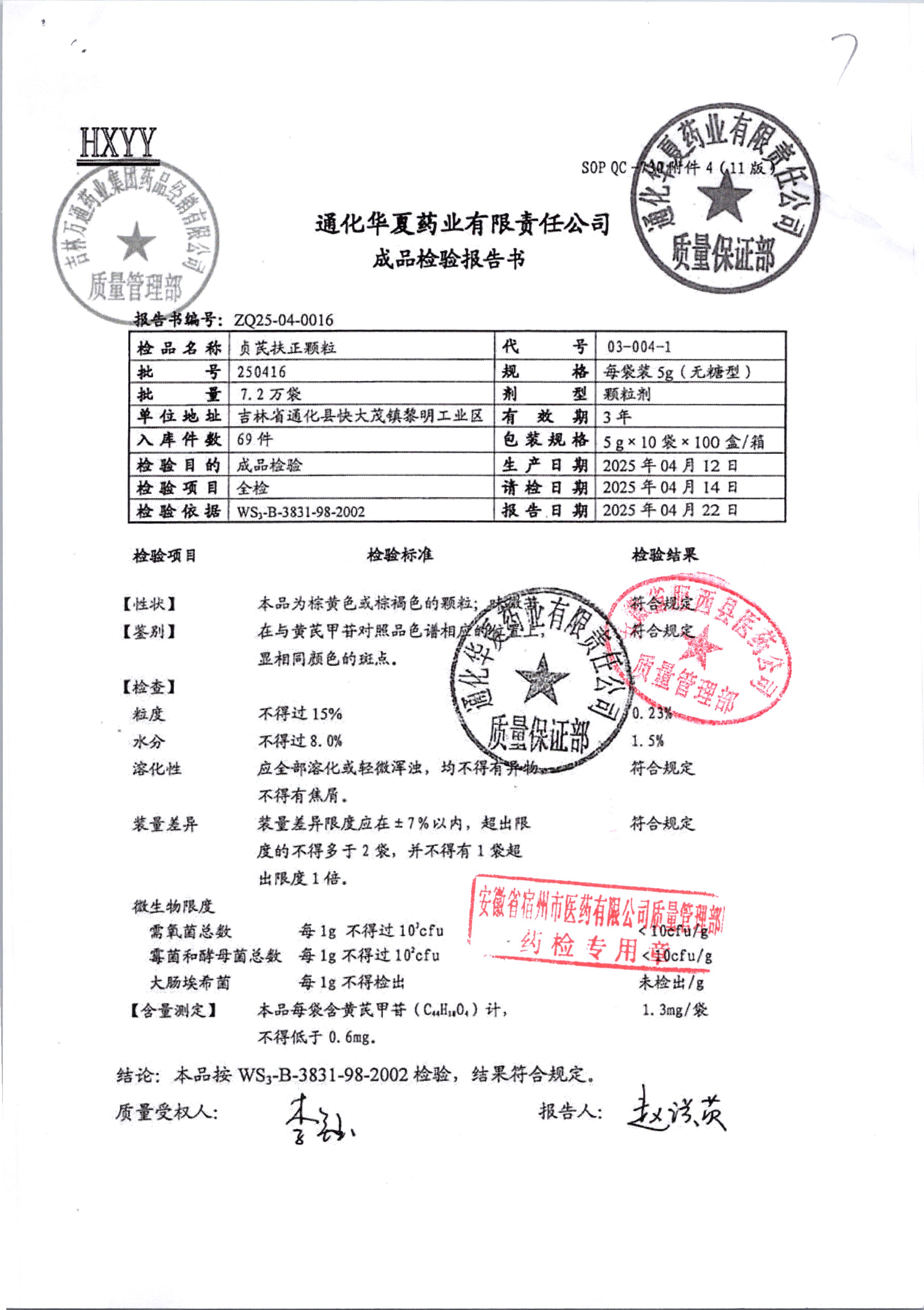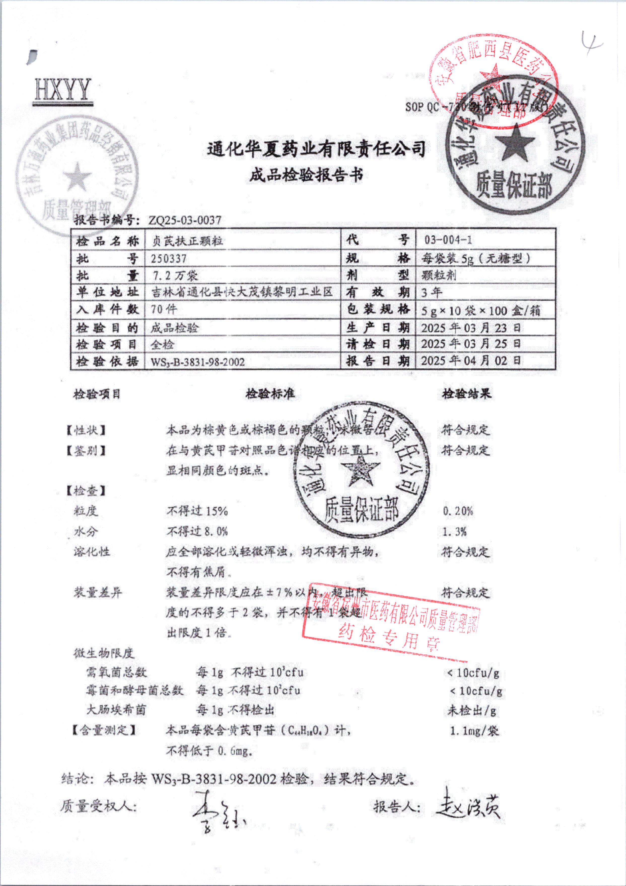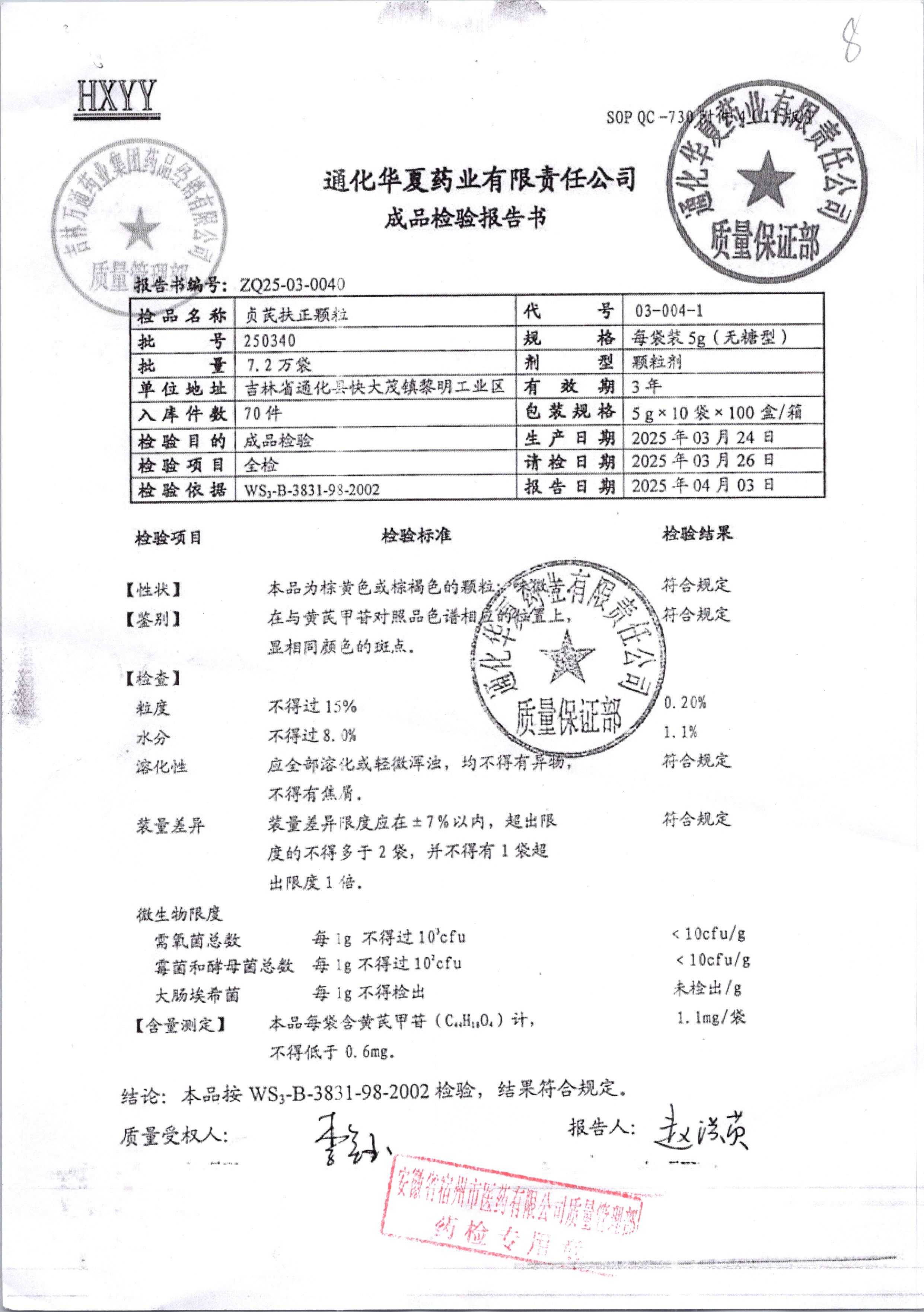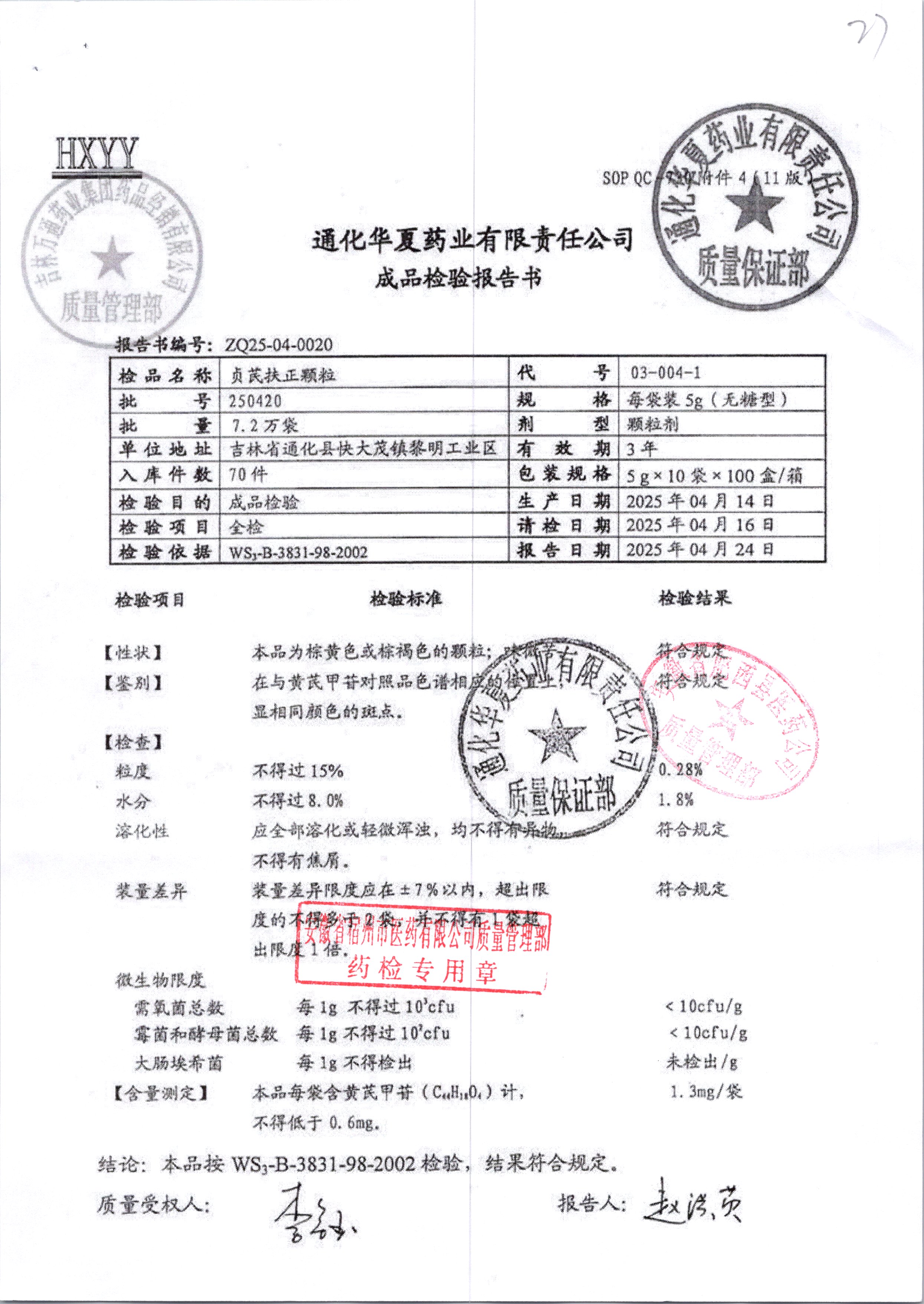 | 貞芪扶正顆粒 | 5g*10袋 | 250416 | 查看詳情 |