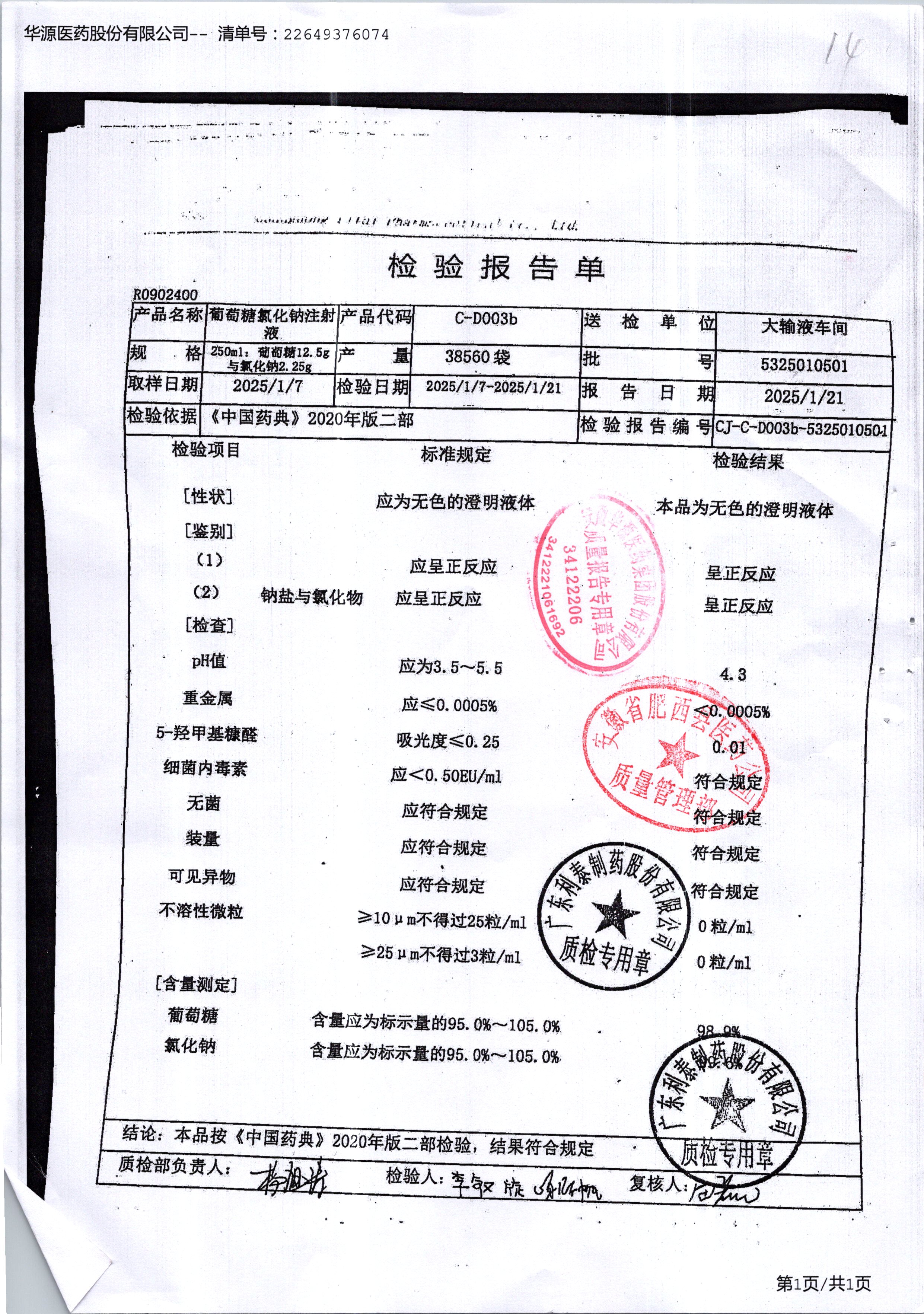 葡萄糖氯化鈉注射液 250ml 5325010501 查看詳情