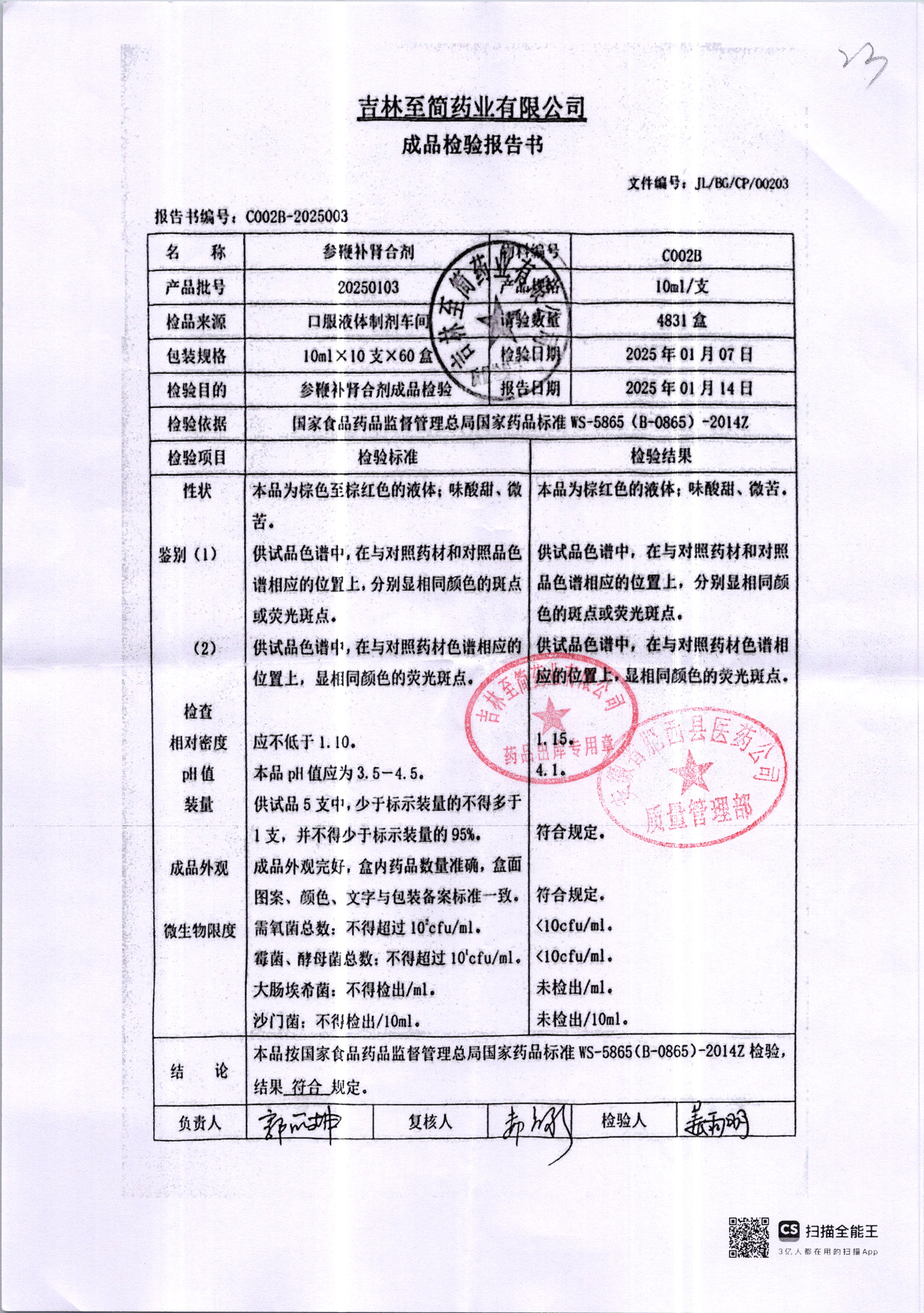 | 參鞭補(bǔ)腎合劑 | 10ml | 20250103 | 查看詳情 |