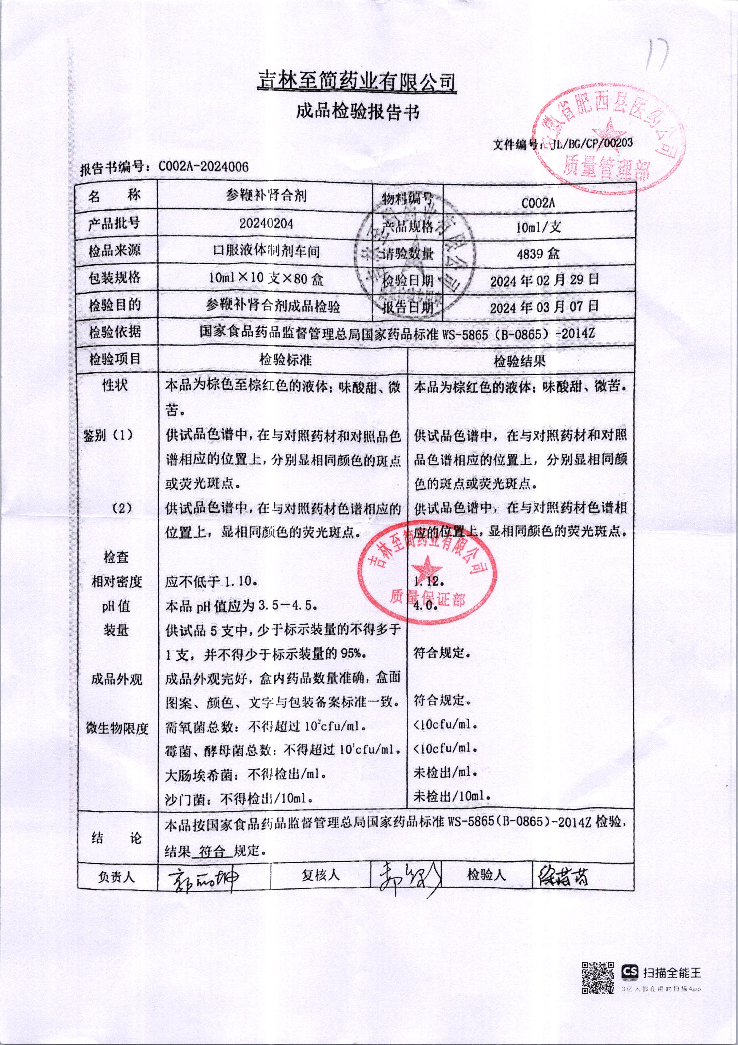 | 參鞭補(bǔ)腎合劑 | 10ml | 20250203 | 查看詳情 |