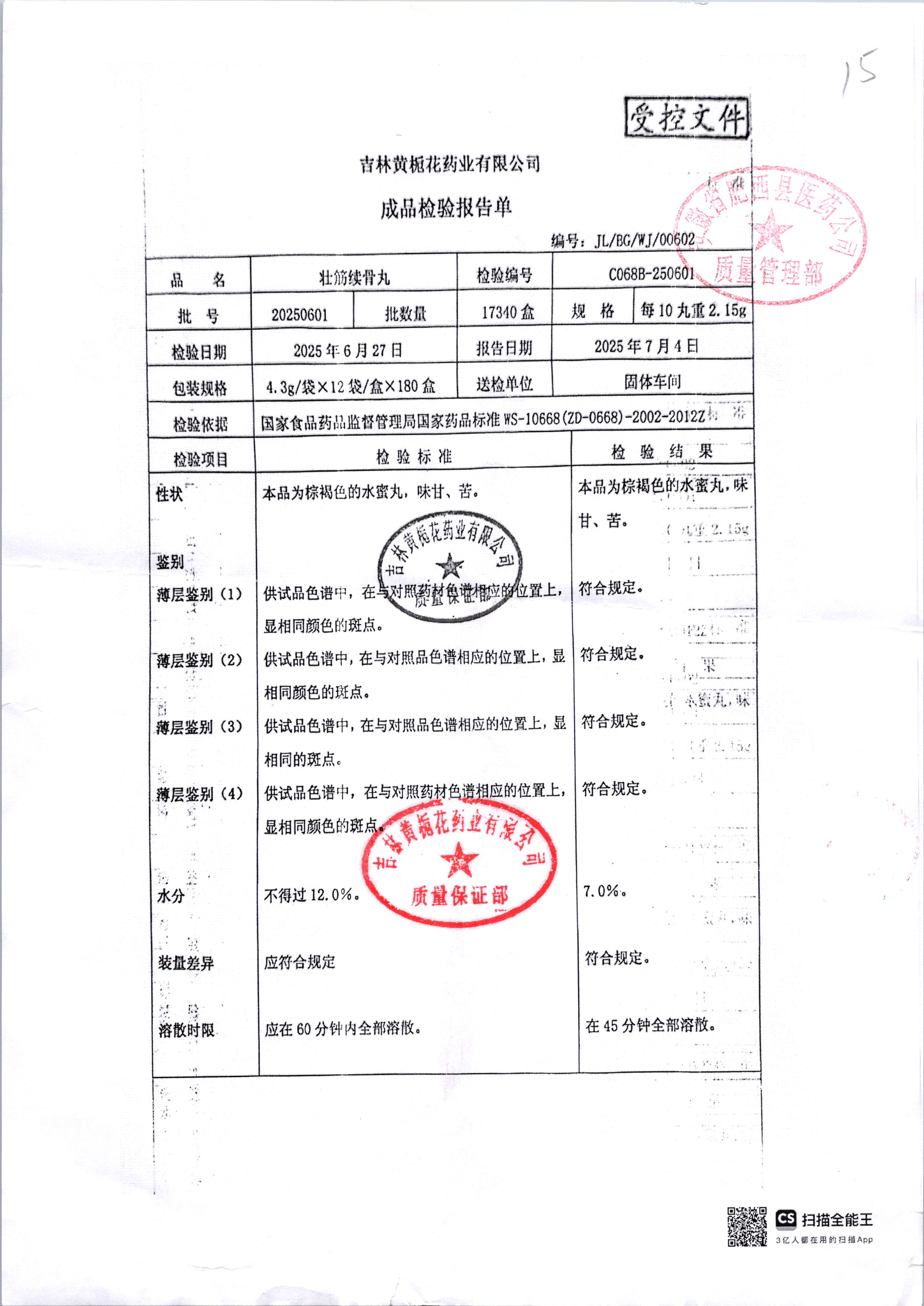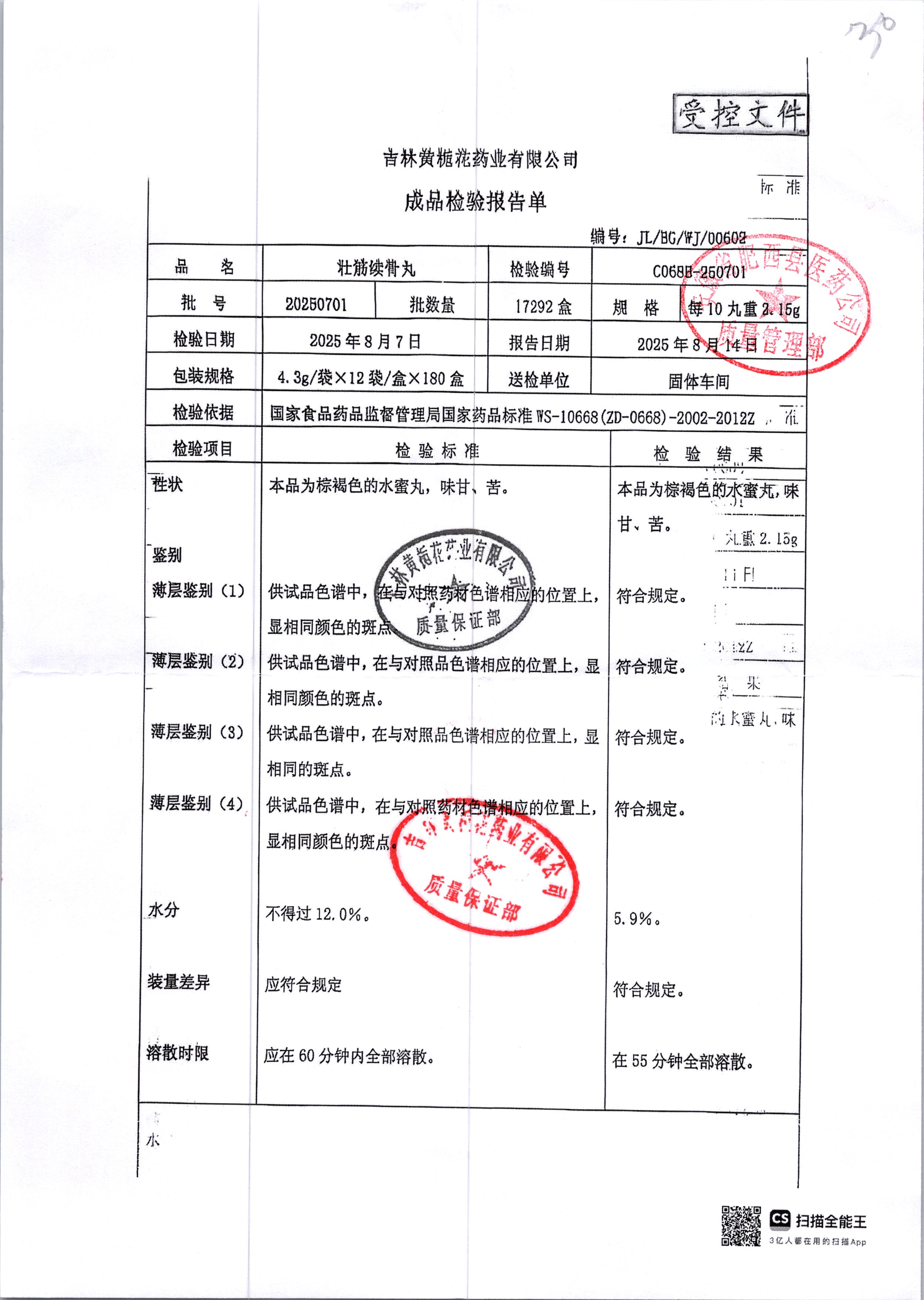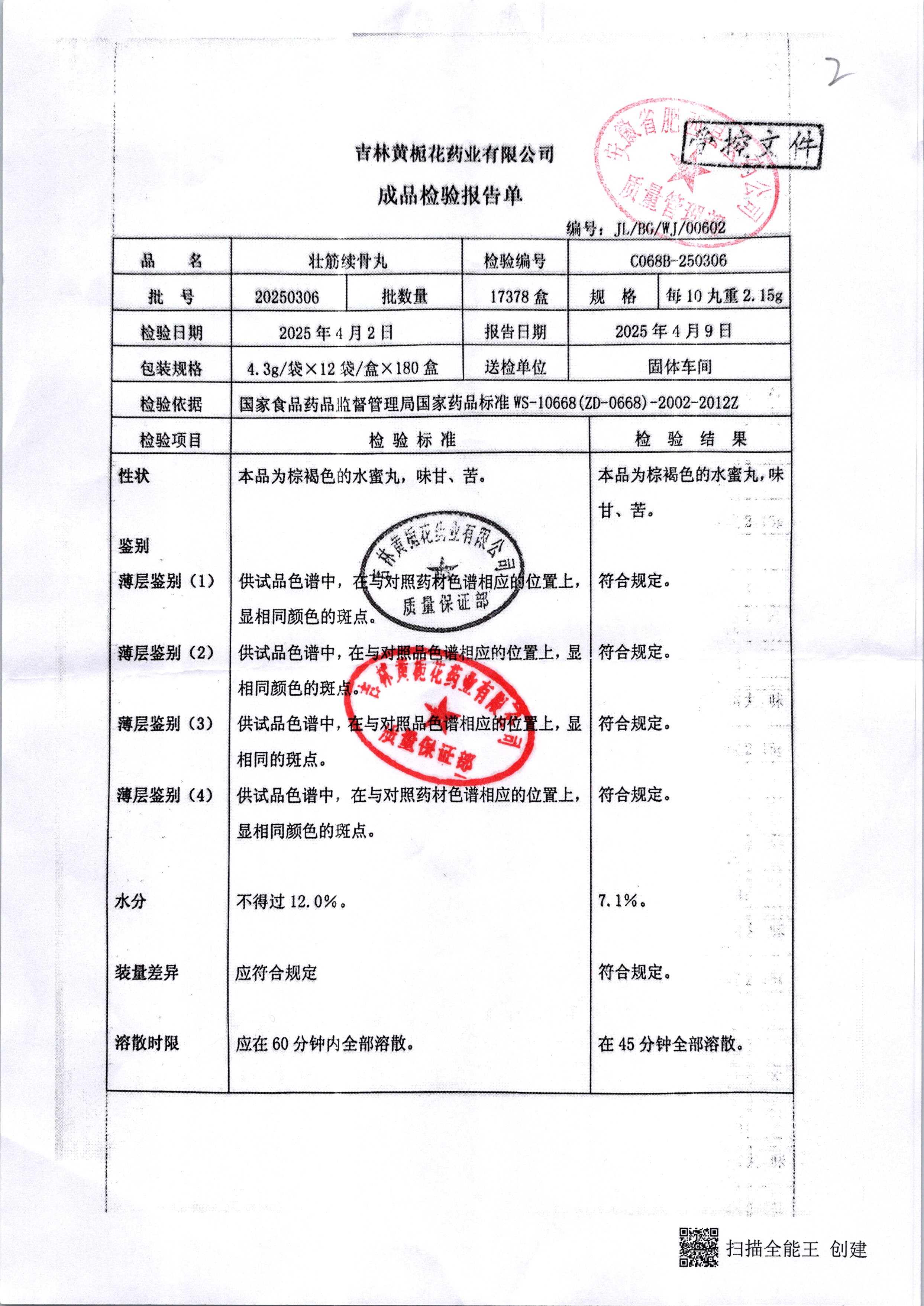 | 壯筋續(xù)骨丸 | 10丸2.15g | 20250701/2 | 查看詳情 |