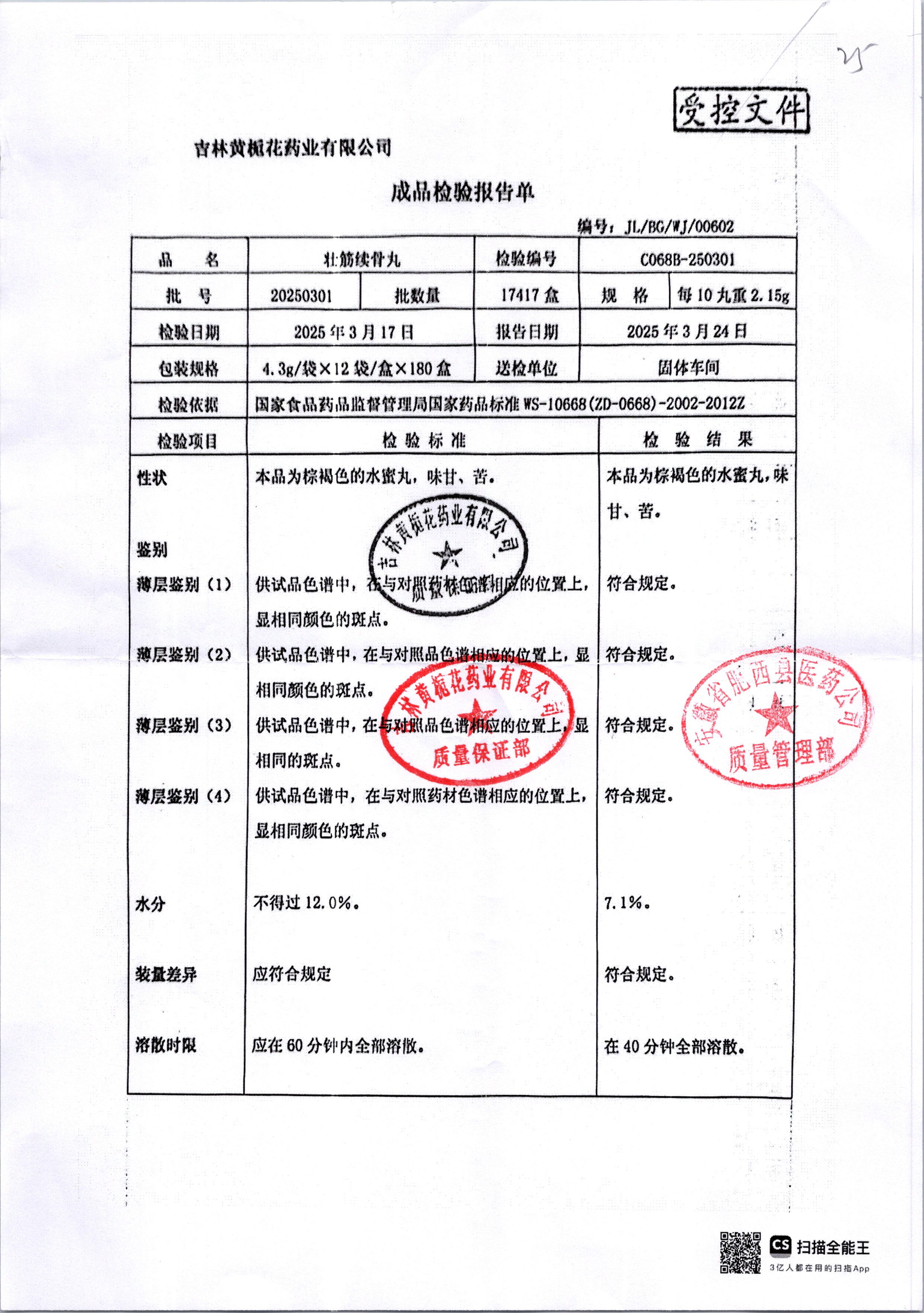 | 壯筋續(xù)骨丸 | 10丸2.15g | 20250301/2 | 查看詳情 |